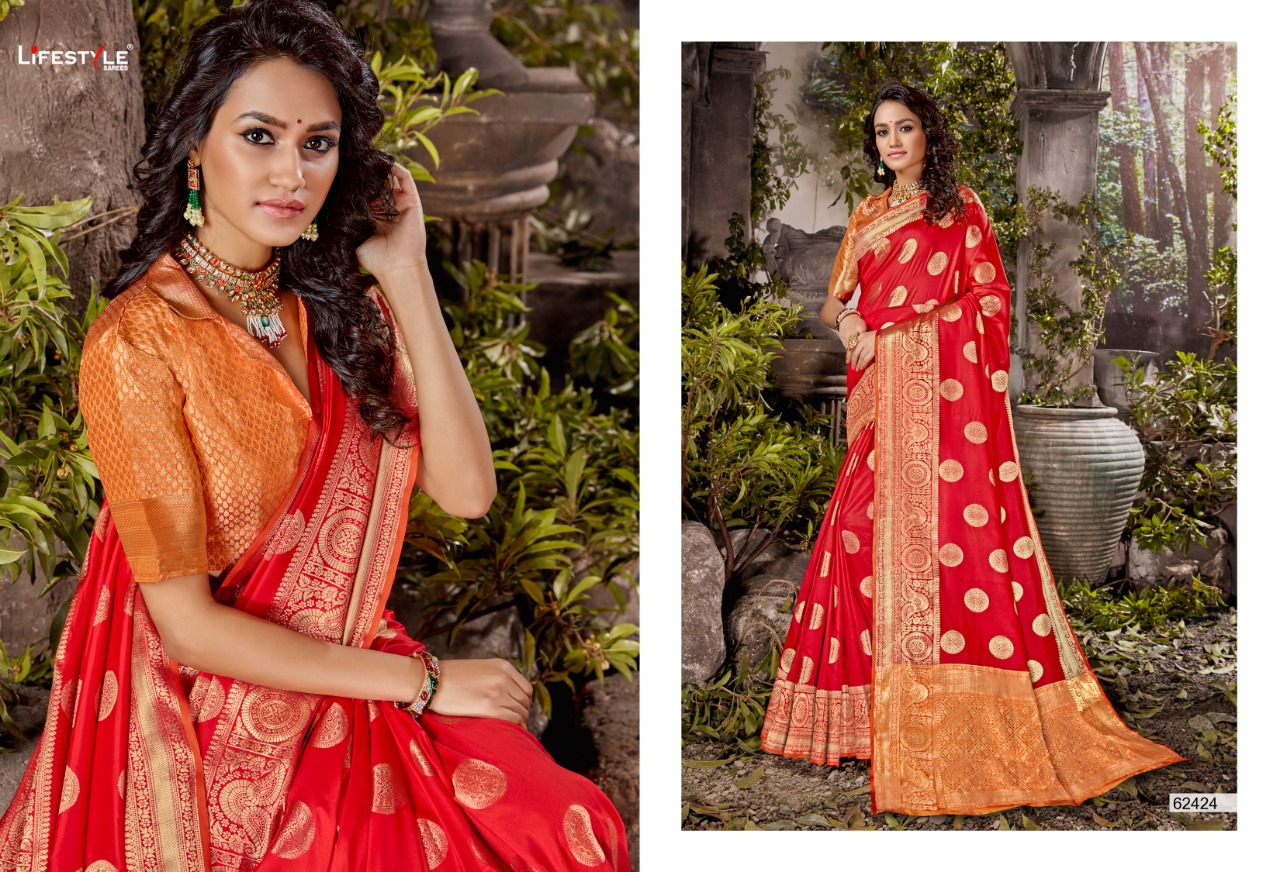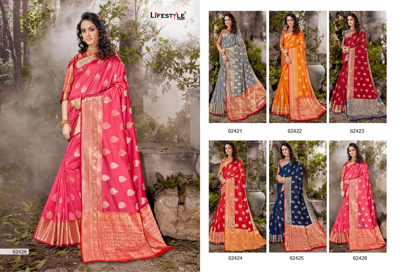 Brand - Lifestyle. Catlog name - ASHIRWAD . Weaving silk Fabric. Rate -1042 per pcs . Set To Set. GST 5 Percent Extra. Delivery- 2-3 days |