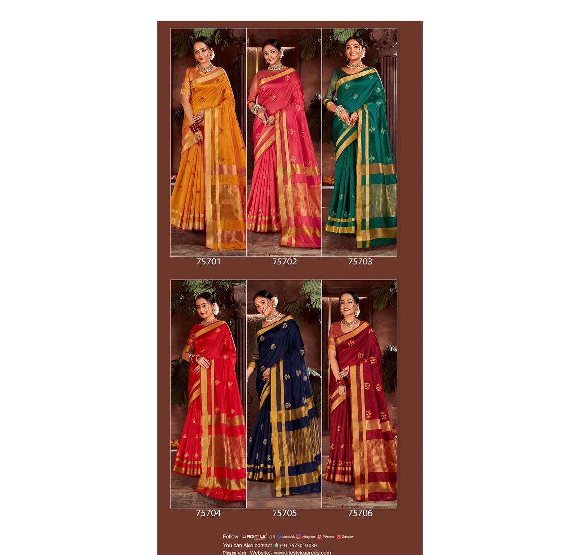 Lifestyle Saree Presents Latest Collection Launched on 08-12-2021. Presenting Beautiful collection of 6 PCS with Unstitched .