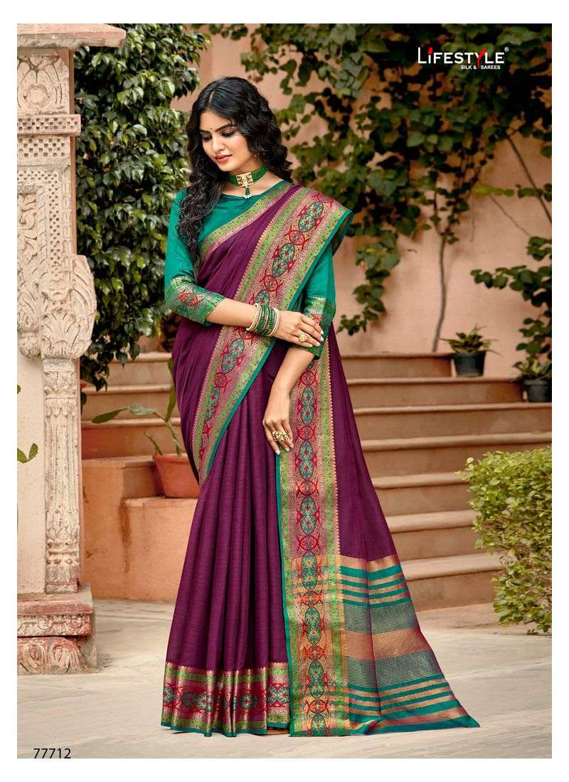 Lifestyle Saree Presents Latest Collection Launched on 28-10-2021. Presenting Beautiful collection of 12 PCS with Unstitched .