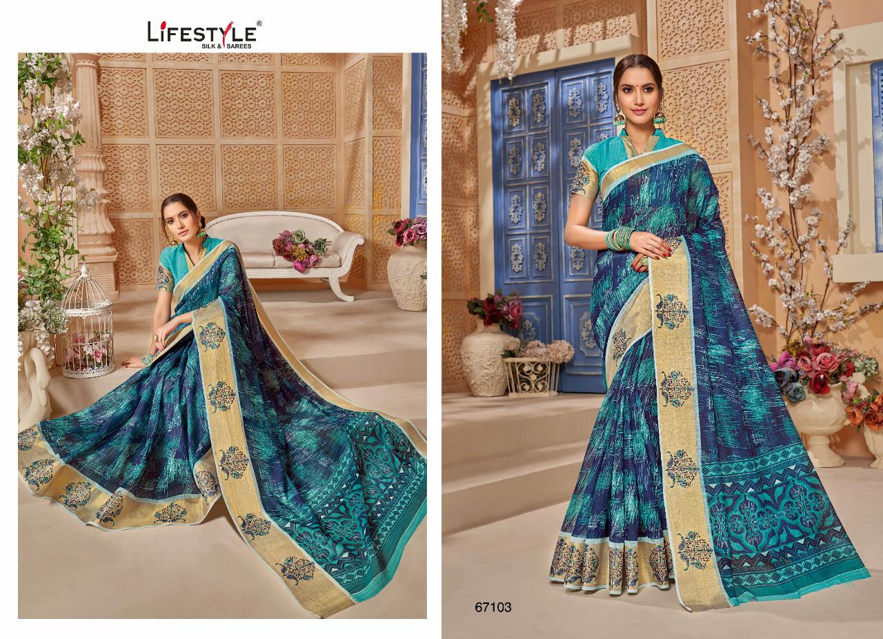 Lifestyle Radhika Cotton Print Jari Patta Work Saree Concept