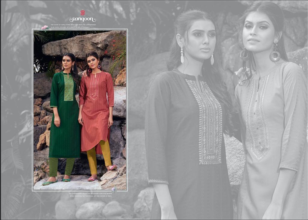 Light Line Vol 5 By Rangoon Fancy Silk Work Casual Wear Kurti Wholesaler
