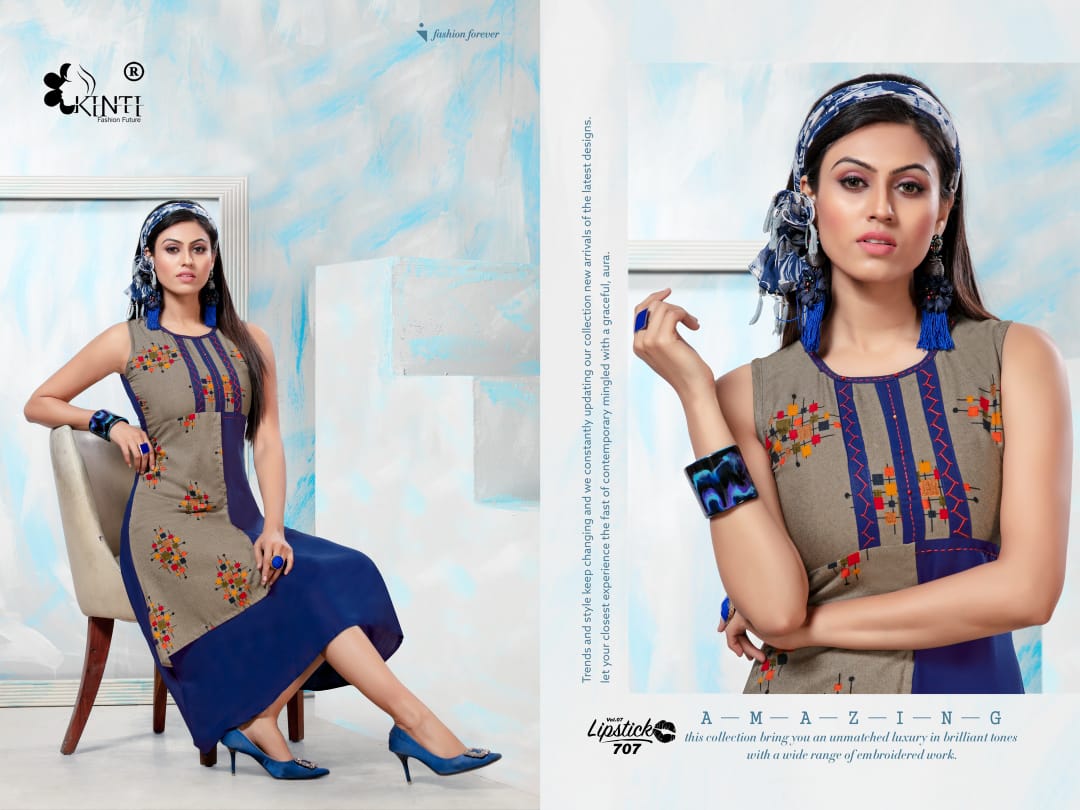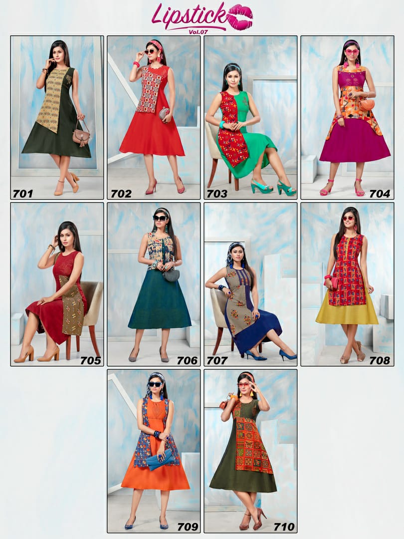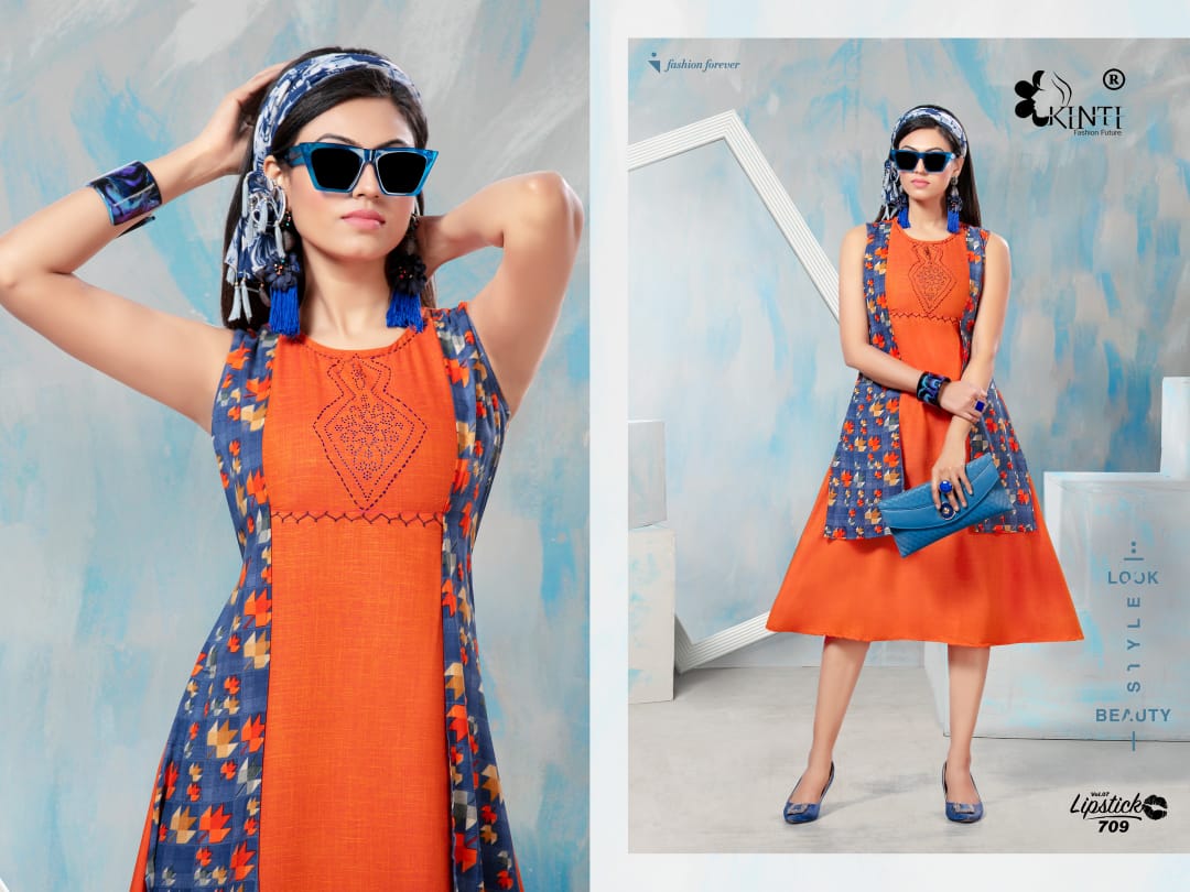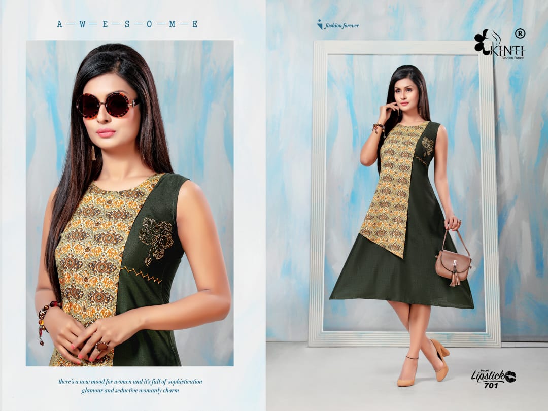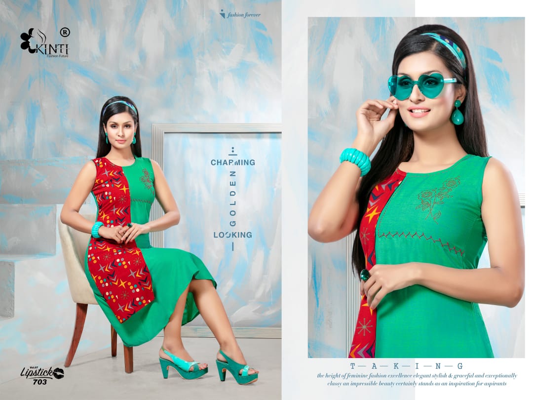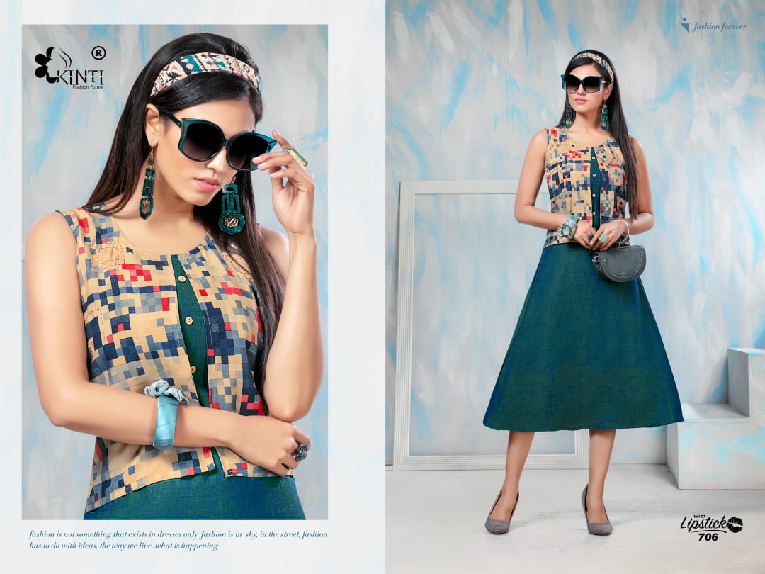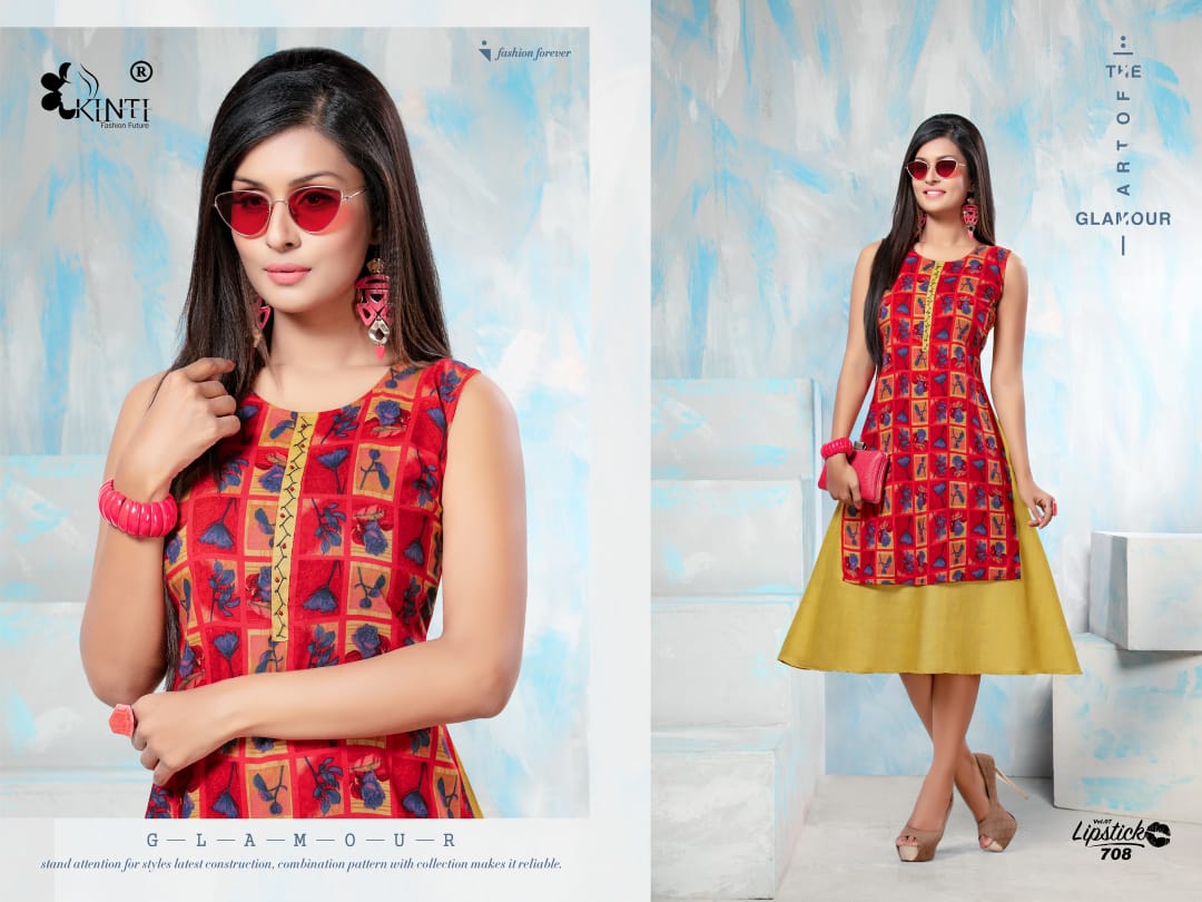 LIPSTICK 7 By KINTI ® Fabric. : Reyon Print and Two tone Rayon Style. : Mix N Match Stiching Patterns Double Layer Lenght. : 45(approx) Sleeves : Short Sleeves Inside Sizes : S M L XL 2XL 3XL Designs : 10 Rate :- 360 + GST |