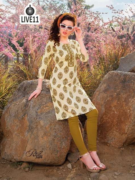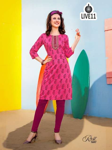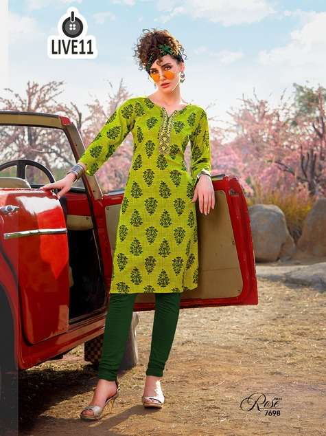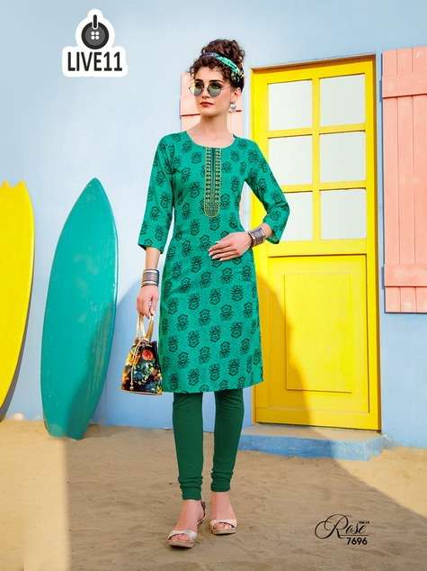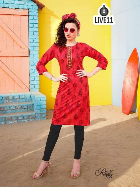 live11 rose vol-13 rayon print kurta with work