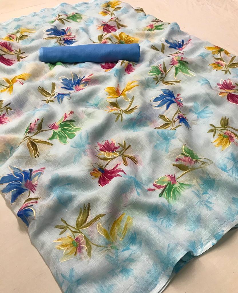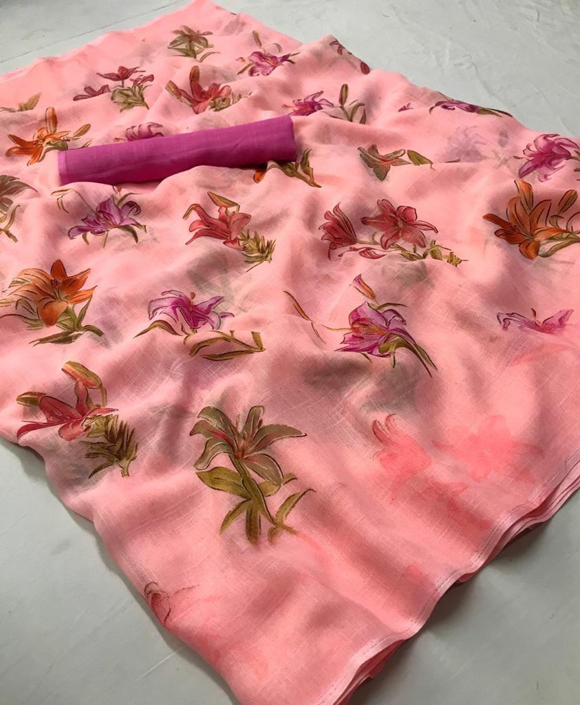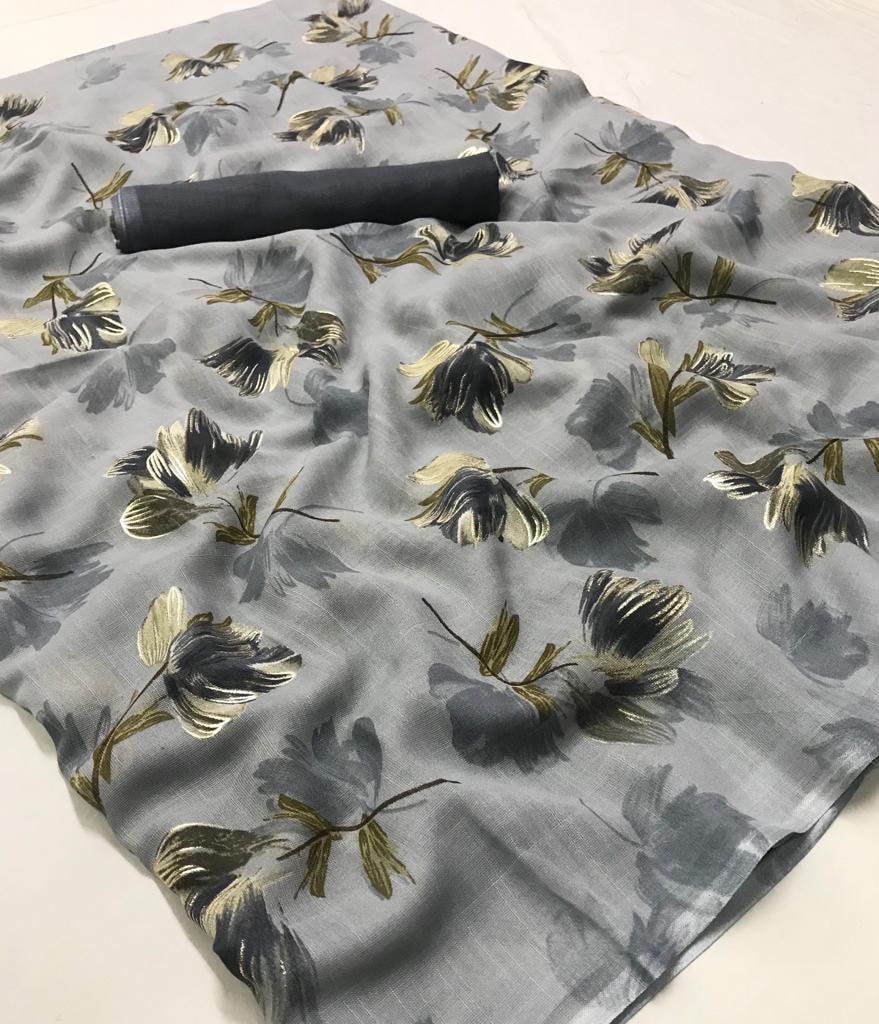 Lt Fashion Rishika Pure Linen Gold Print Saree Collection Wholesale Price