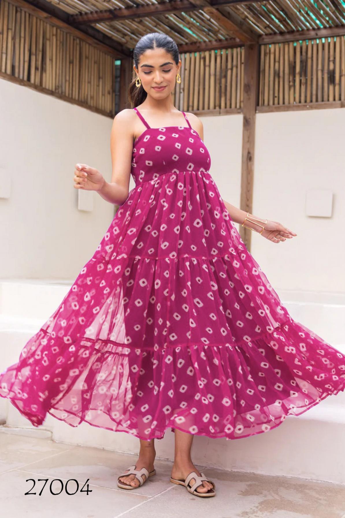 Lucaya Vol 27(Fully flared Ethnic and regular wear ) Presents this stunning Beautiful digital printed Ethnic and regular wear Fully flared gown set collection (set of 6 beautiful design 27001 to 27006) Catalog name :- Lucaya vol 27 Product details Fabric: faux gorget Work:- Heavy Digital Printed Inner details:-full inner length: - up to 51 inch” Front nack- 7"inch (27002. & 27006) :- covered Sleeves fabric attached with sleeveless design Flair:- Stitched type :- Full stitched Style : Anarkali, Fully flared Size: - XS(34),S(36),M(38),L(40),XL(42),XXL(44), 3XL(46), 4XL(48), 5XL(50), 6xl(52) (all size available) Occasion:- Festival Wear, Function, Ceremonial, Wedding Wear, Party Wear Note: - 10-12% Colour variations may occur due to different screen resolutions RATE: - 999/- For all size GST :- 5% |