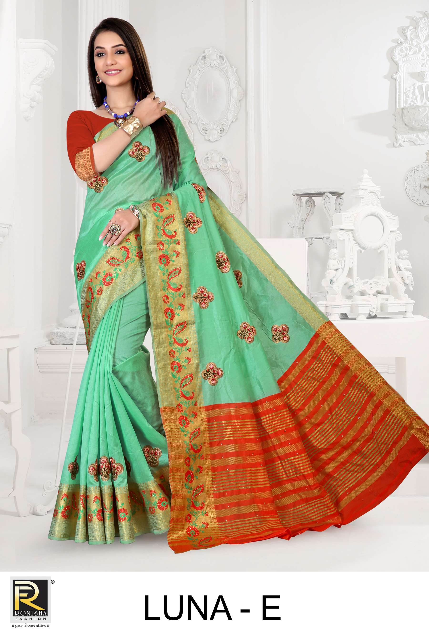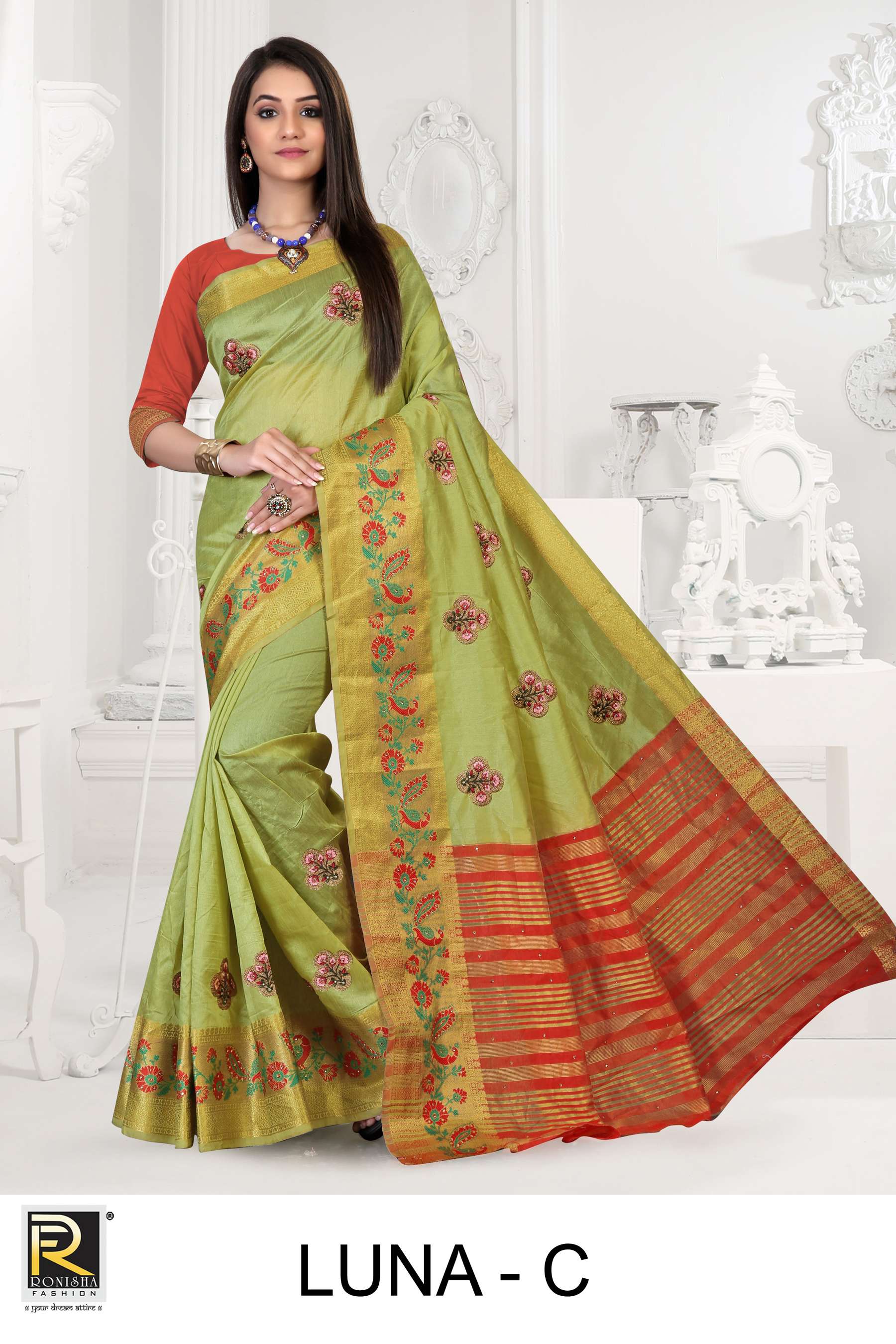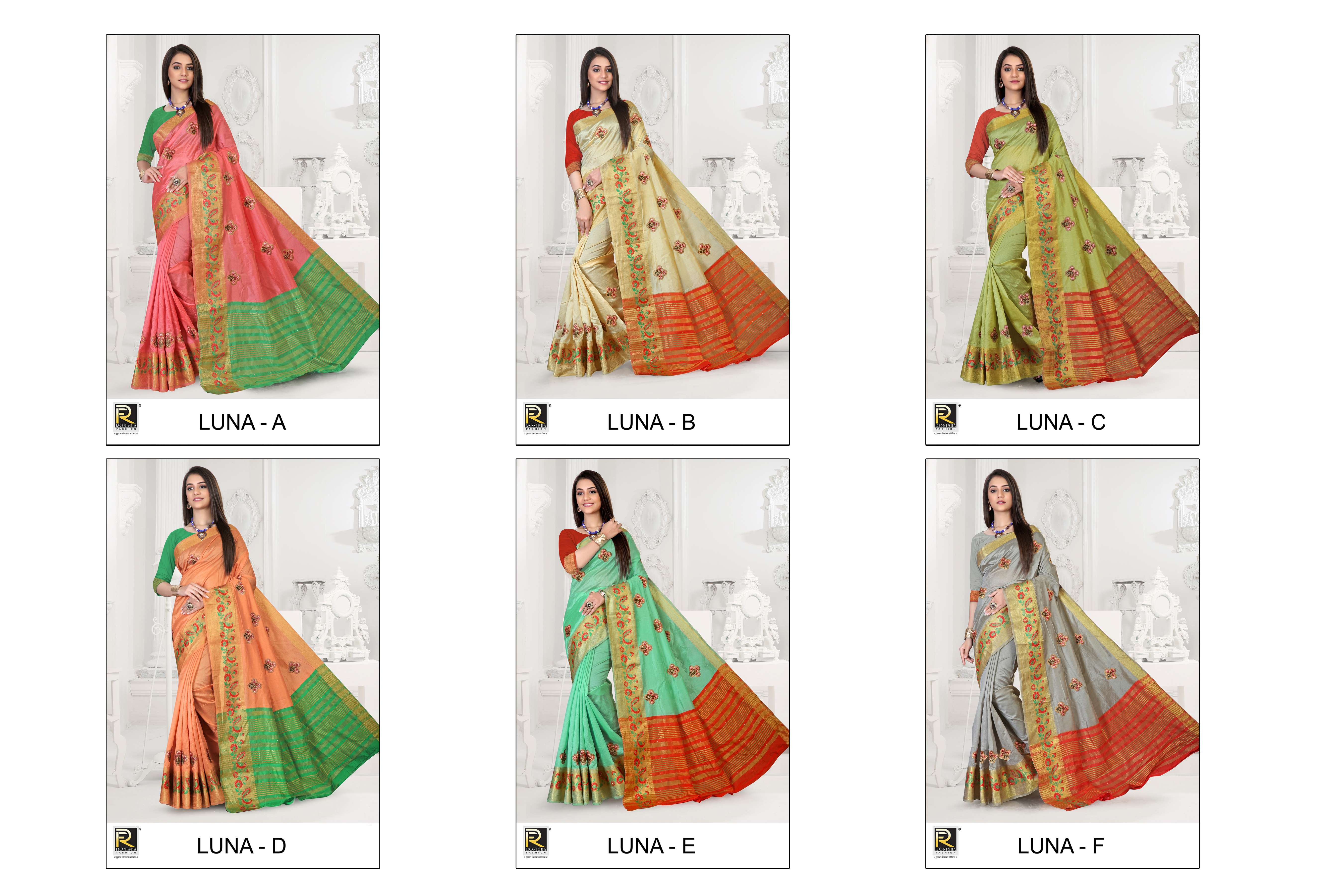 Luna by ranjna saree embroidery warked cotton silk casual wear saree collction