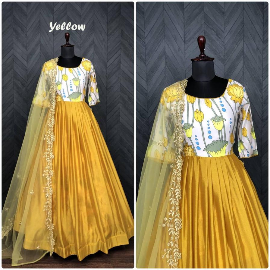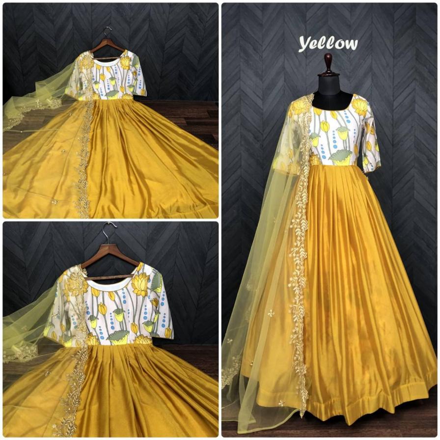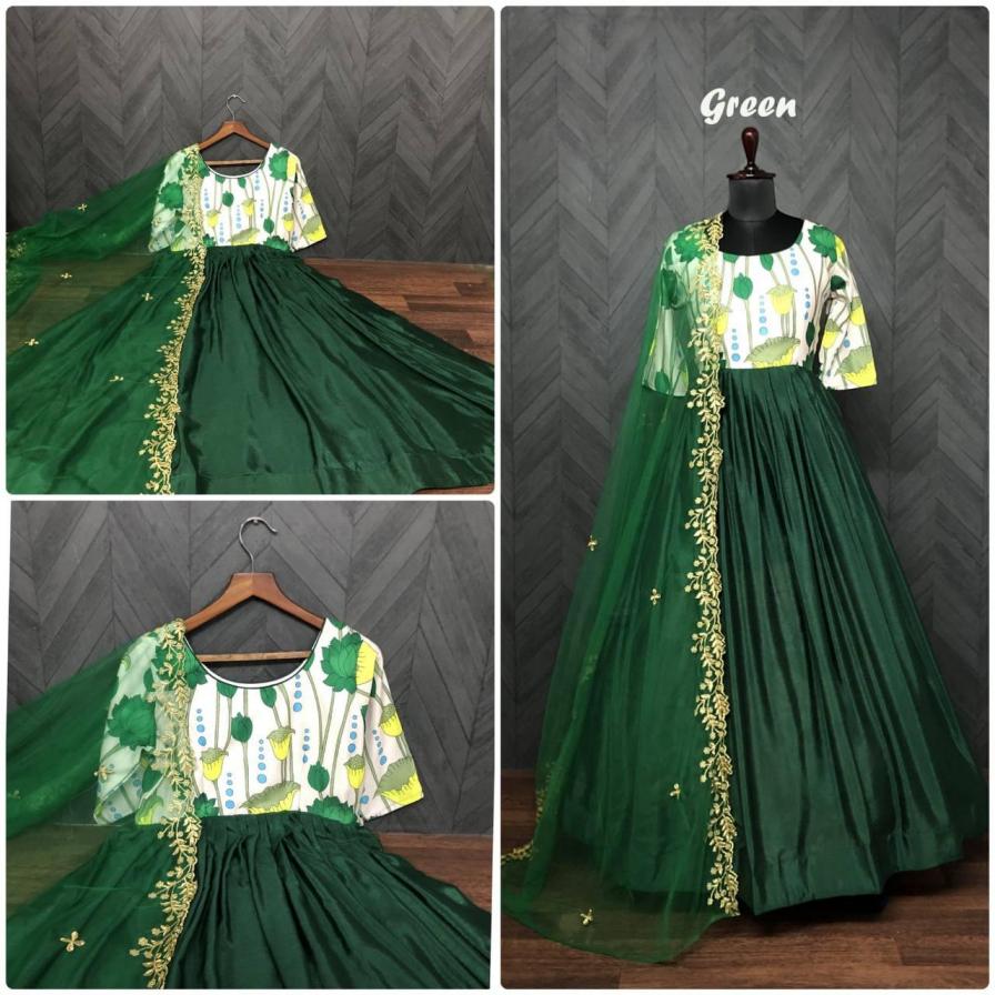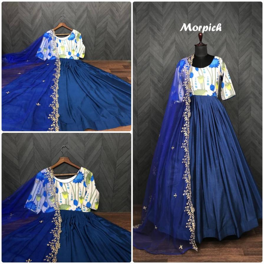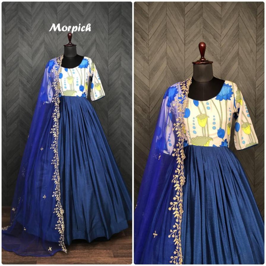lw 9060 satin muslin traditional readymade anarkali gown with dupatta