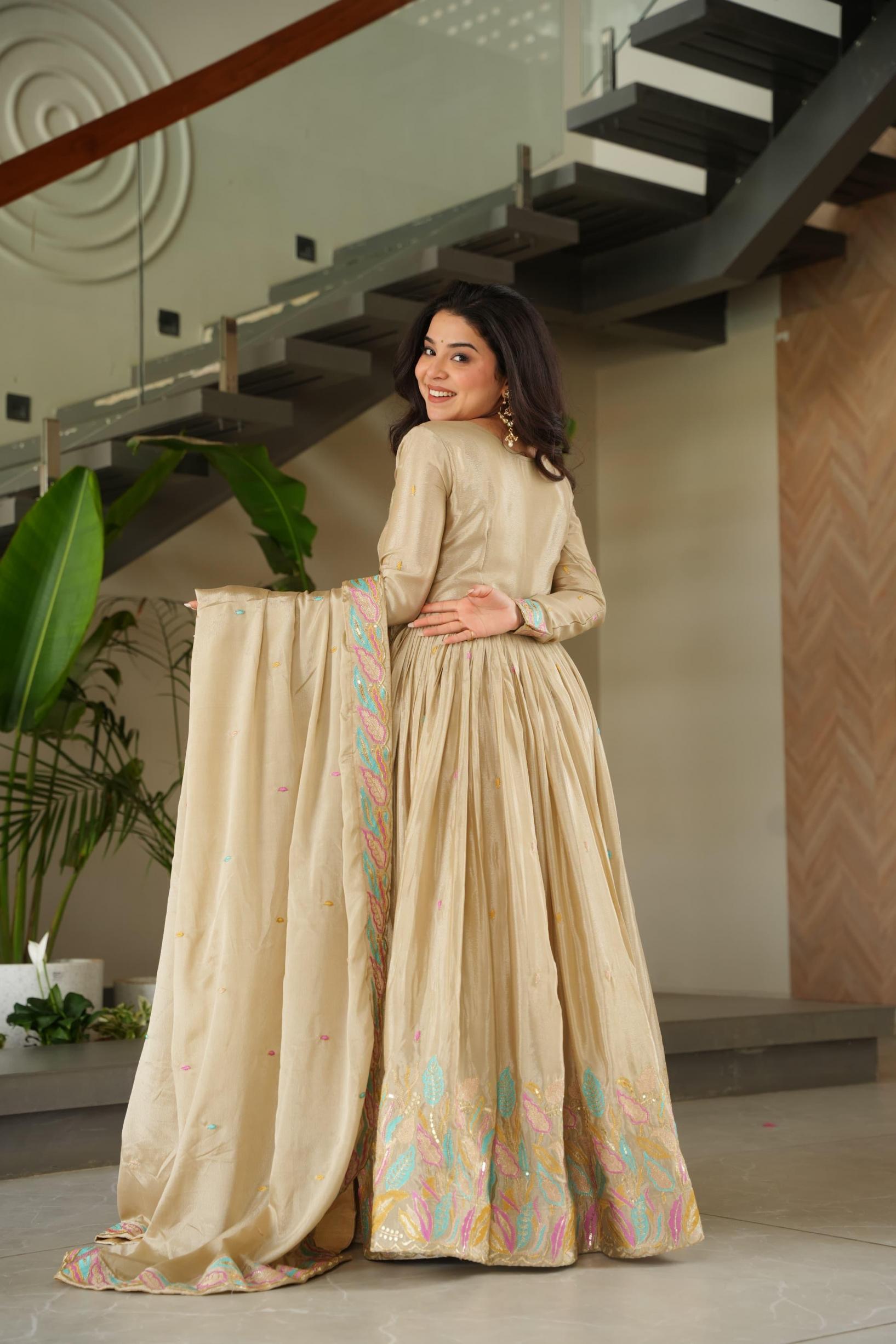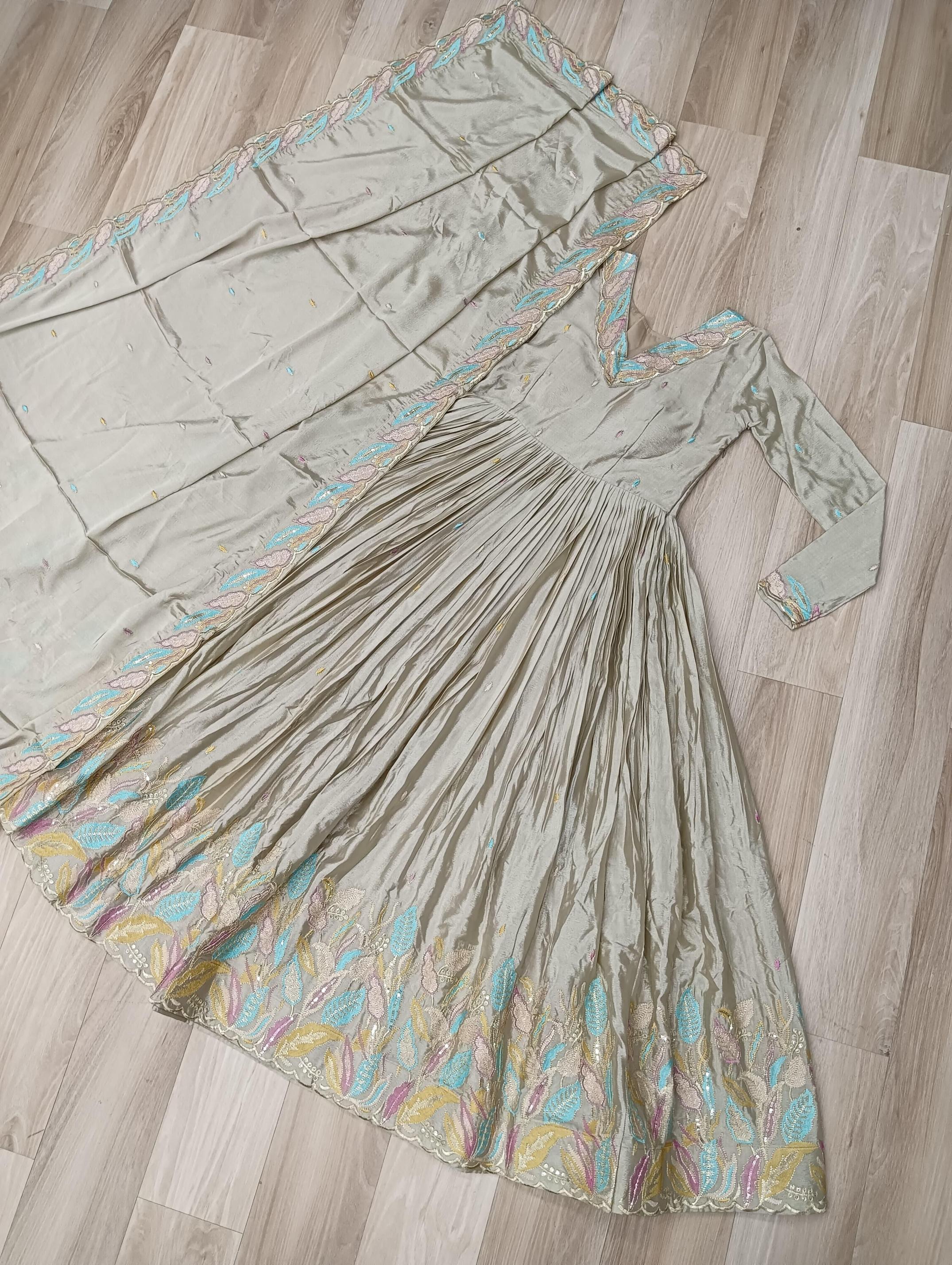 lw 9229 readymade chinon sequins work anarkali gowns with dupatta