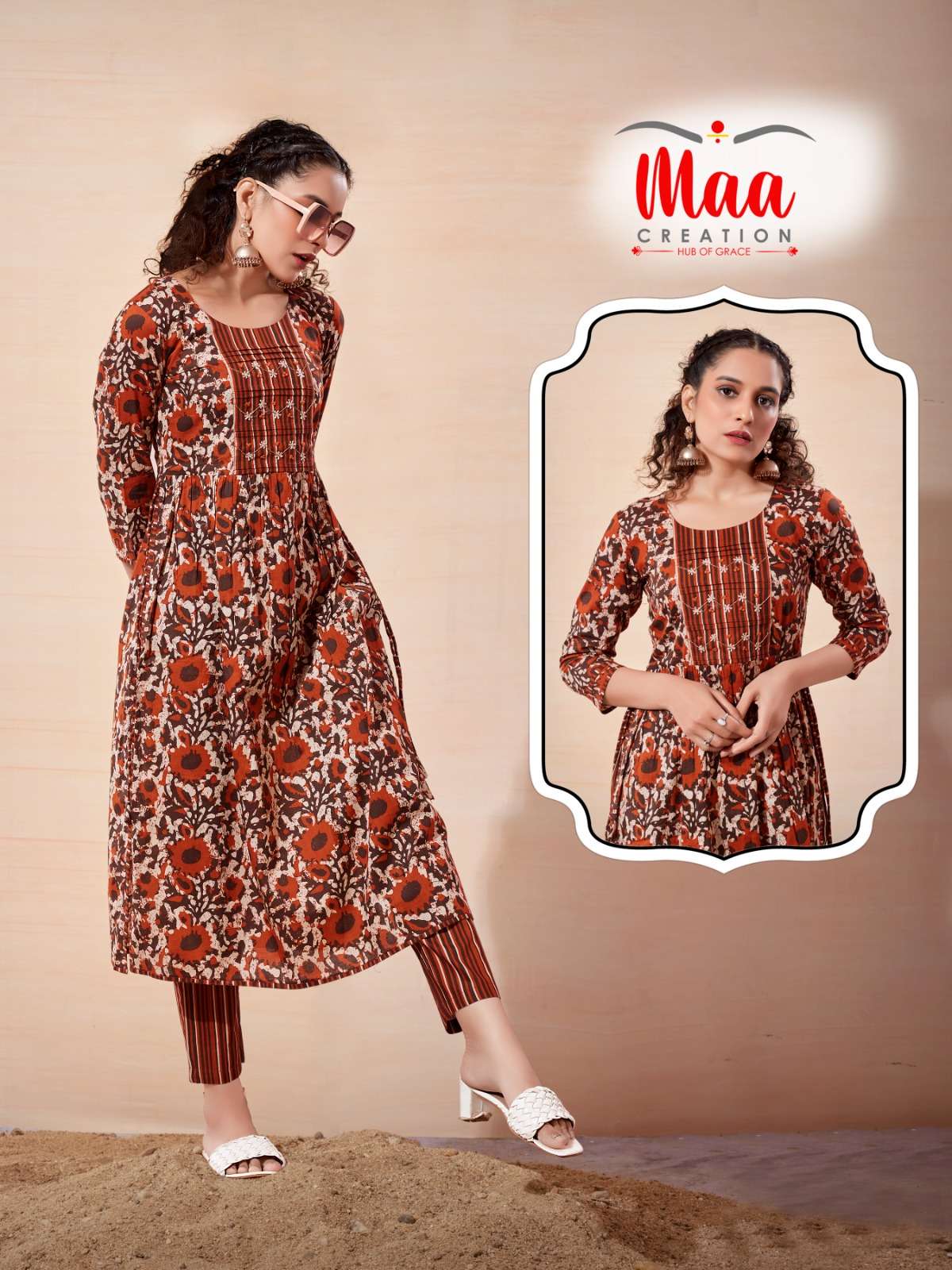 maa creation sunflower cotton printed readymade kurti with pant combo set
