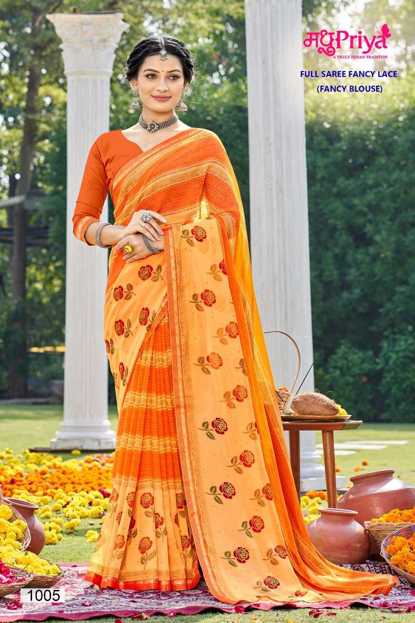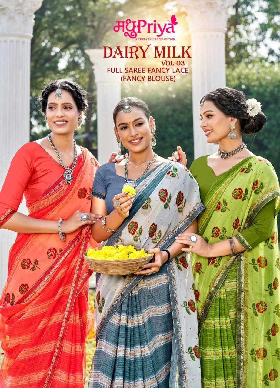 madhupriya dairy milk vol 3 amazing catalog regular wear chiffon sarees