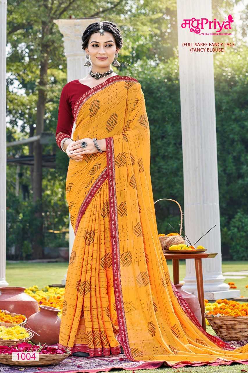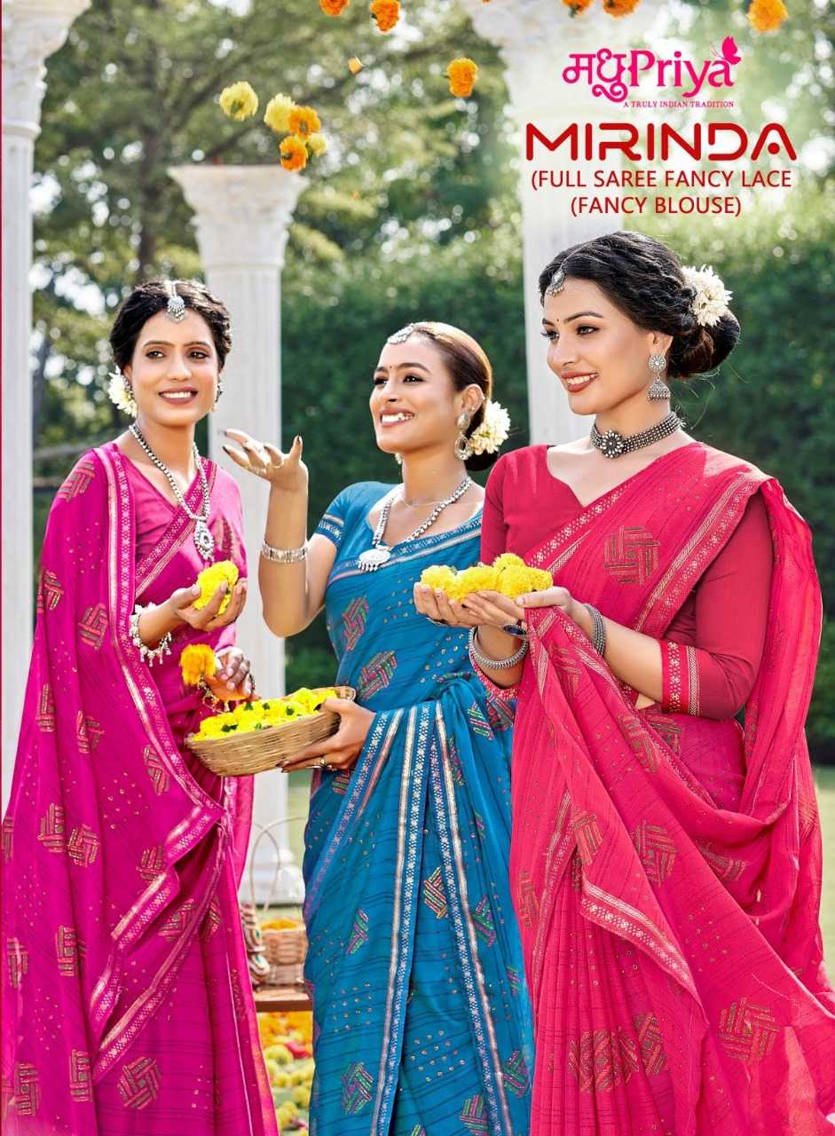 madhupriya mirinda beautiful regular wear sarees with fancy blouse
