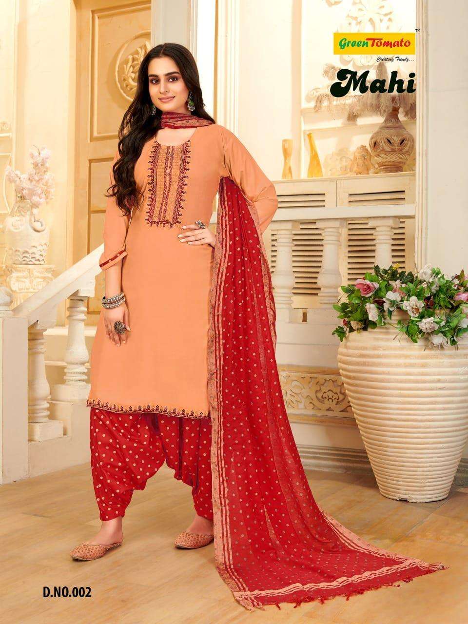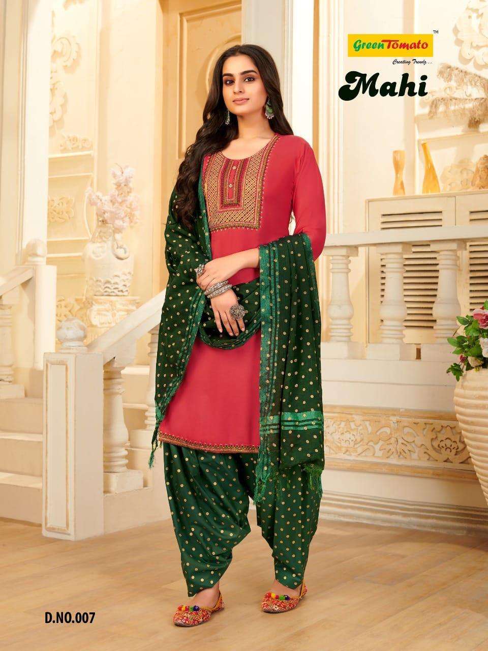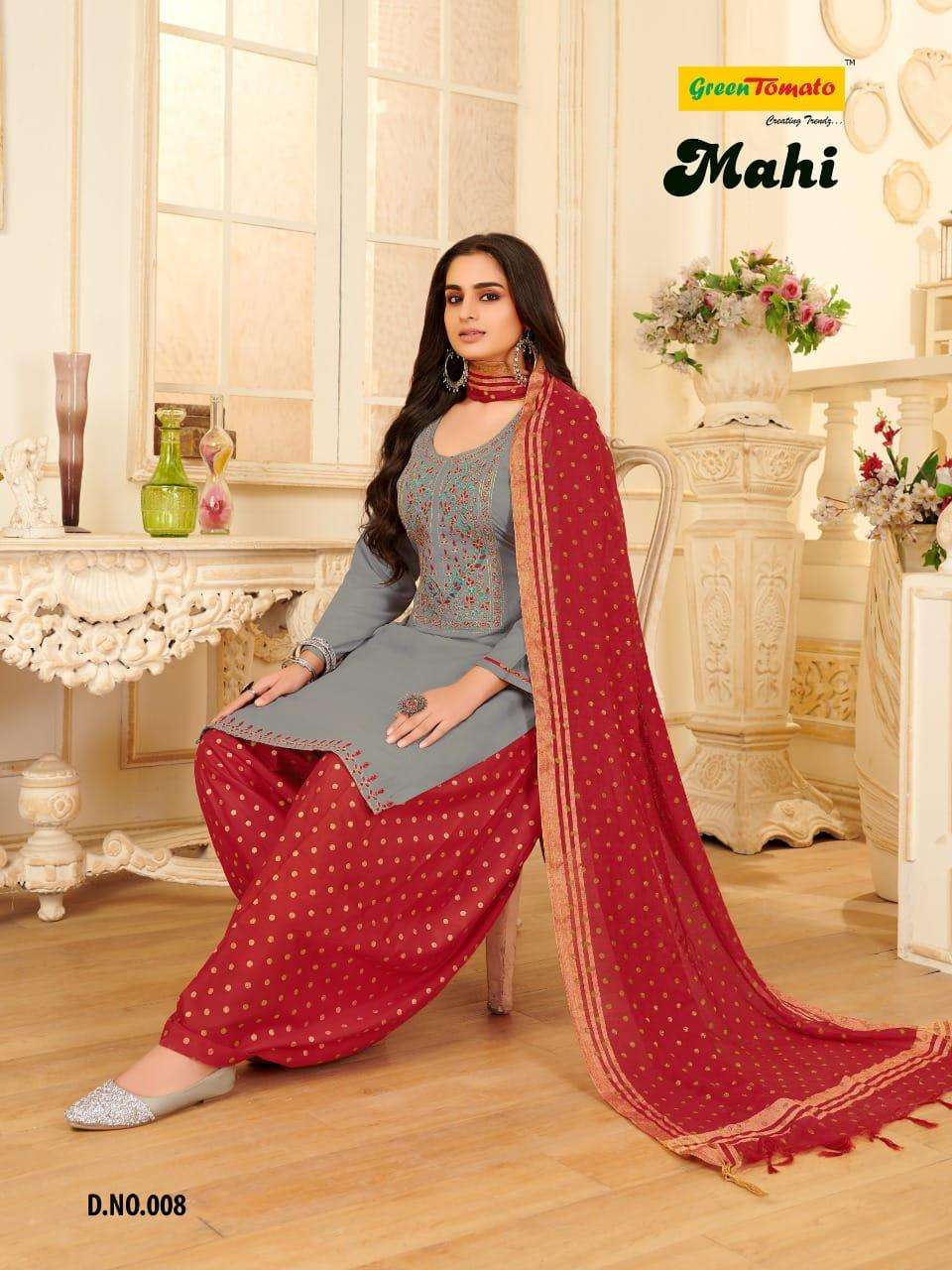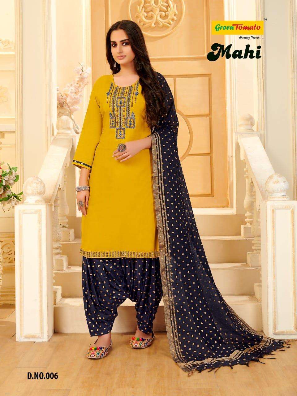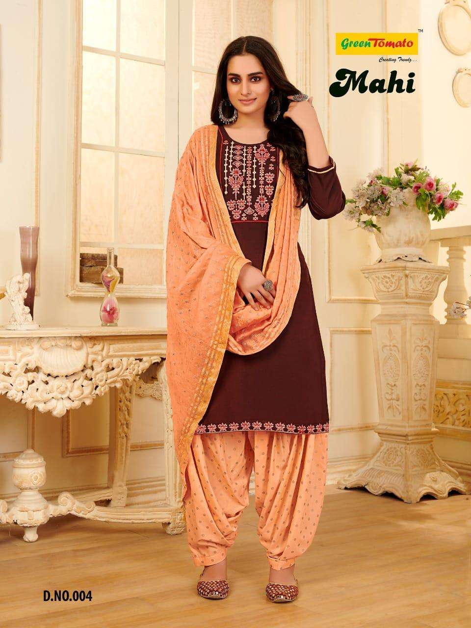 MAHI BY GREEN TOMATO HEAVY RAYON 3PCS READYMADE PATIYALA SUIT CATALOG