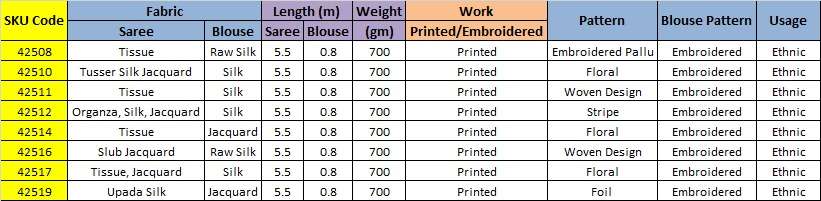 | Note | Stitching available on customer Requirment For Sarees , Salwar Kameez, Lehengha.(i.e M,L,XL,XXL). |