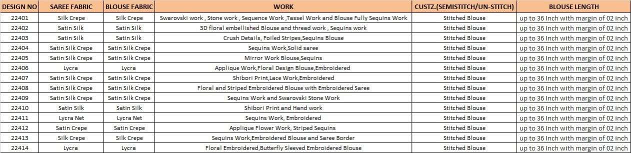 | Note | Stitching available on customer Requirment For Sarees , Salwar Kameez, Lehengha.(i.e M,L,XL,XXL). |