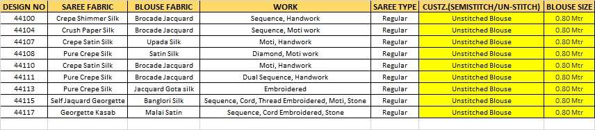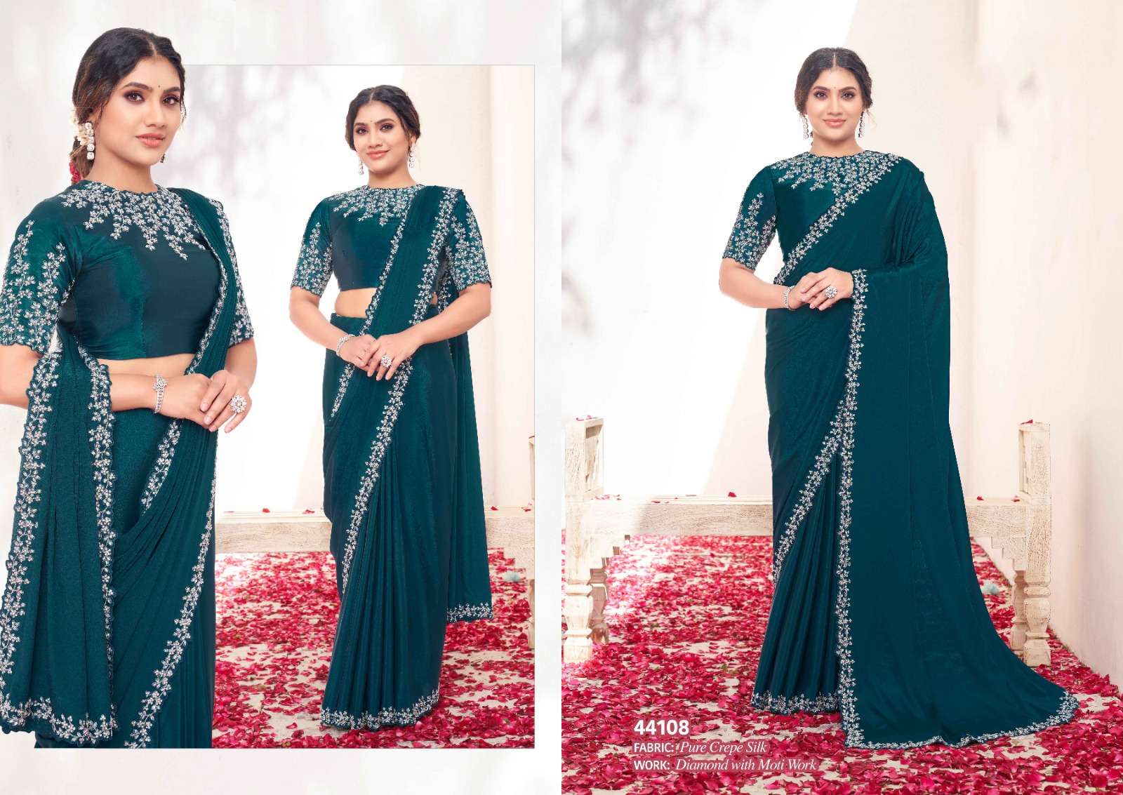 ♻ OUR NEW PARTY WEAR DESIGNER SAREE COLLECTION ♻️ BRAND NAME: MAHOTSAV CATALOG: "NORITA 44100 SERIES - VARYA PRICE:- FABRIC: - ATTACHED BLOUSE TYPE: UNSTITCHED