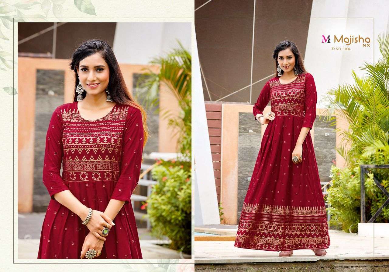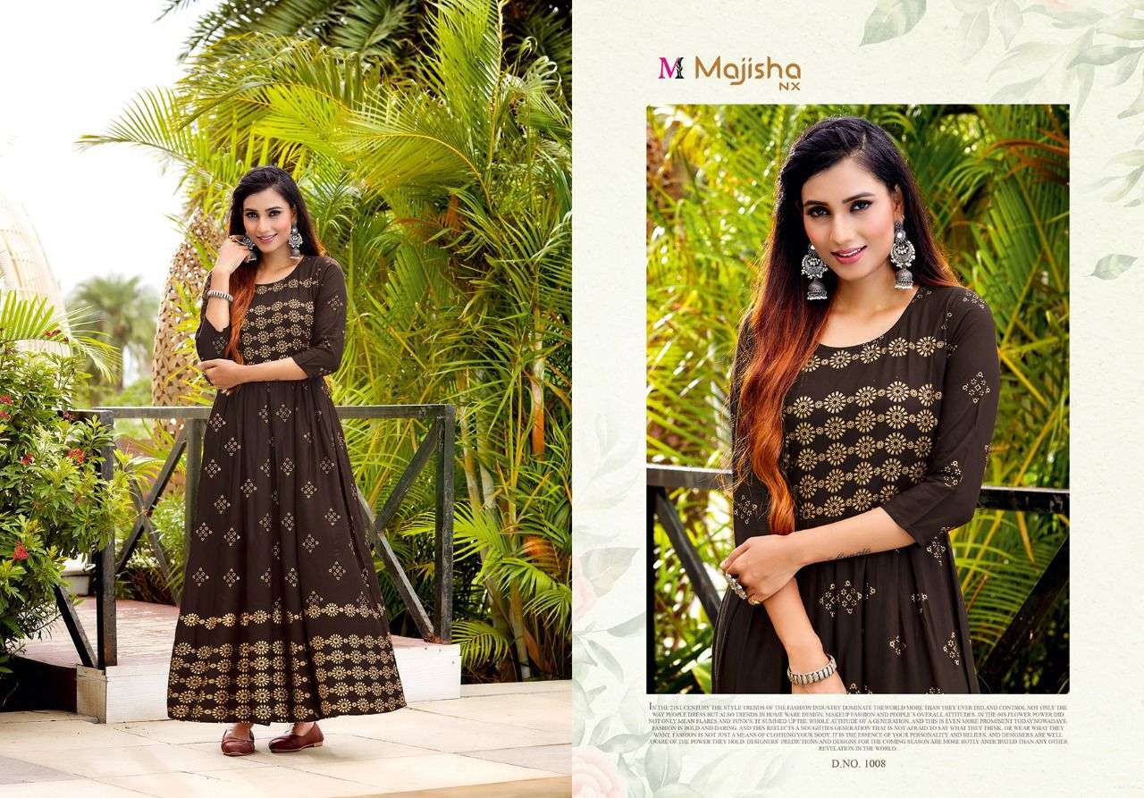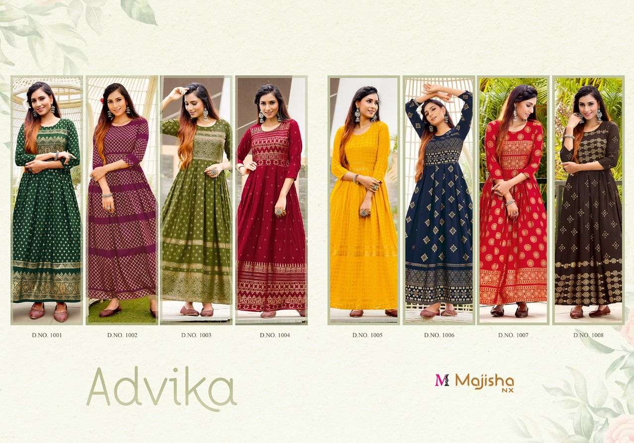 majisha nx advika vol 1 rayon foil printed long gown supplier