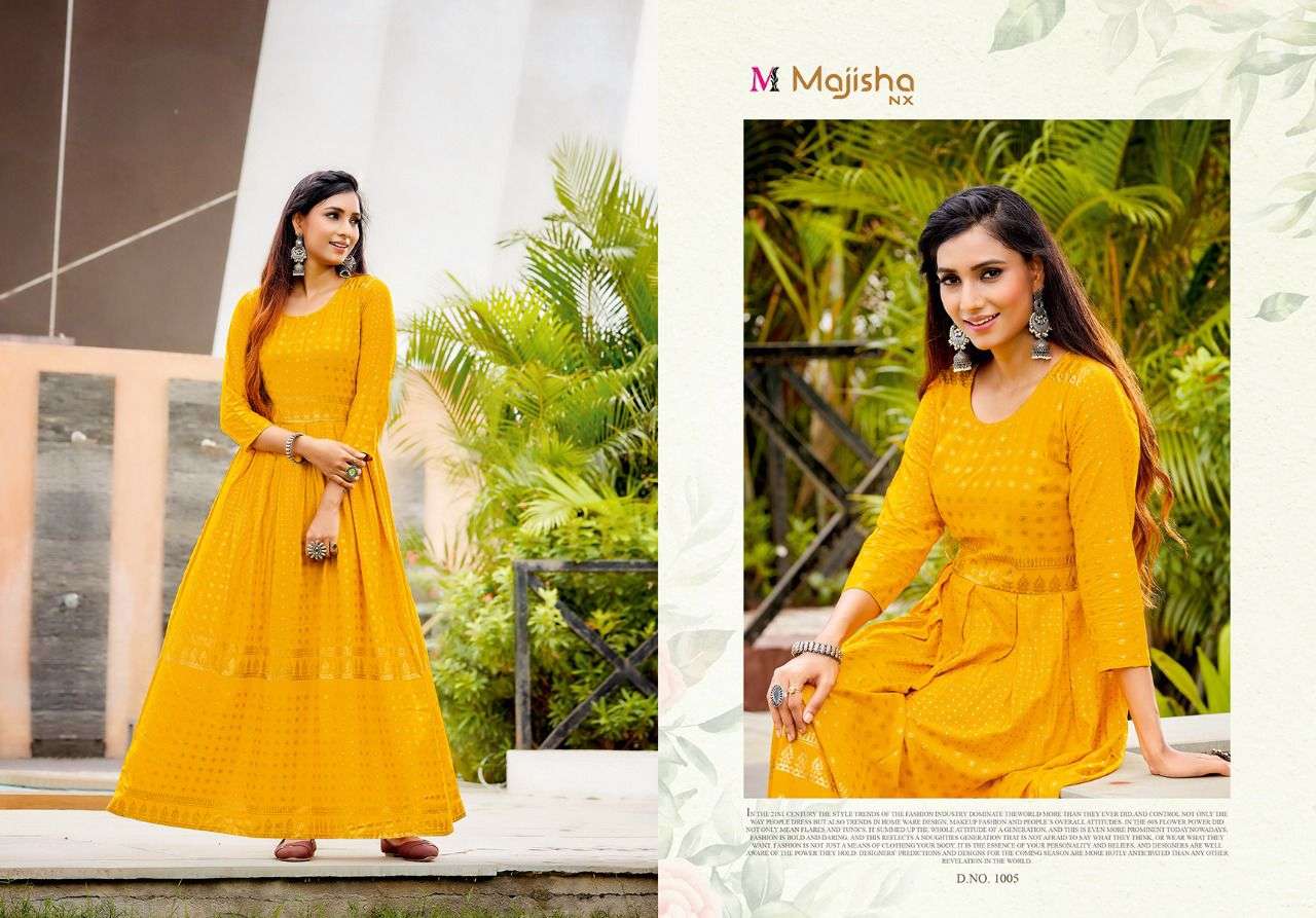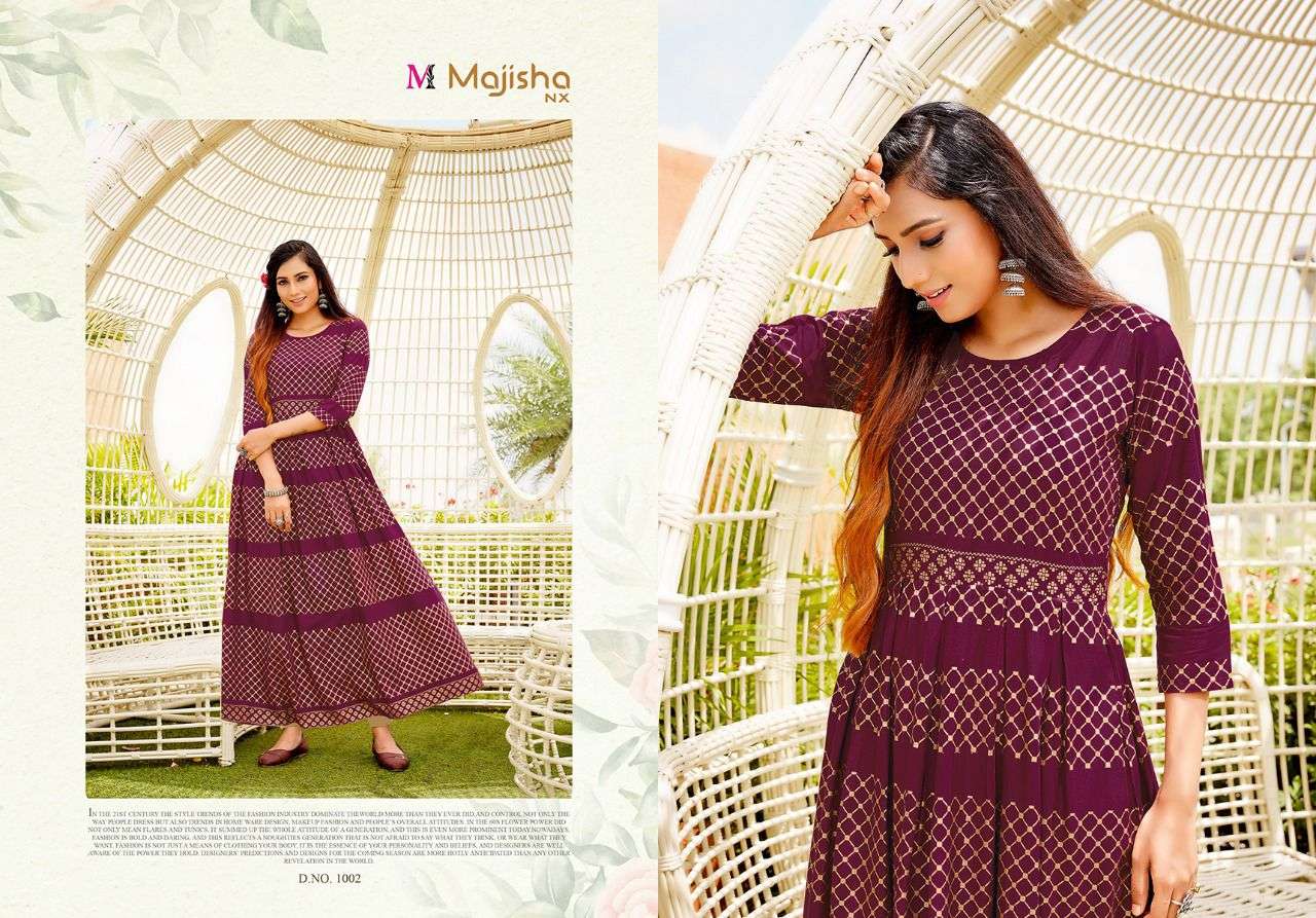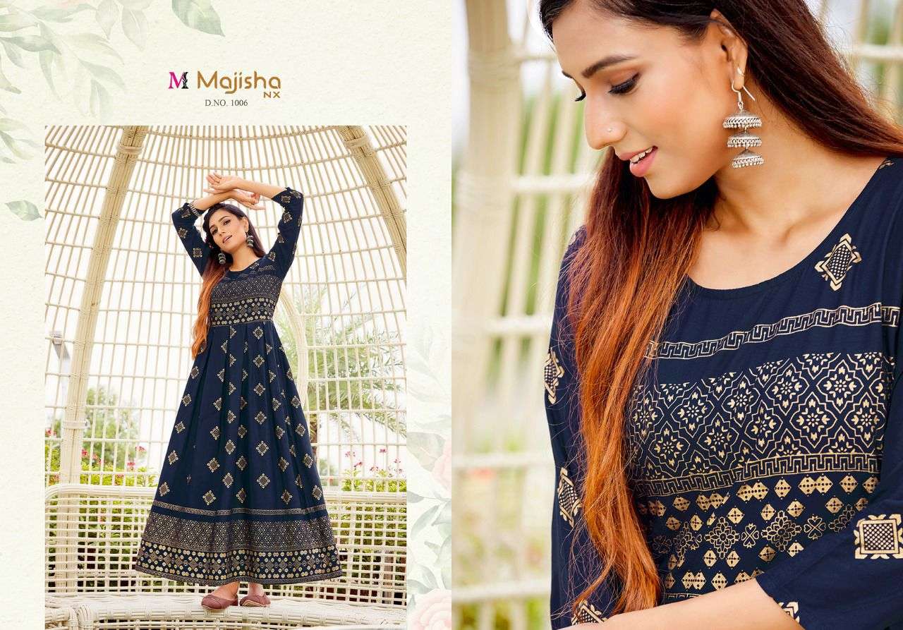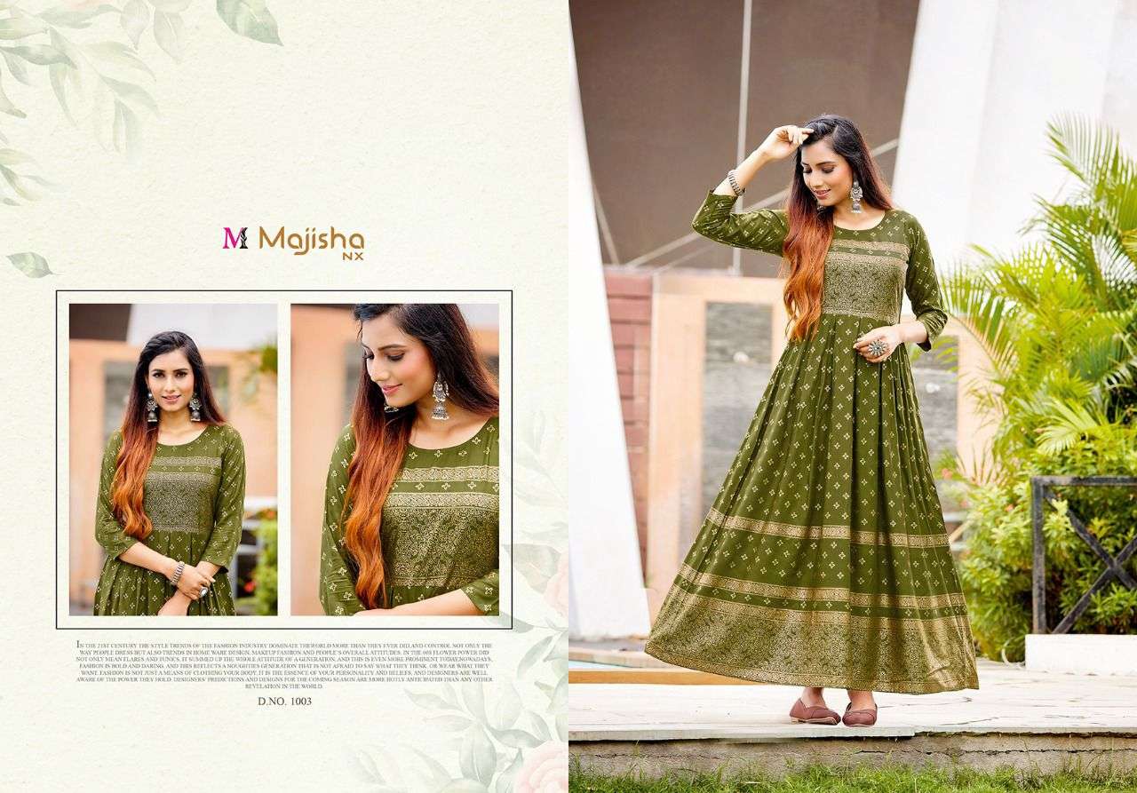 majisha nx advika vol 1 rayon foil printed long gown supplier