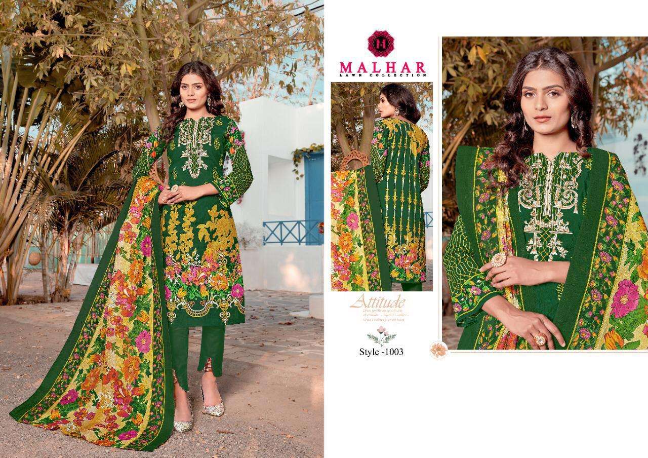 NEW LAUNCH *MALHAR * LAWN COLLECTION Pure Lawn collection with mal mal duppata Top : Pure Lawn (cut:2.25 mtr) Bottom : pure lawn cut:2 mtr) Dupatta: Pure Cotton Mal Mal (cut 2.25 mtr) Designs :10 RATE:-375+GST With attractive pouch packing WITH LADHER BAG PACKING BOOK UR ORDER FAST Limited stock DELEVERY TOMORROW |