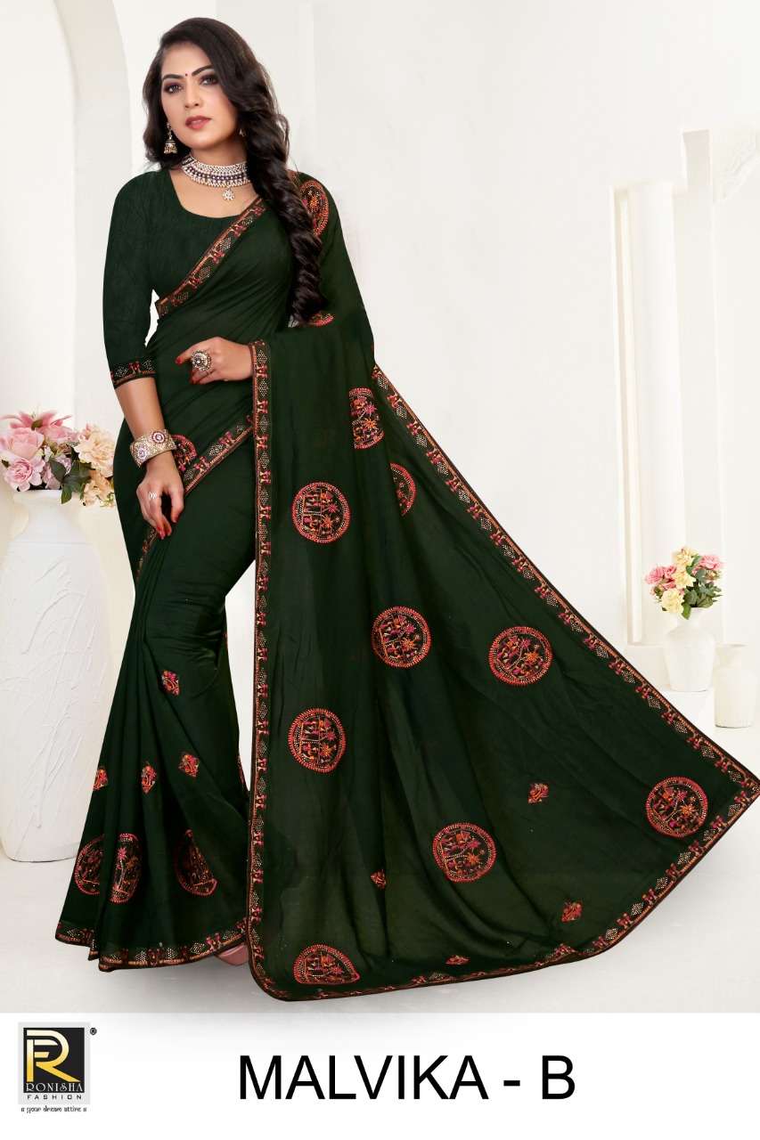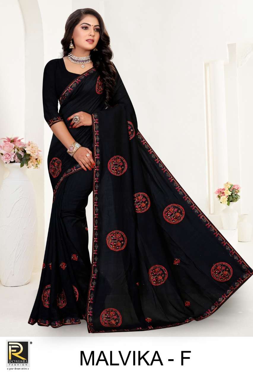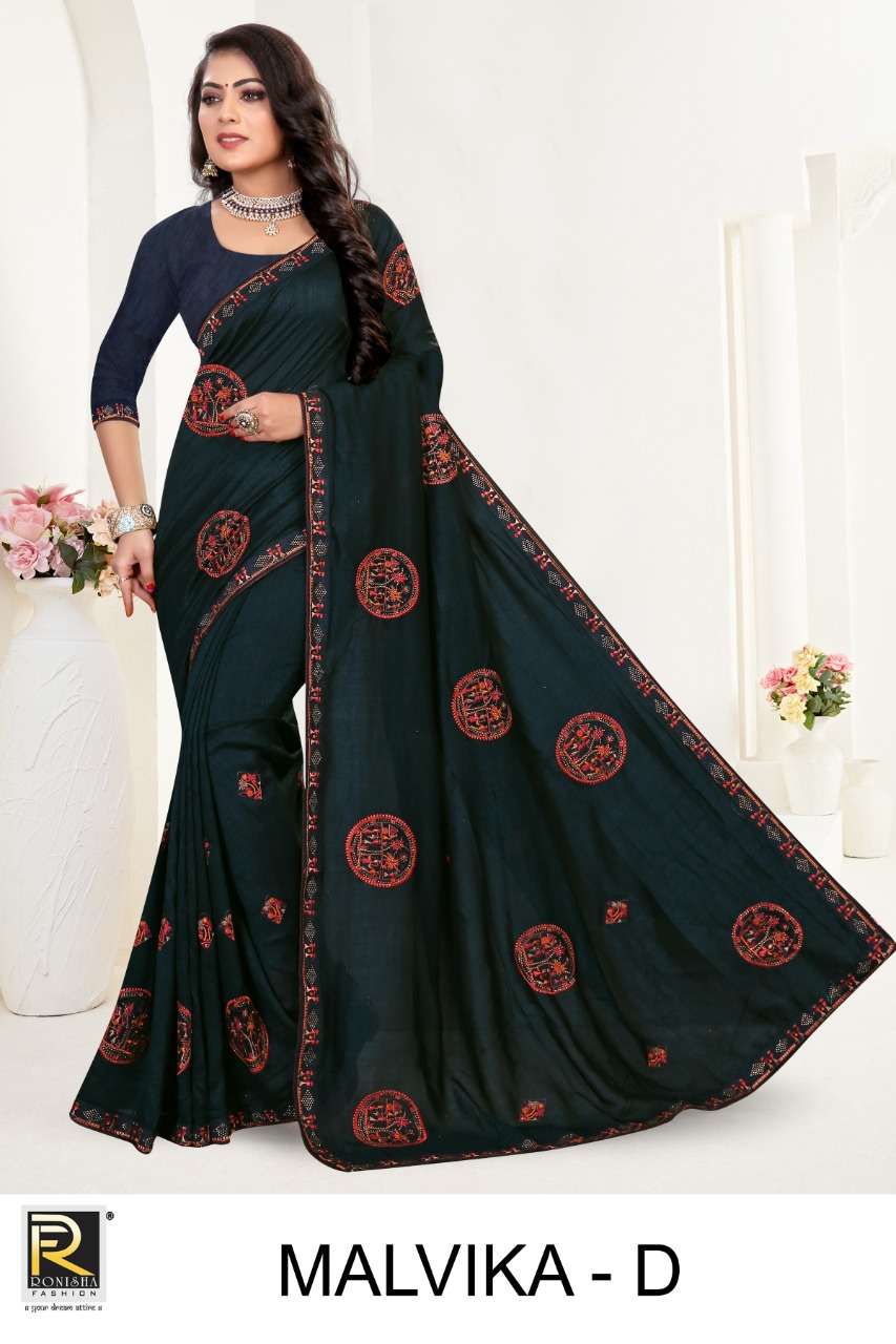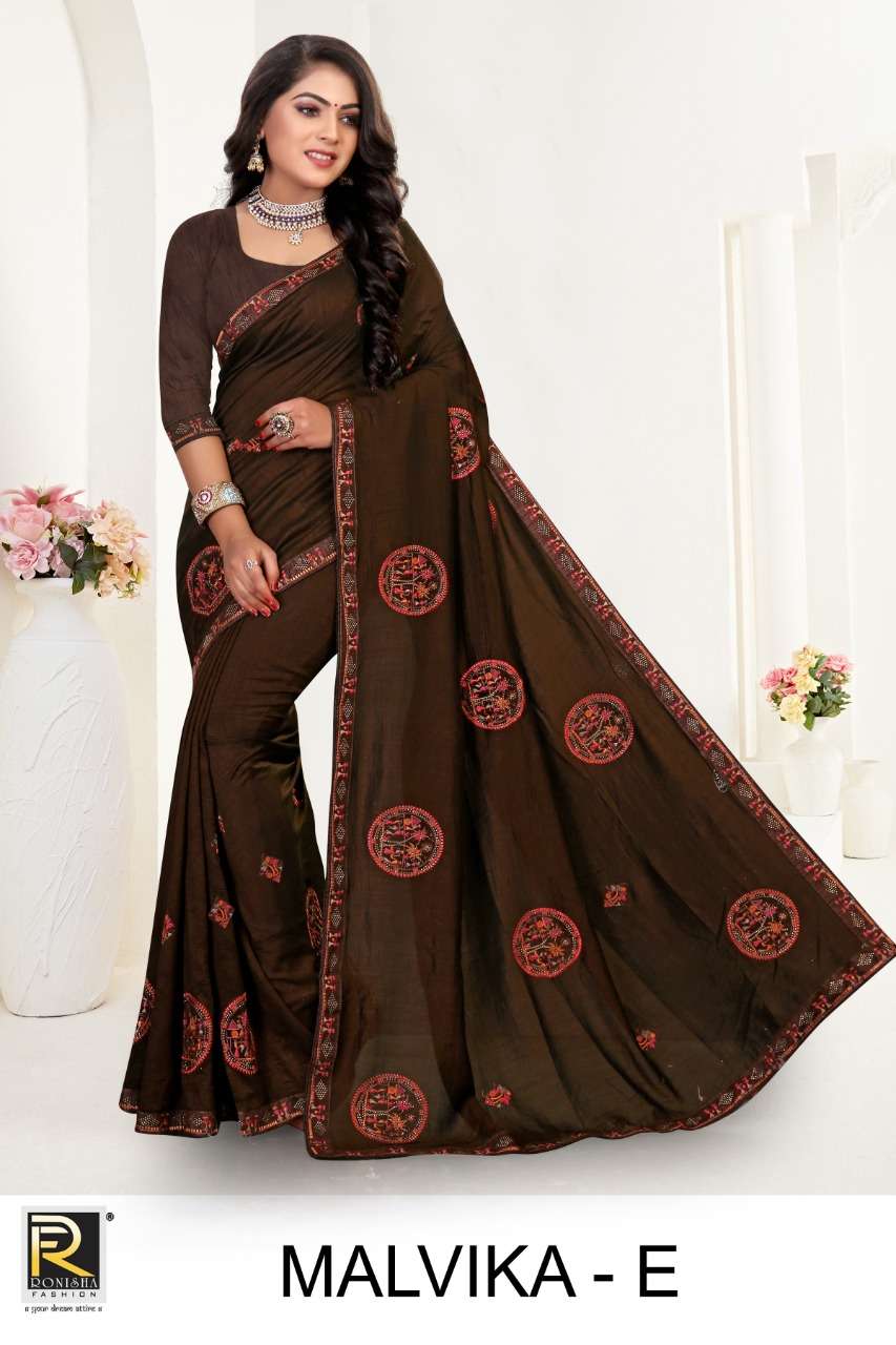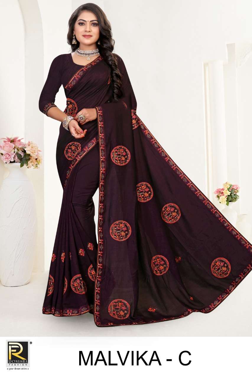 Malvika by ranjna fabric pc vichitra silk fancy thread worked sarees