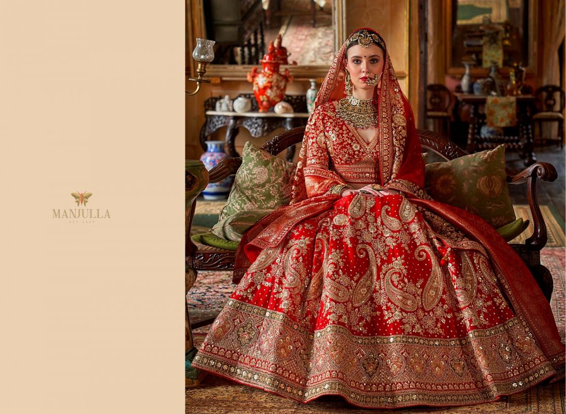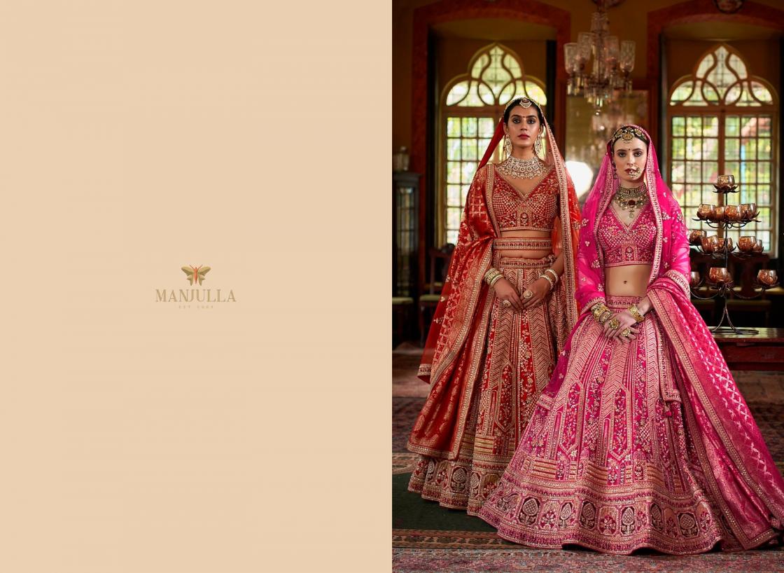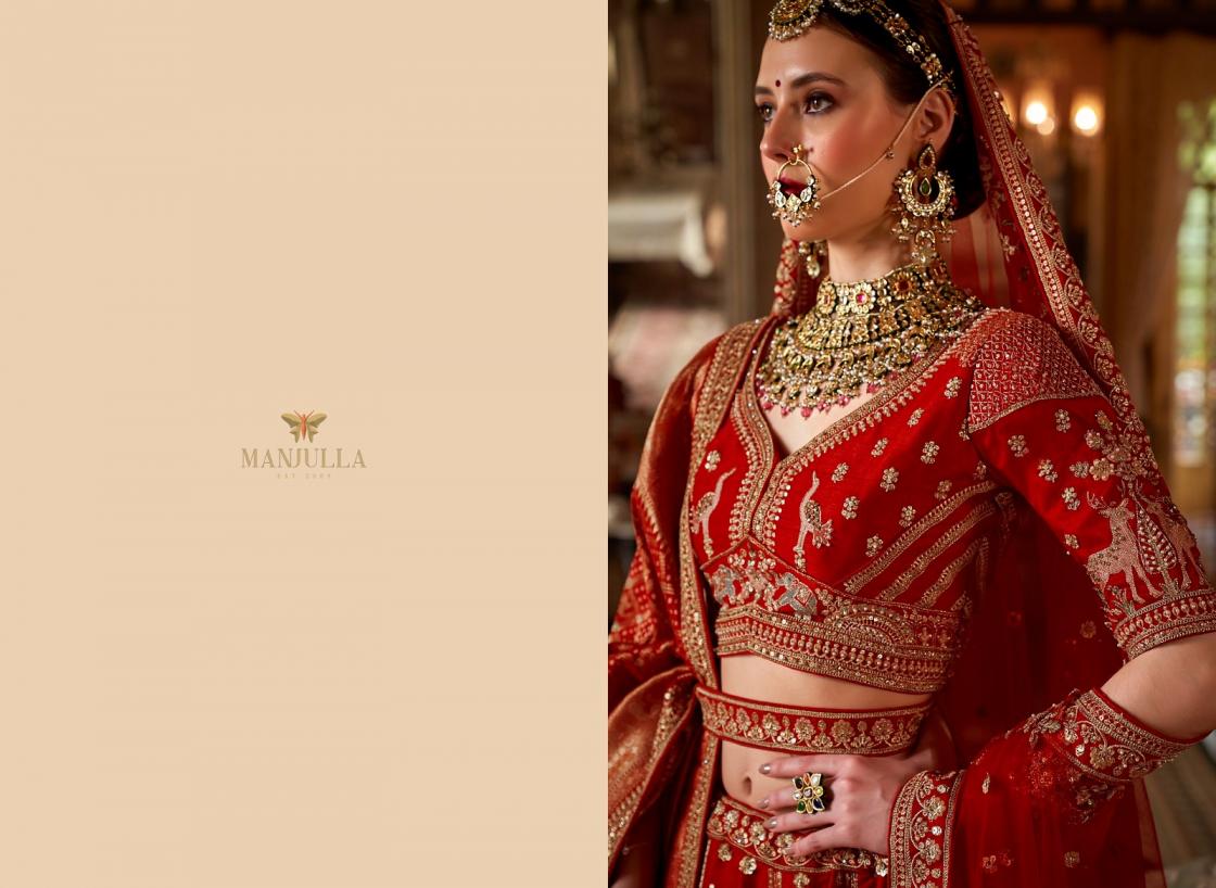 Brand : Manjulla Fashion Catalogue : Dulhan Vol-3 Lehenga (Stitched) Blouse (Unstitched) Double Dupatta Package Contain : Lehenga, Blouse, 2 Dupatta Rate : 12,995/- +12 %Gst Occasion: Wedding Wear |