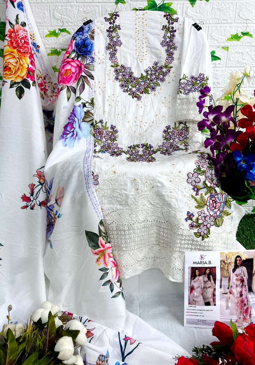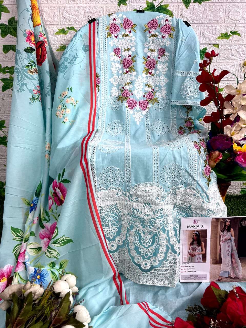 Brand - Dinsaa MARIA B VOL-2 TOP PURE COTTON WITH HEAVY SELF EMBRODEREY WITH HAND WORK' BOTTOM SEMILAWN COTTON DUPATA WITH DIGITAL PRINT DESIGNS 3 RATE 1175+GST DINSAASUIT®️ |
