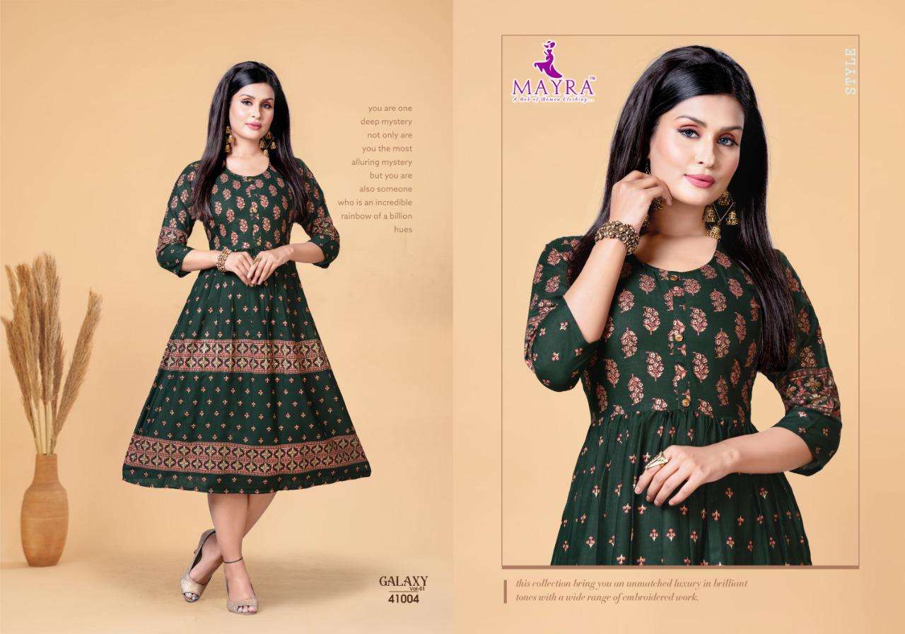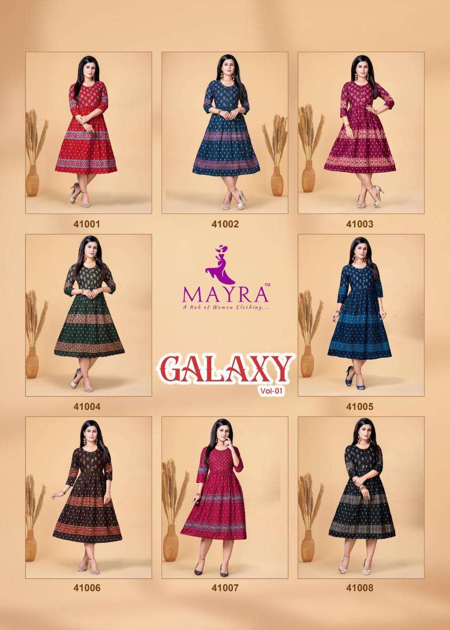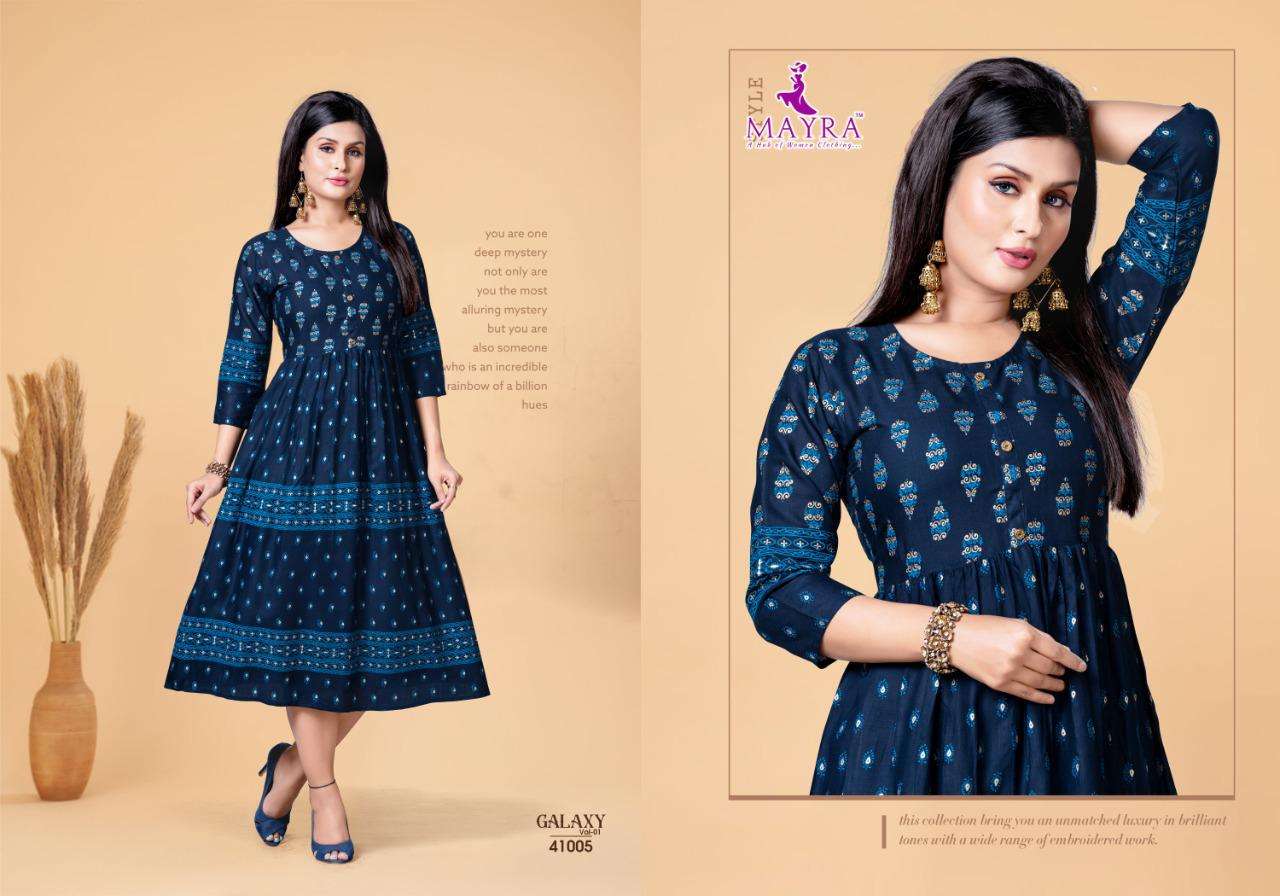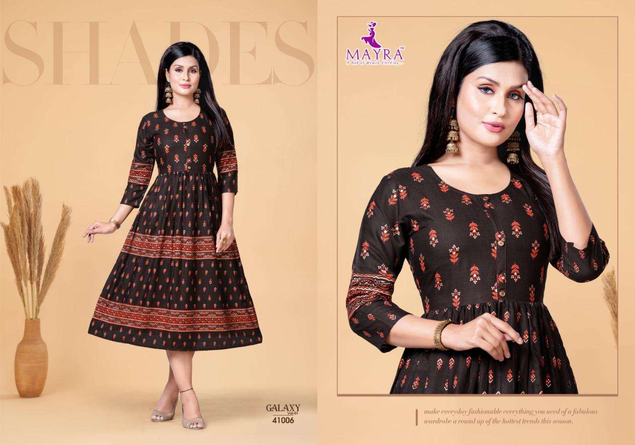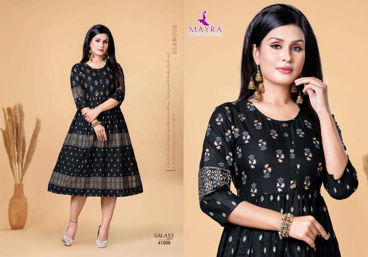 MAYRA GALAXY VOL.2 HEAVY Reyon plain 14kg with machine Gold print KURTI CATALOG WHOLESALER BEST RATE