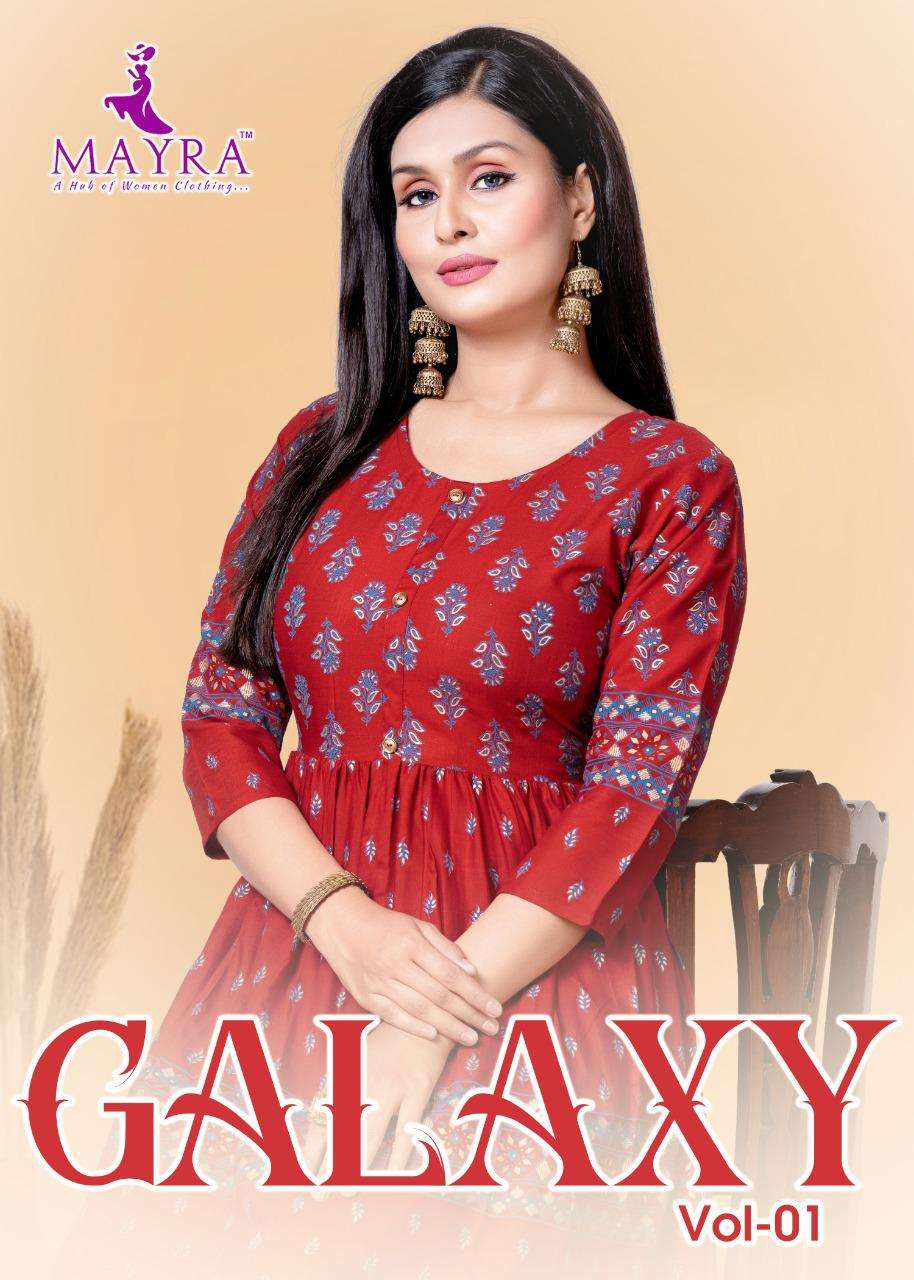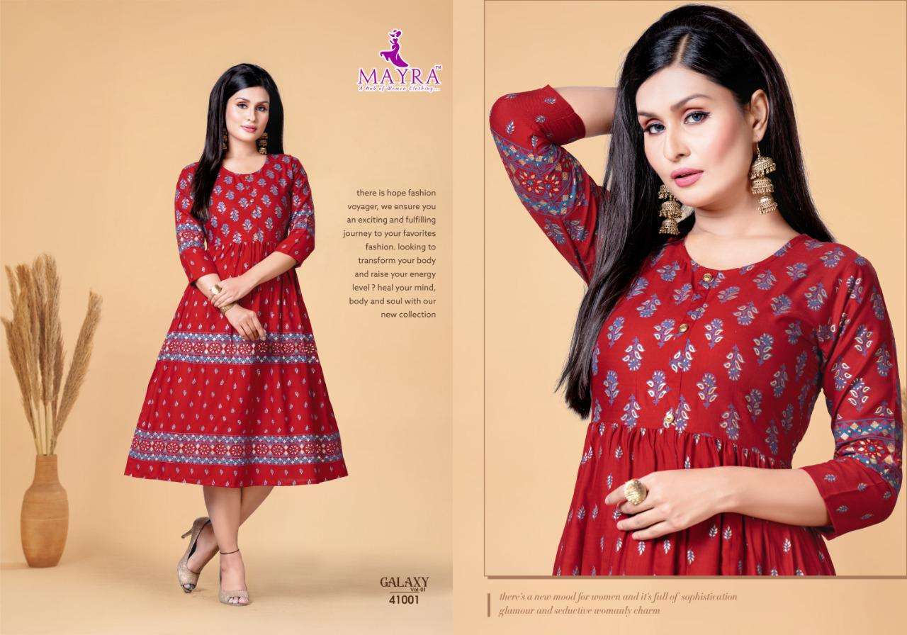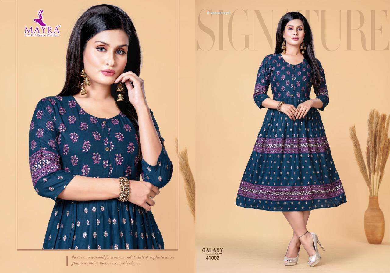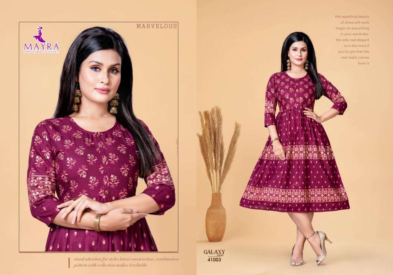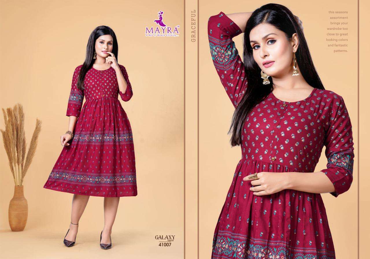 MAYRA GALAXY VOL.2 HEAVY Reyon plain 14kg with machine Gold print KURTI CATALOG WHOLESALER BEST RATE