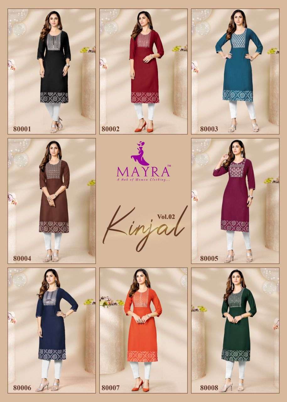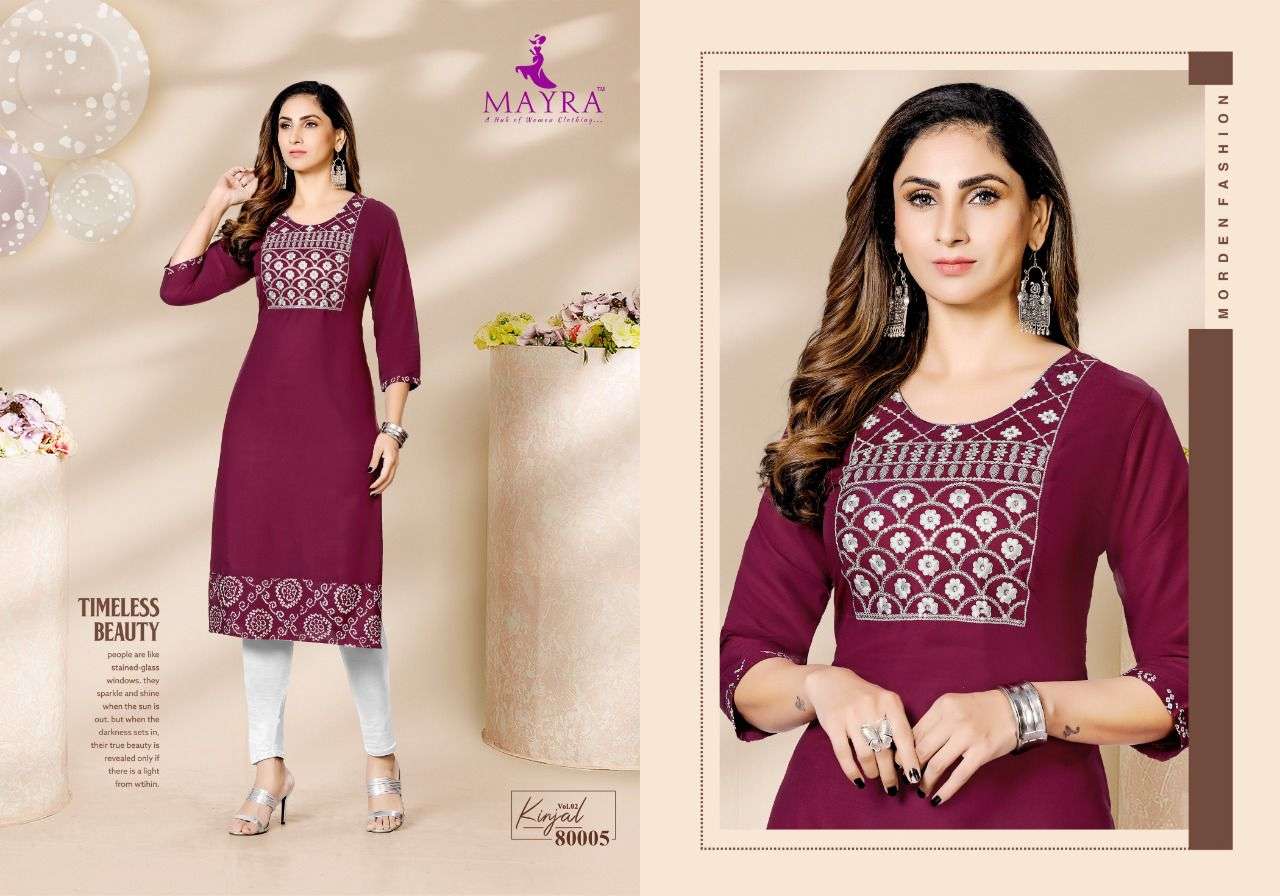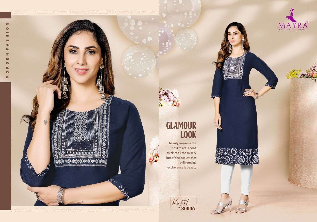 MAYRA KINJAL VOL.2 Reyon plain 14kg with sequence Embroydrey and stiching pattern KURTI CATLOG WHOLESALER BEST RATE