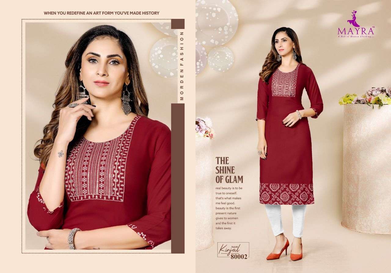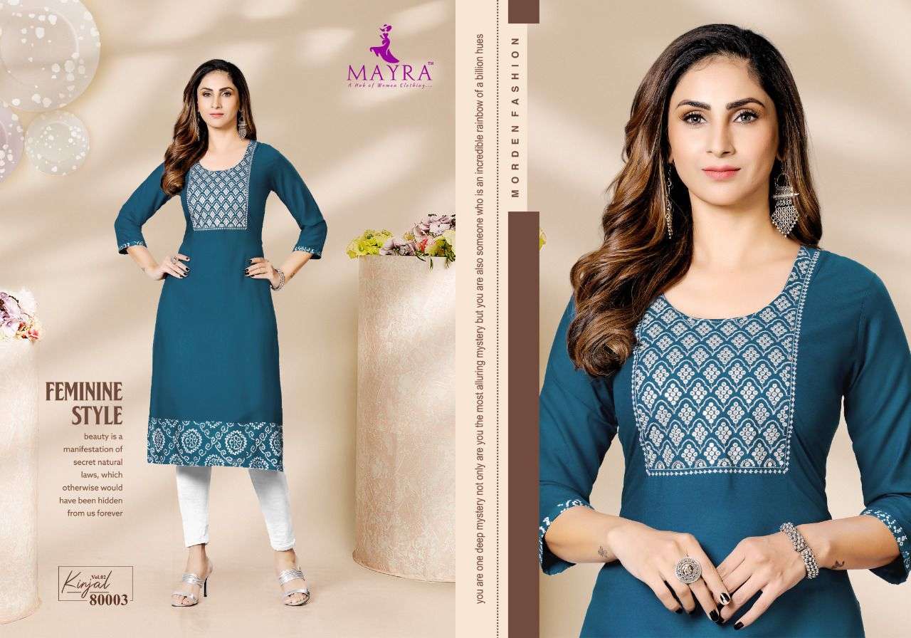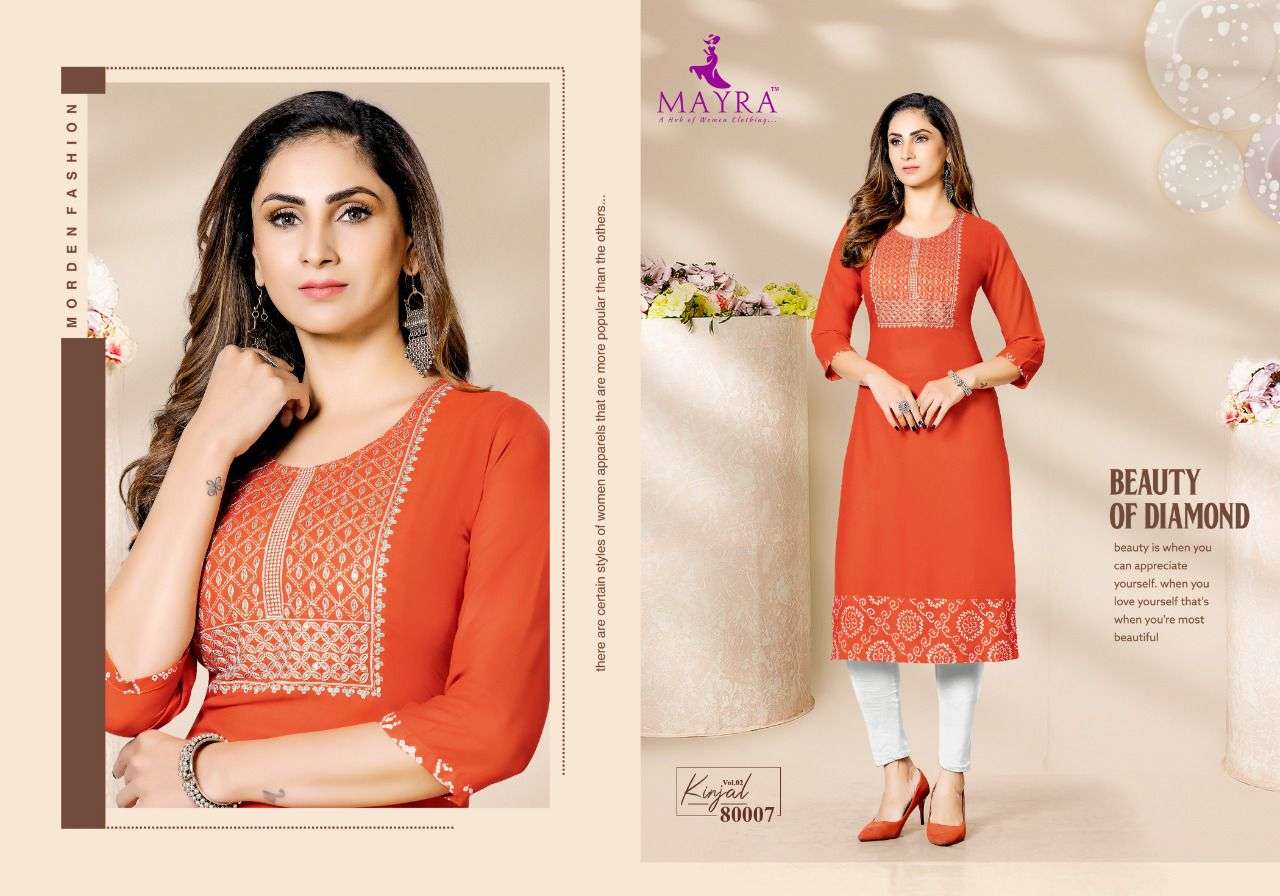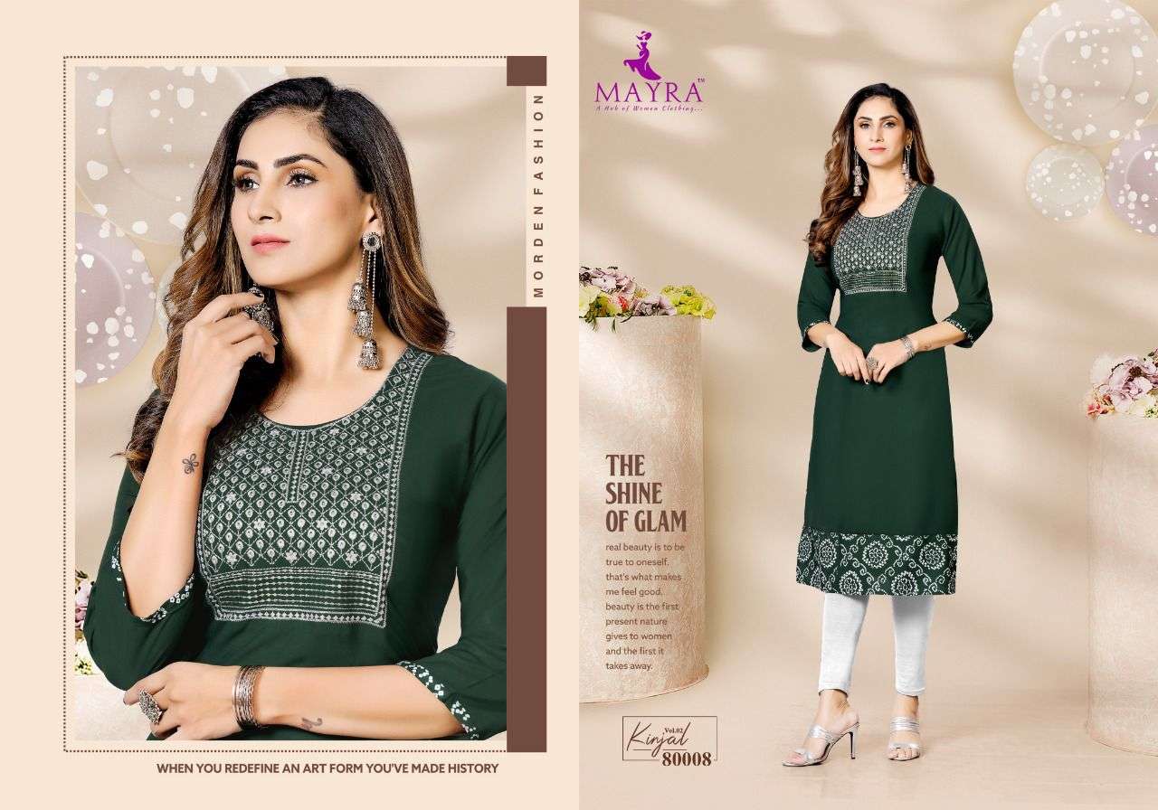 MAYRA KINJAL VOL.2 Reyon plain 14kg with sequence Embroydrey and stiching pattern KURTI CATLOG WHOLESALER BEST RATE