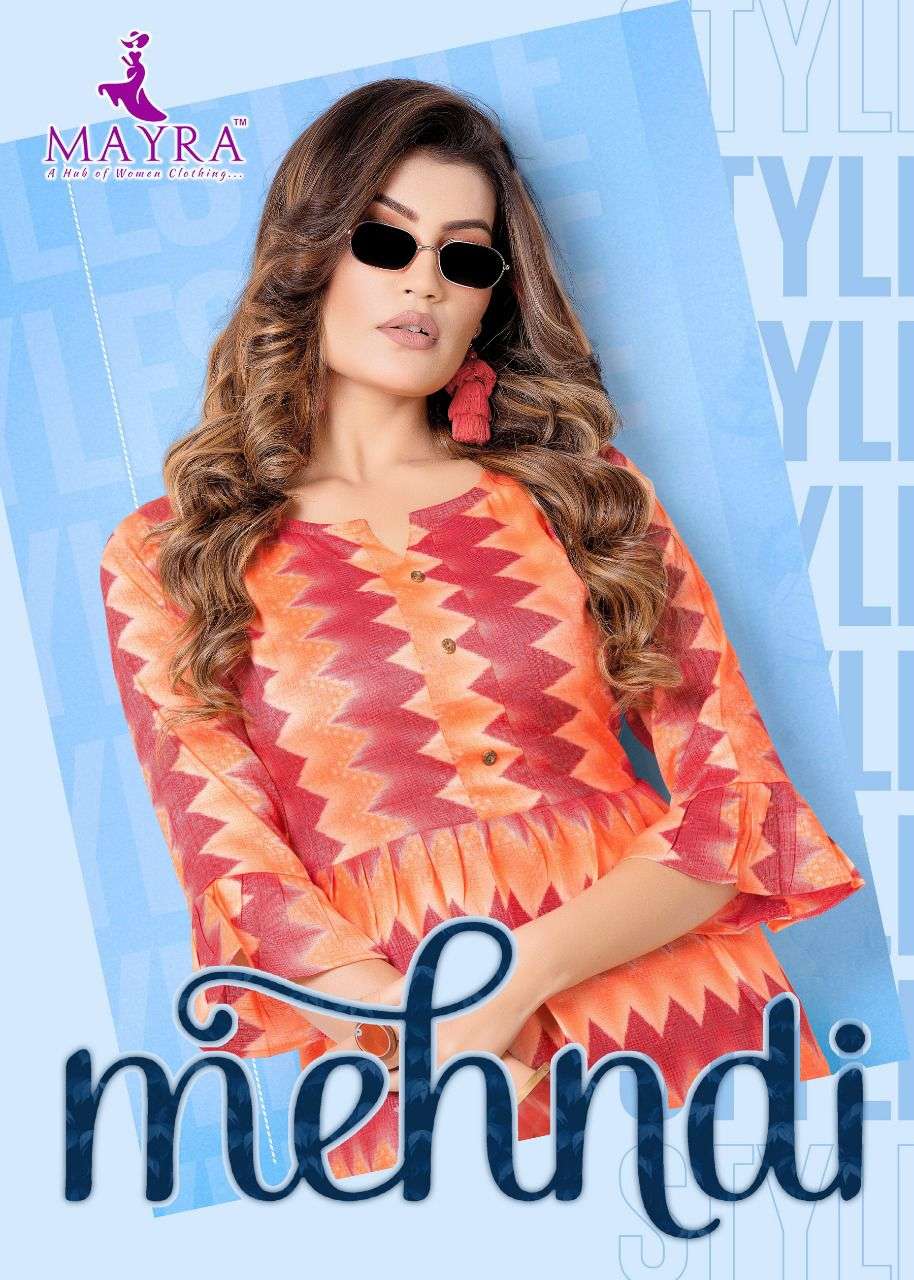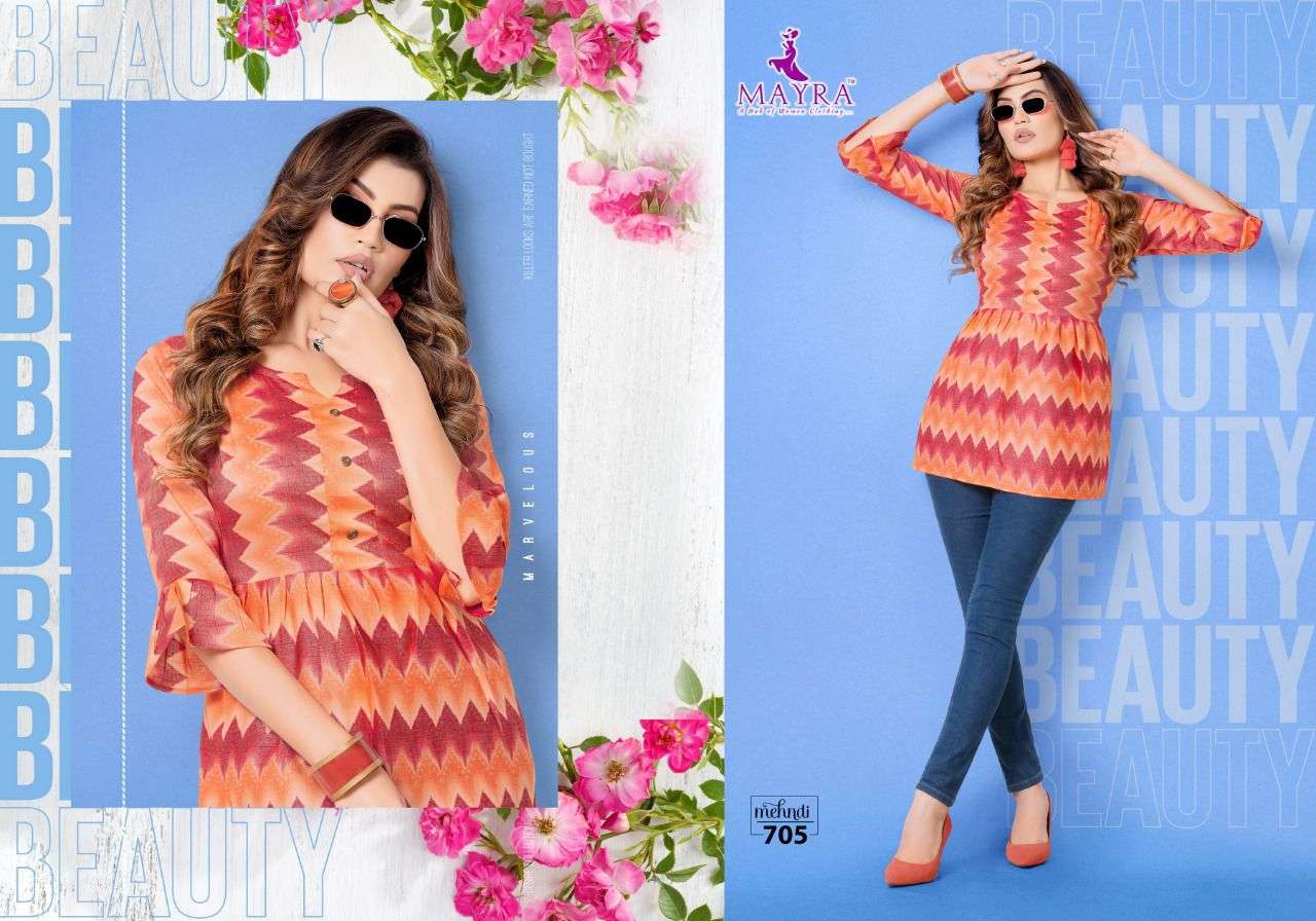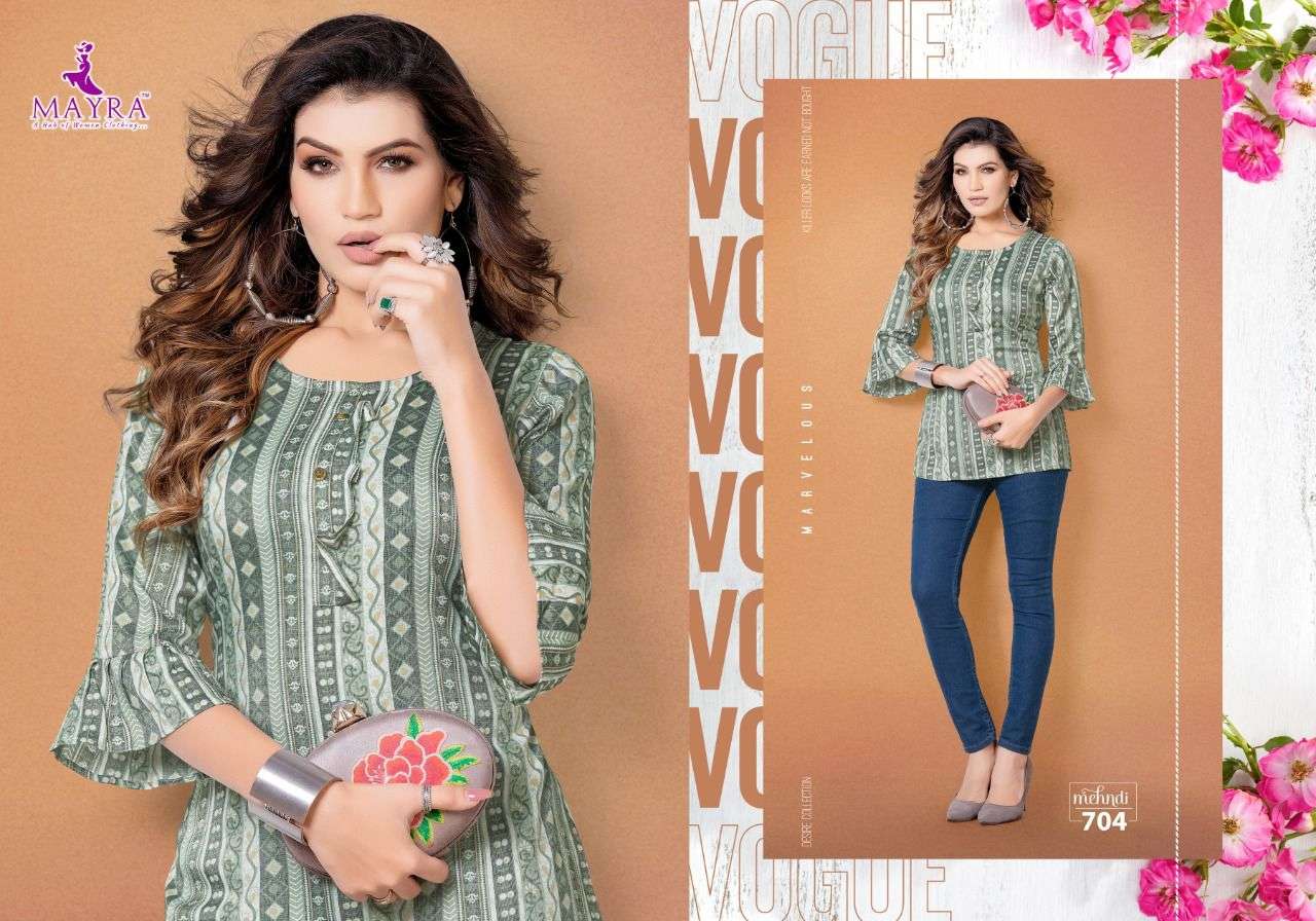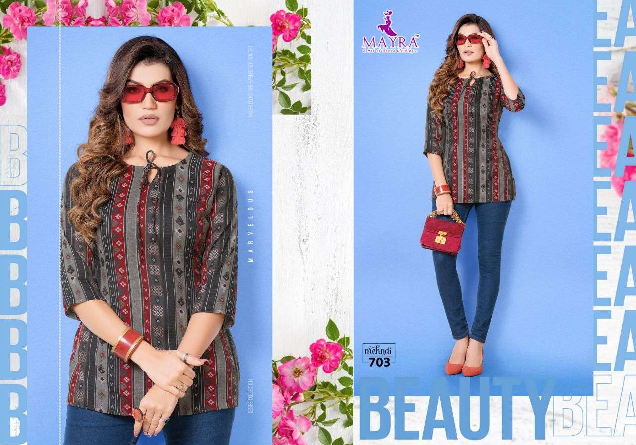 MAYRA MEHANDI reyon capsul print short top with Stiching pattern CATLOG WHOLESALER BEST RATE