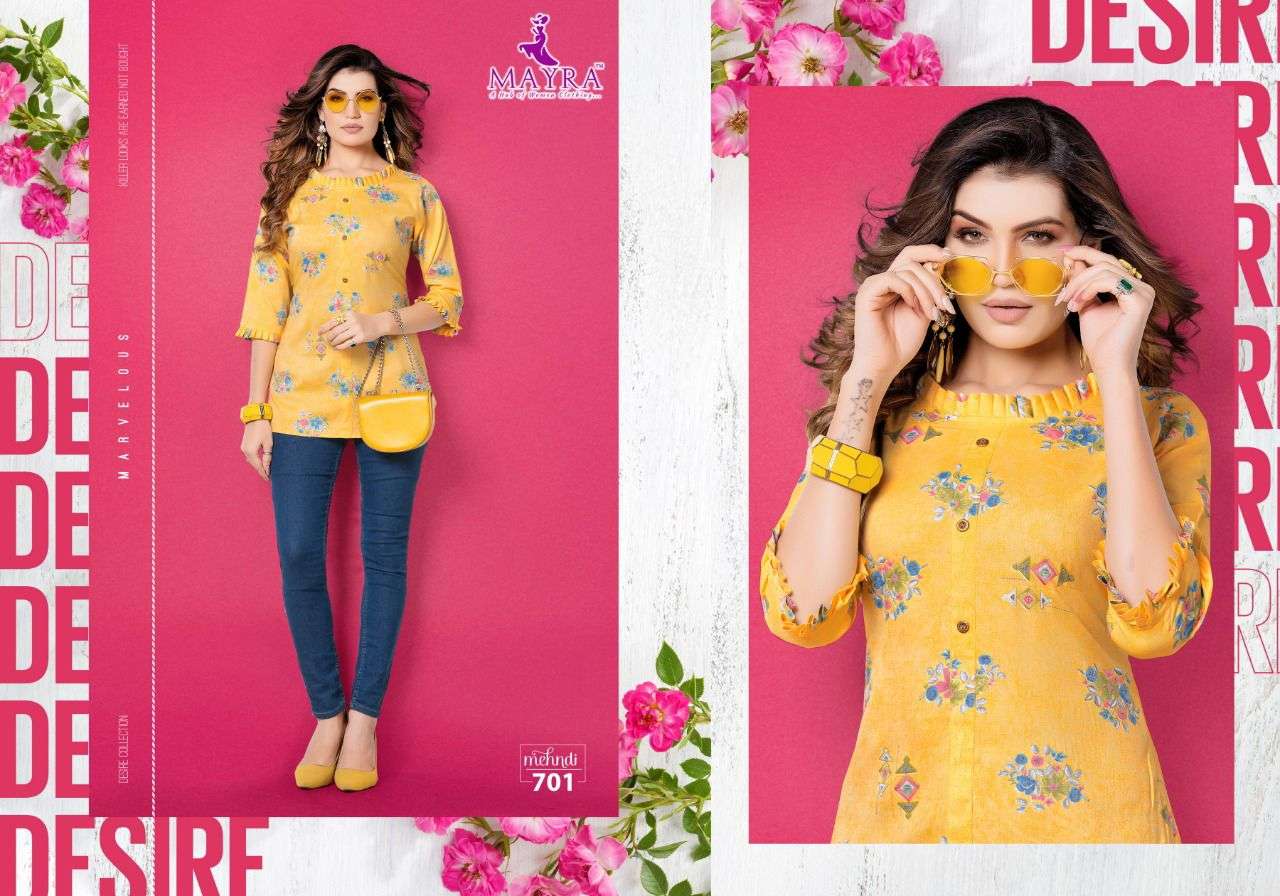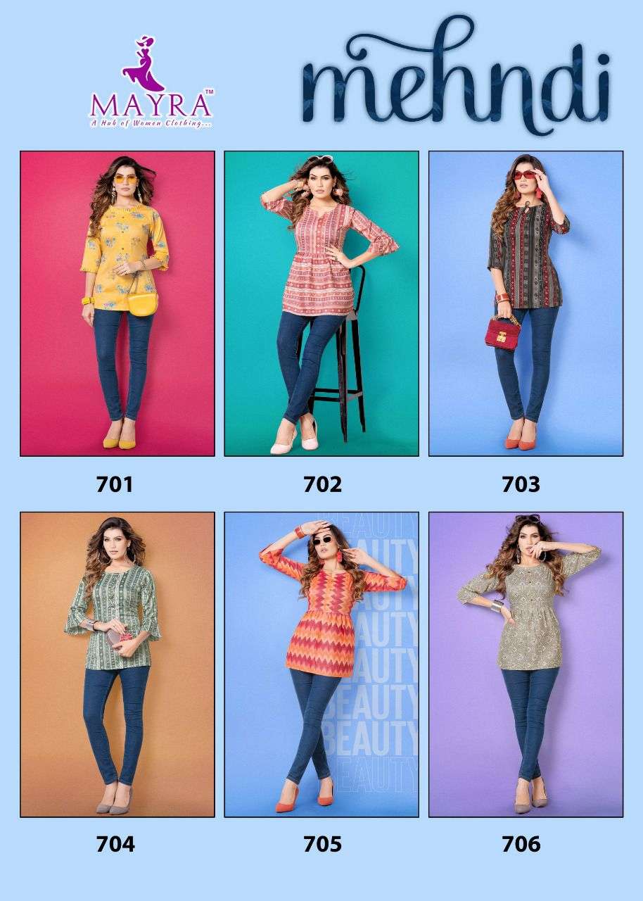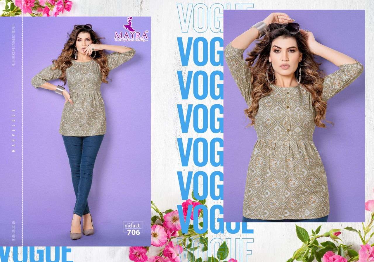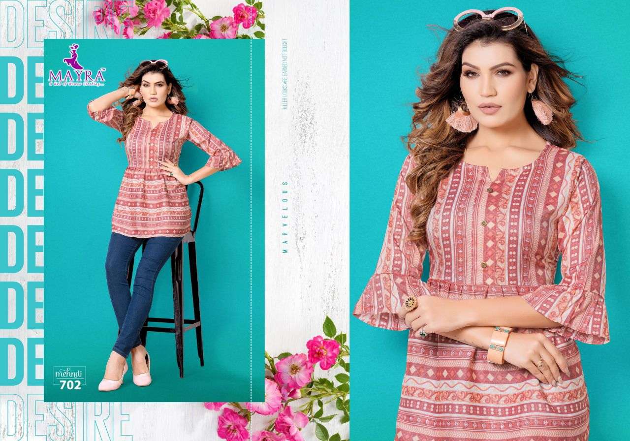 MAYRA MEHANDI reyon capsul print short top with Stiching pattern CATLOG WHOLESALER BEST RATE