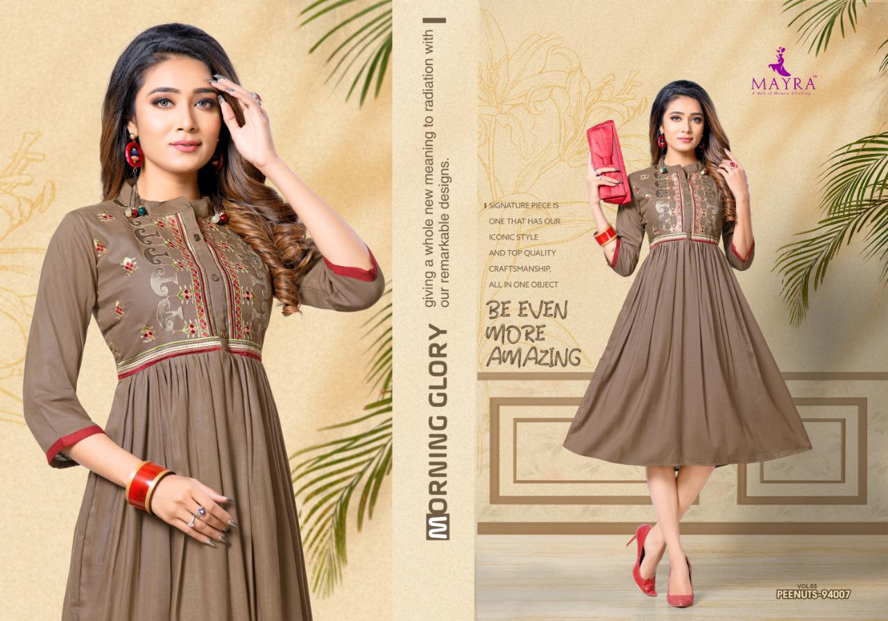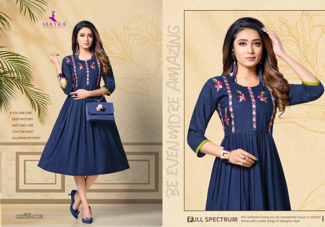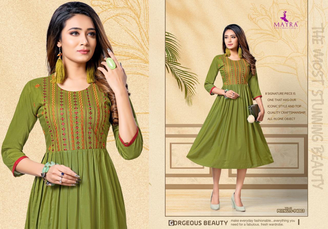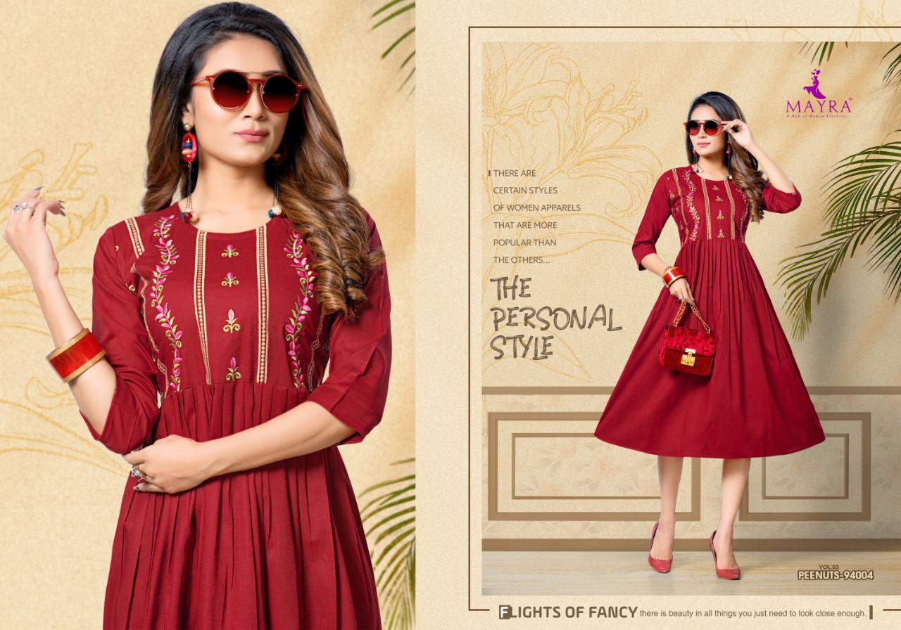 Mayra Peenuts Vol 3 Rayon Slub With Embroidery Casual Wear Kurti At Lowest Rate