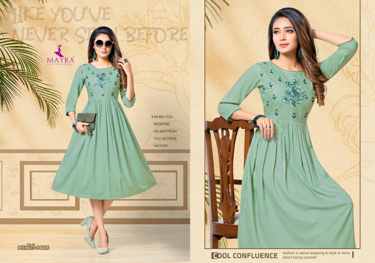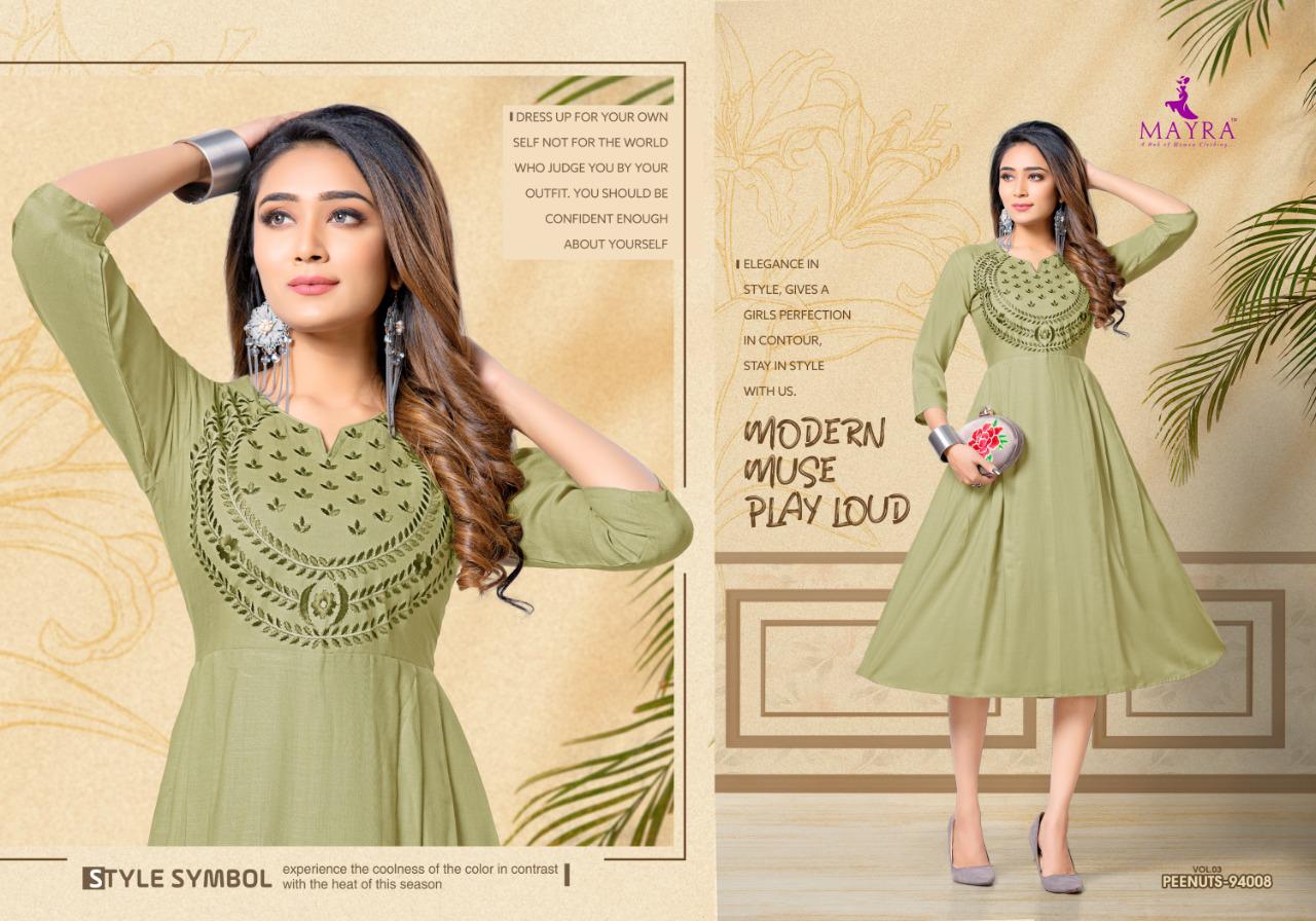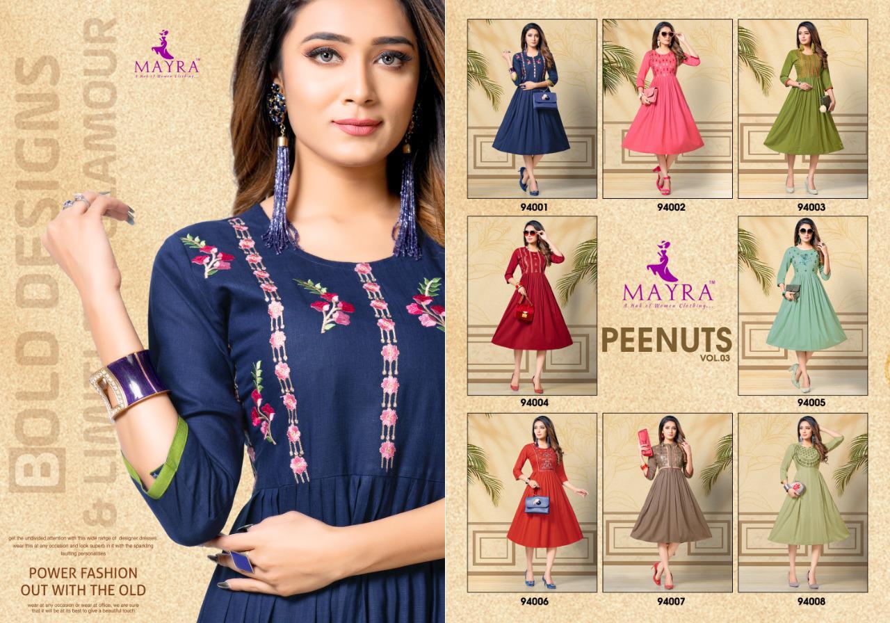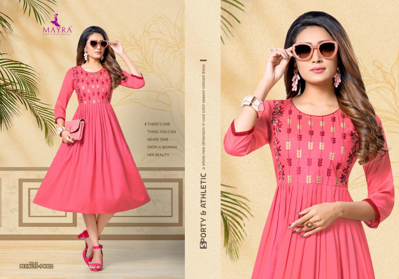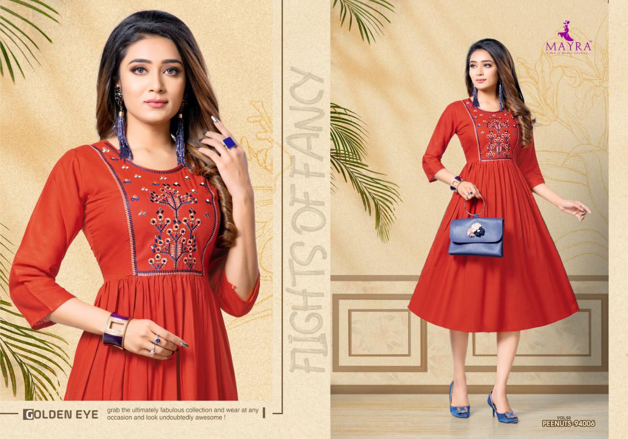 Mayra Peenuts Vol 3 Rayon Slub With Embroidery Casual Wear Kurti At Lowest Rate