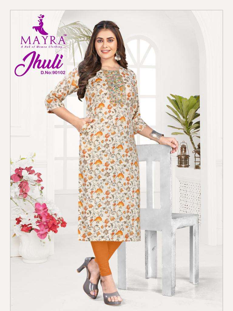 mayra present jhuli fancy capsule print with work casual kurtis collection