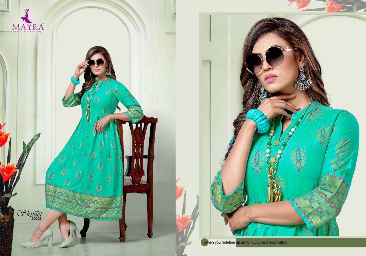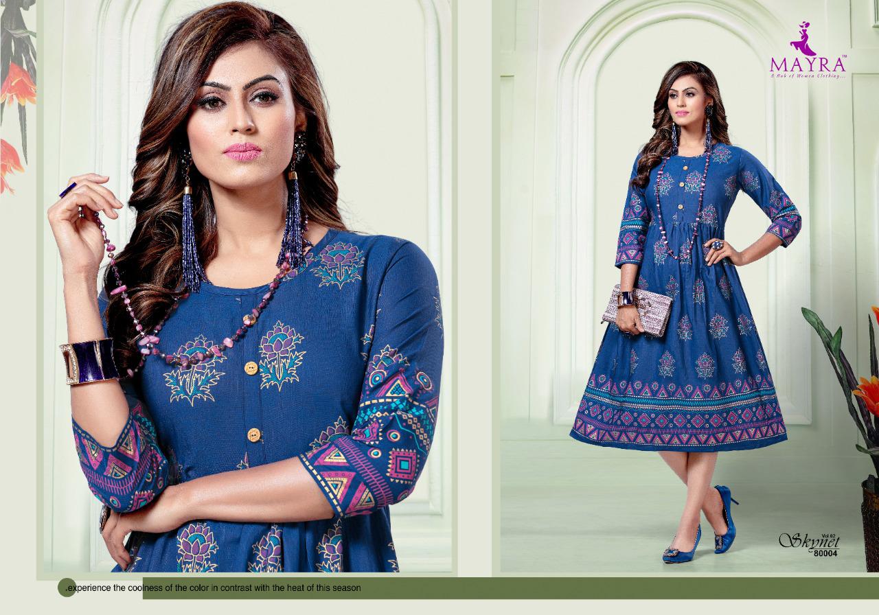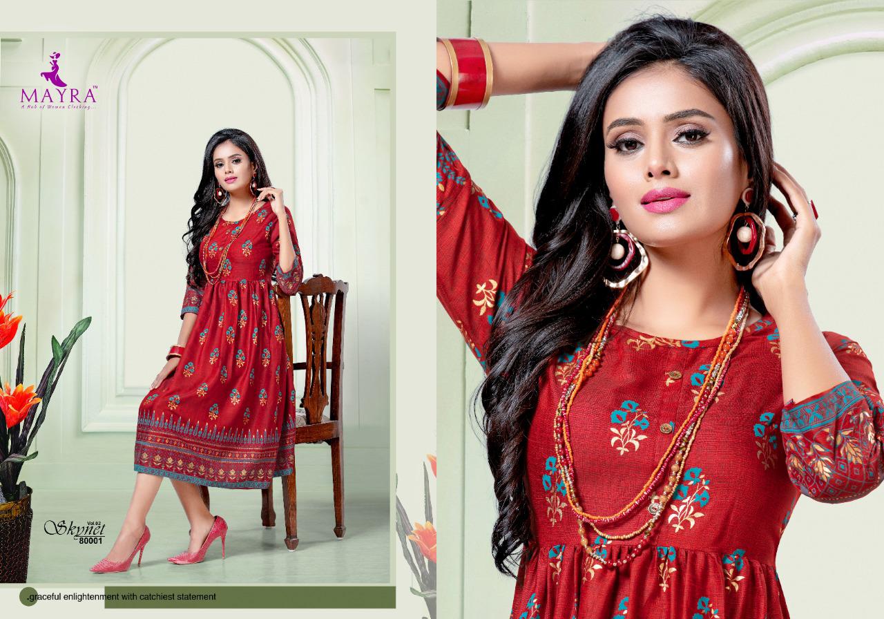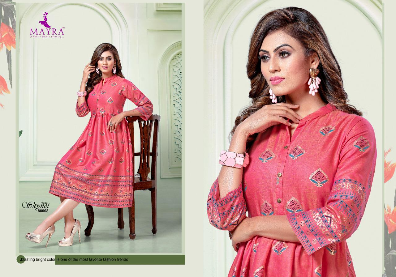 Mayra Skynet Vol 2 Rayon With Gold Print Exclusive Kurti At Wholesale Rate