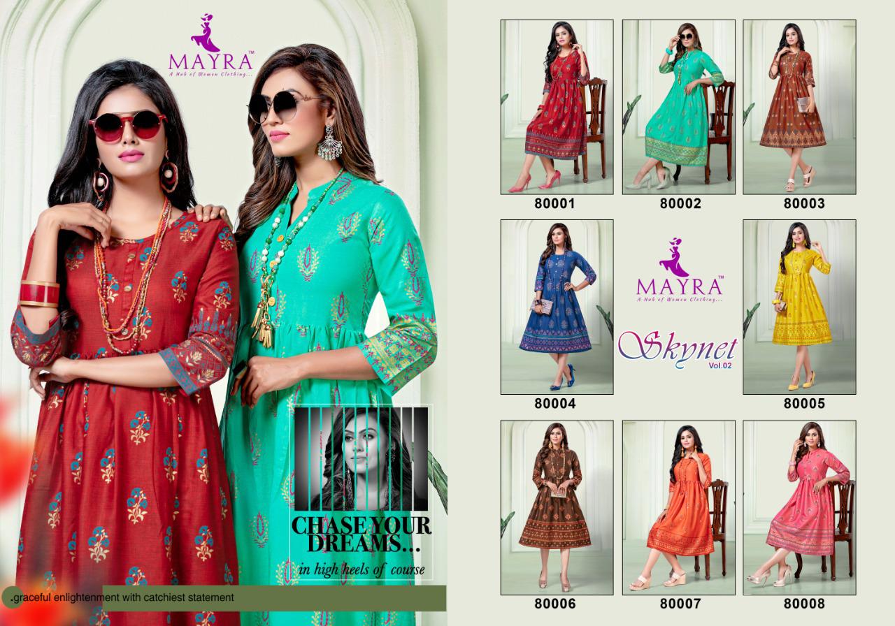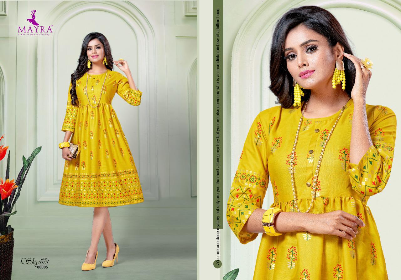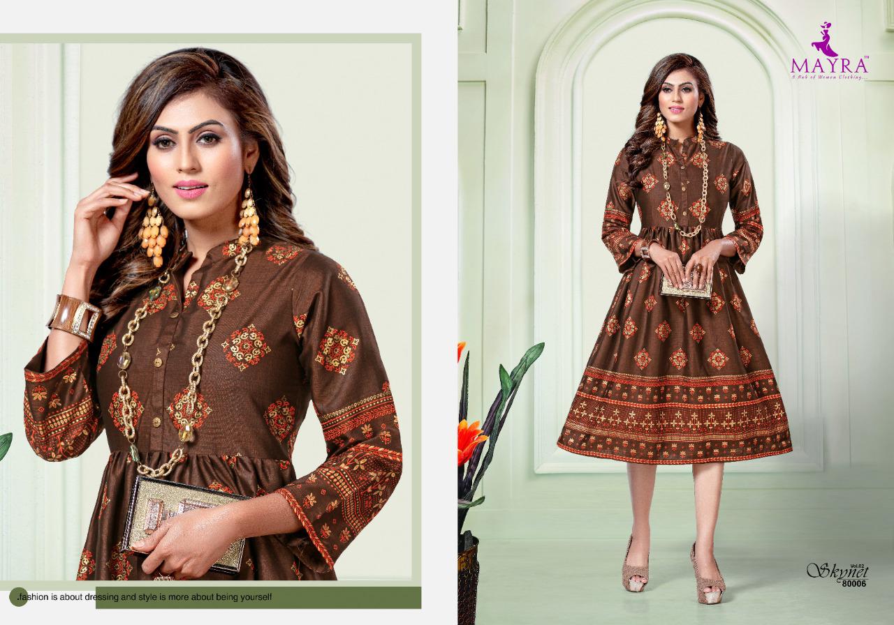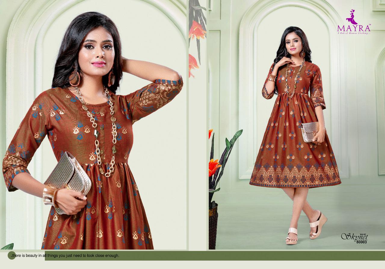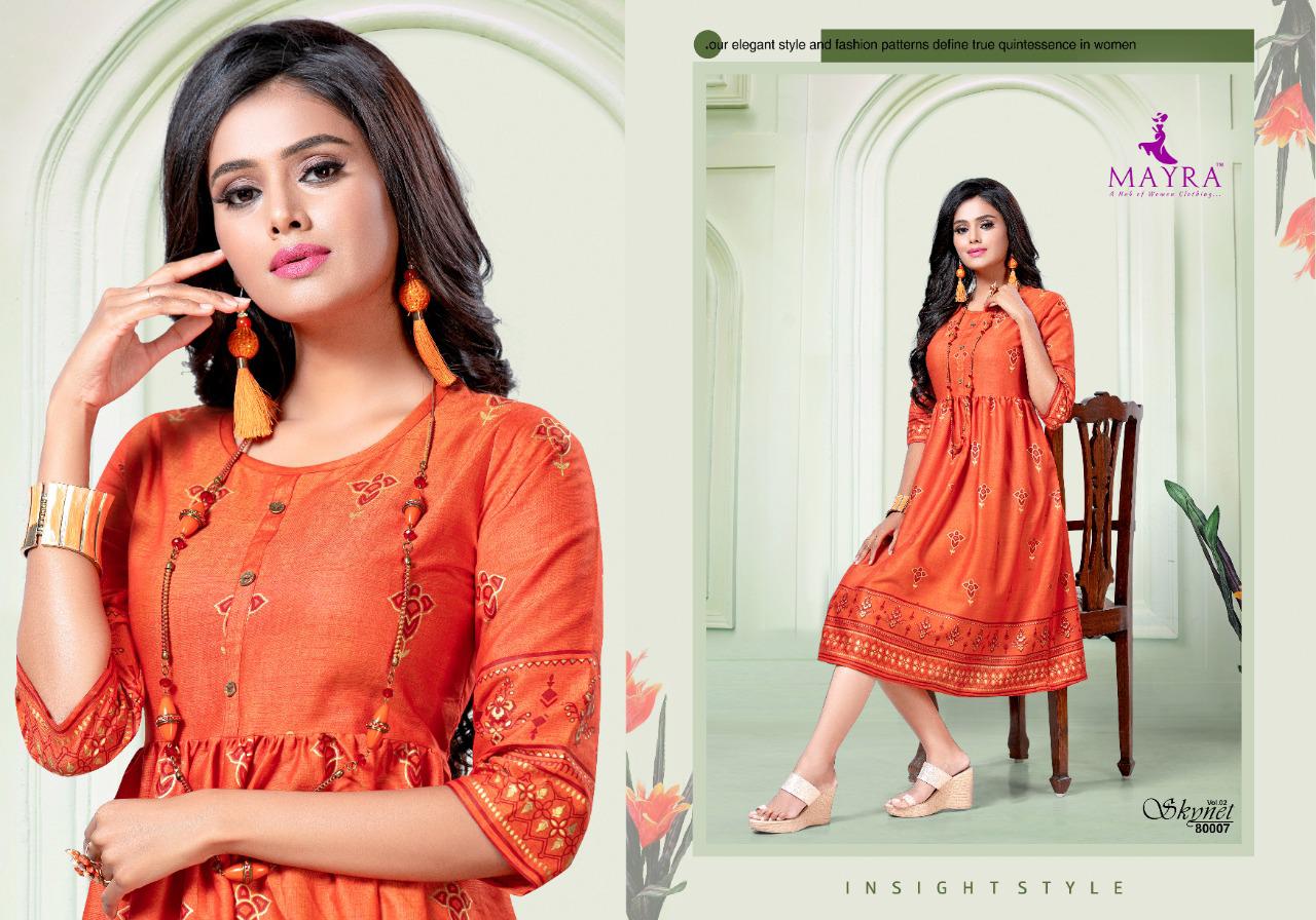 Mayra Skynet Vol 2 Rayon With Gold Print Exclusive Kurti At Wholesale Rate