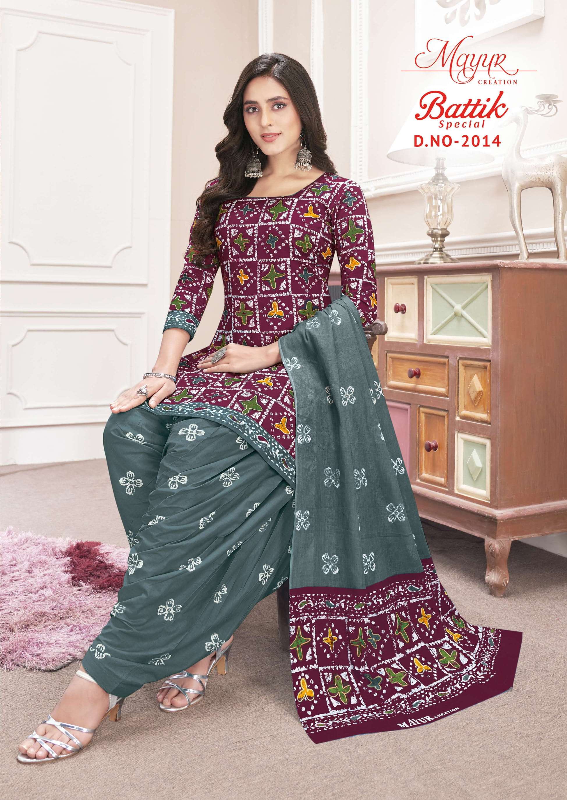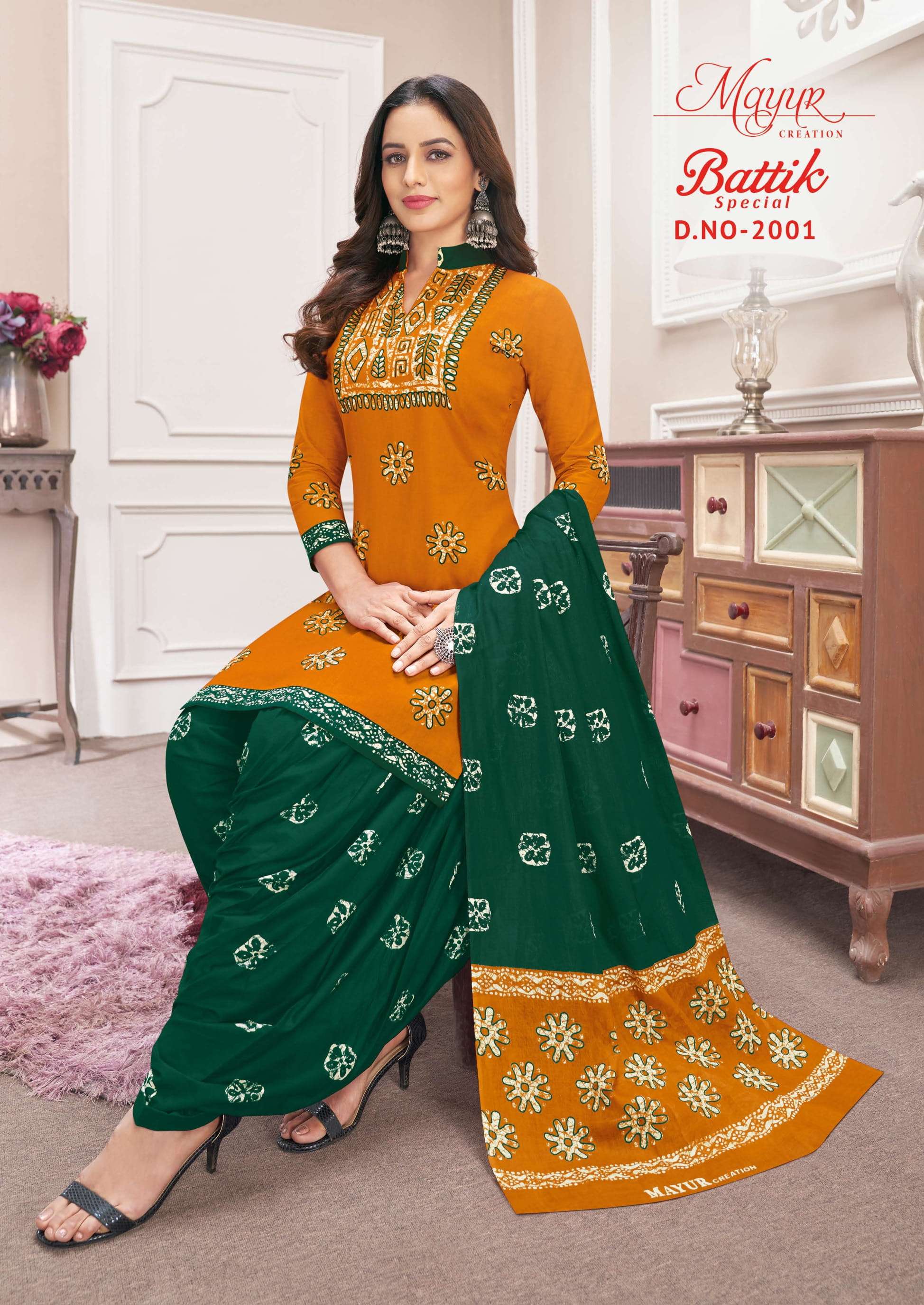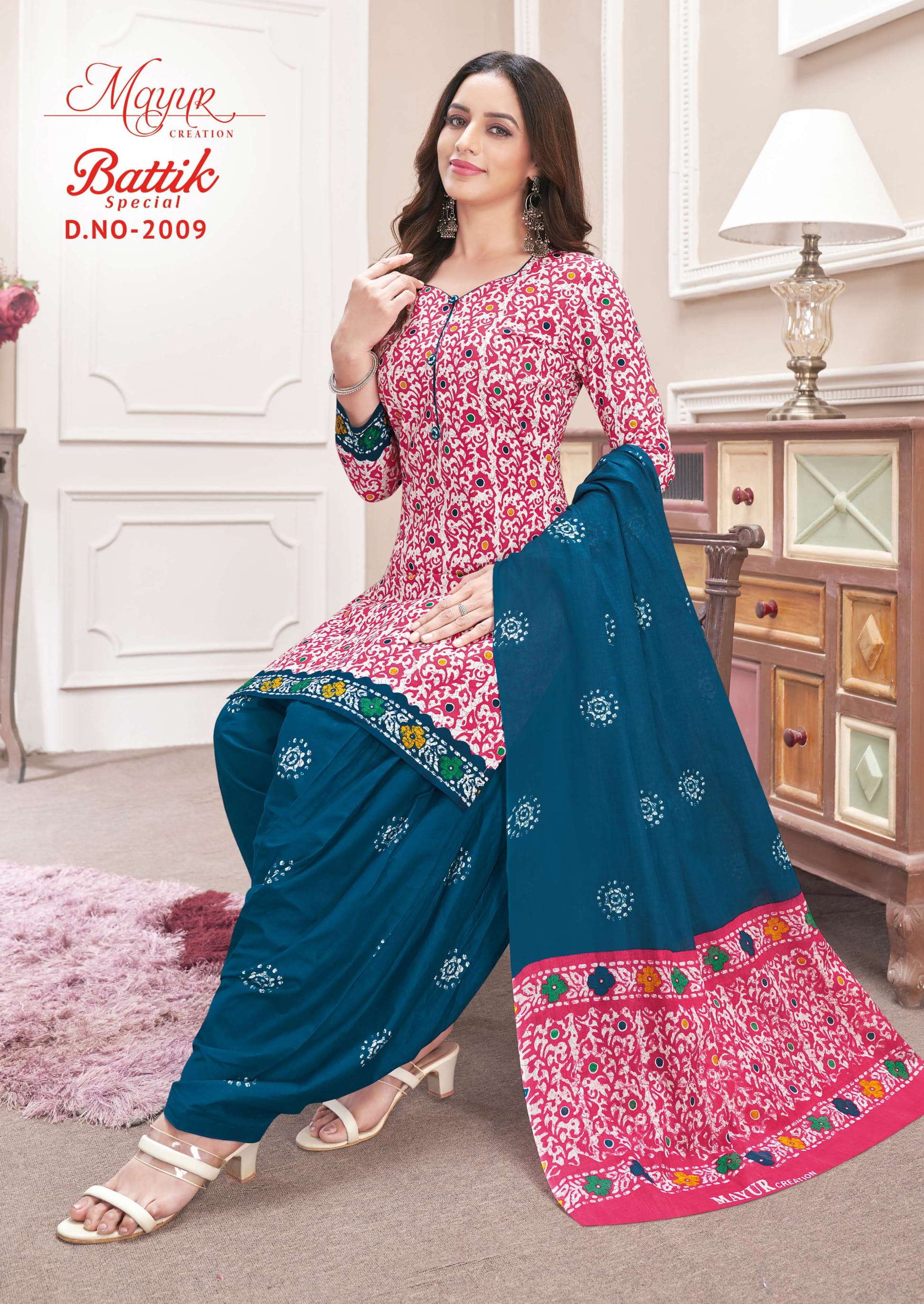 MAYUR CREATION New launch BATIK SPECIAL VOL-20 15 pcs Catalog RATE ~ 395/- Batik Printed Ladies Chudidar Materials Wholesaler in Surat Market |