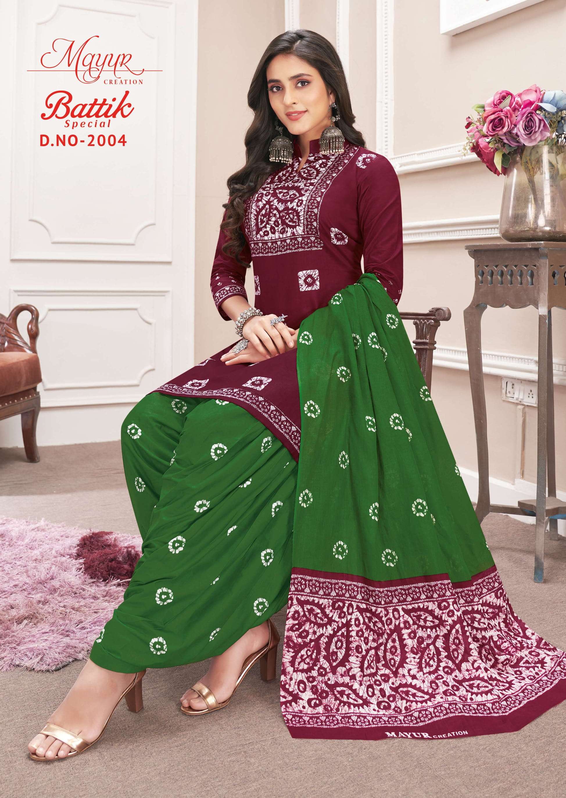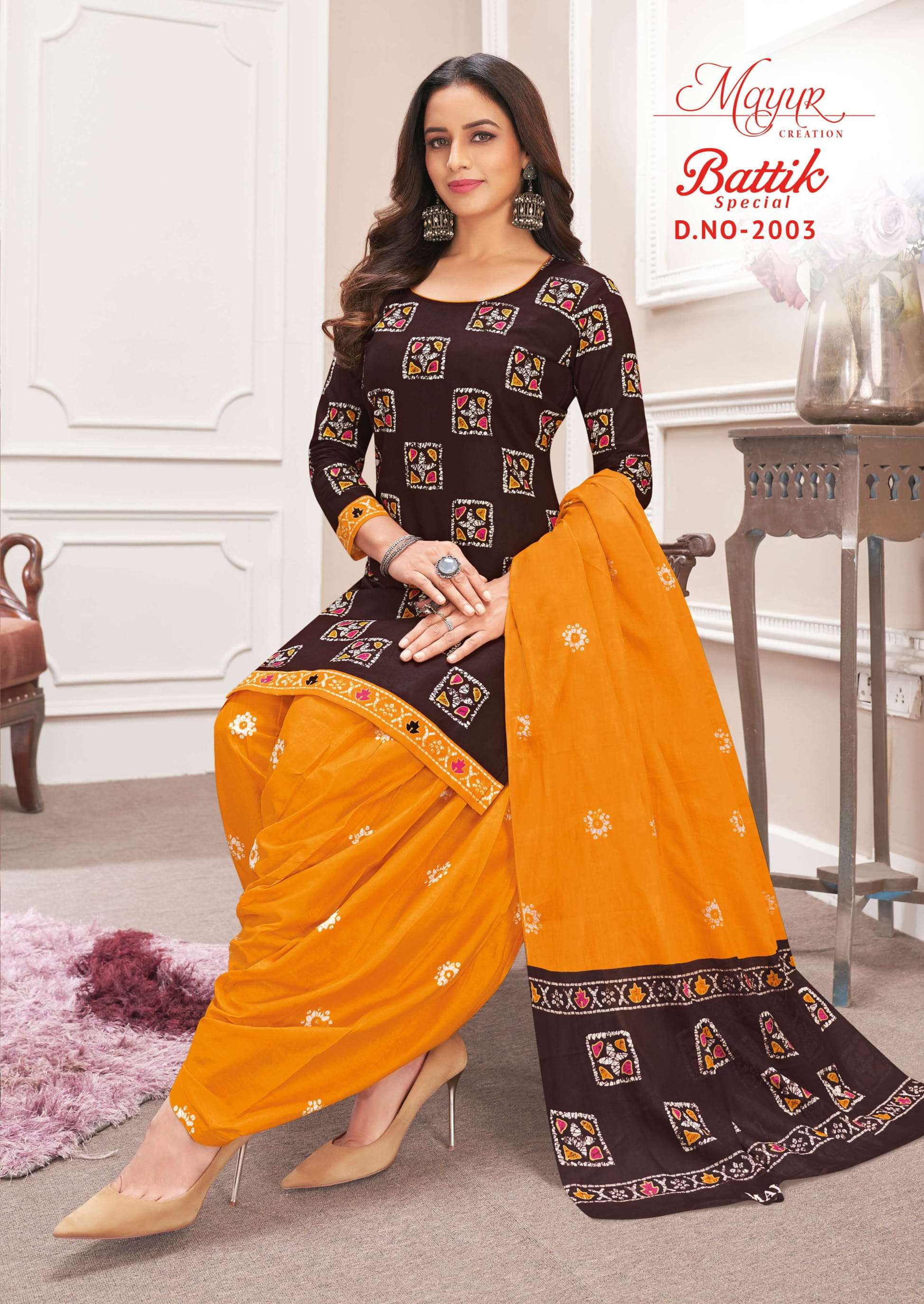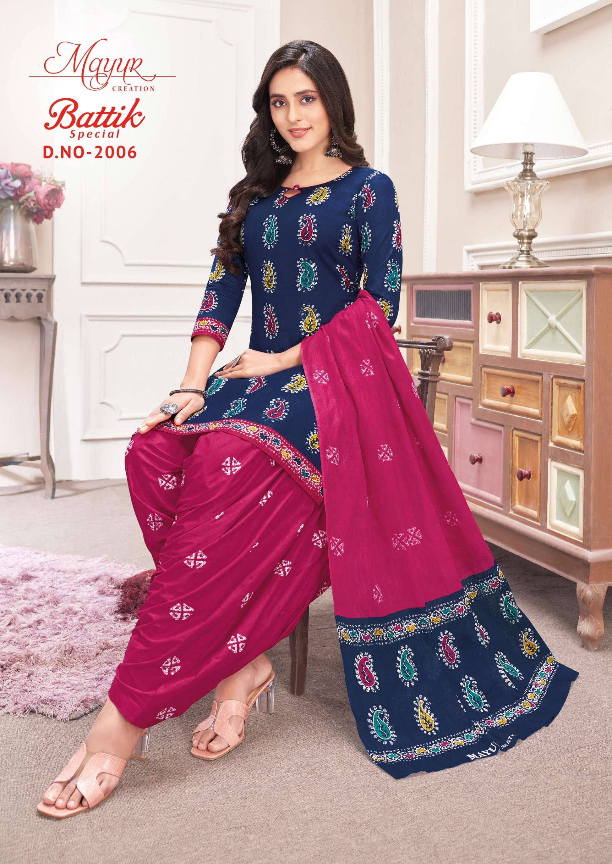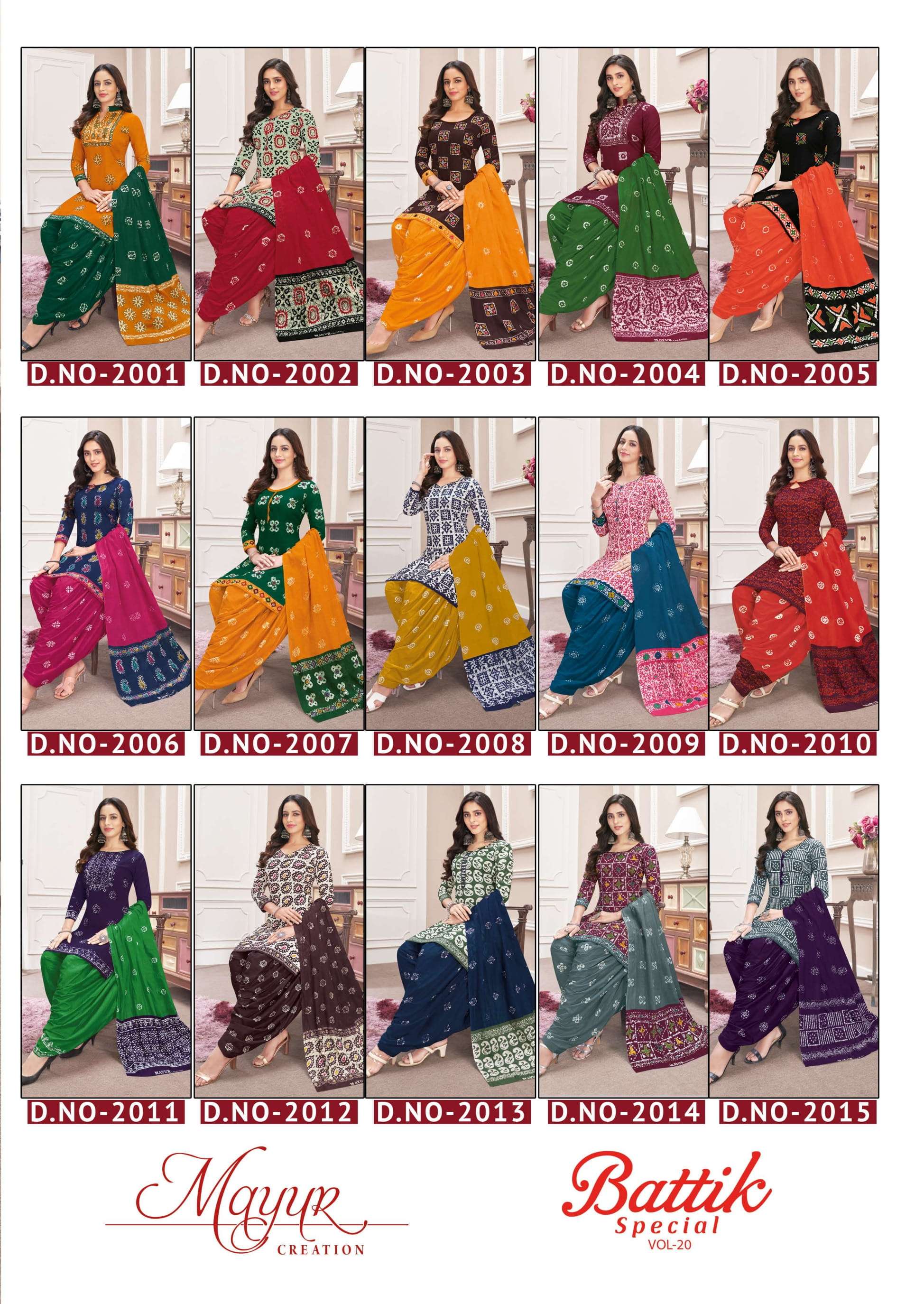 MAYUR CREATION New launch BATIK SPECIAL VOL-20 15 pcs Catalog RATE ~ 395/- Batik Printed Ladies Chudidar Materials Wholesaler in Surat Market |