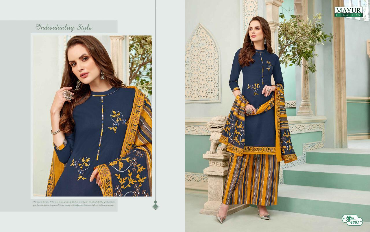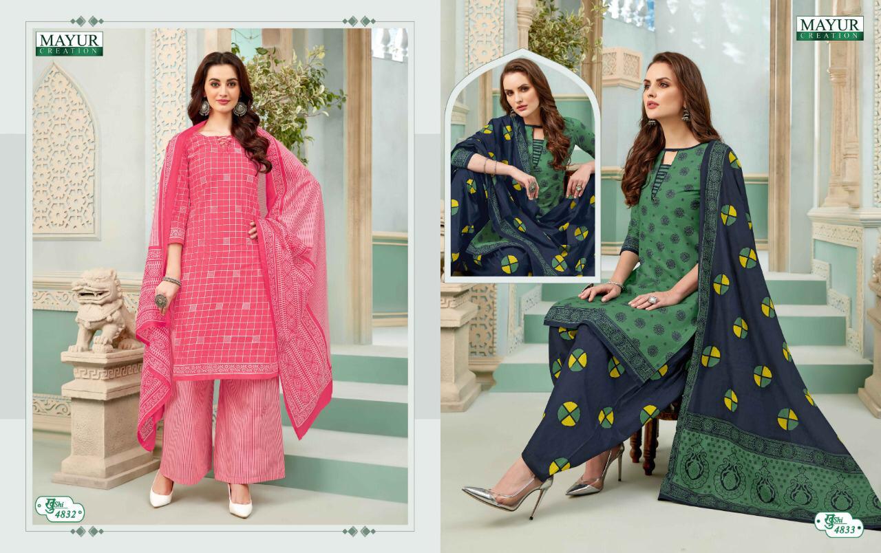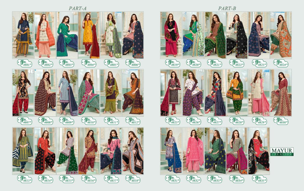 New catlouge Mayur khusi Vol 48 Design - 35 All heavy cotton Top+bottom + dupatta Rate - 320 + GST |