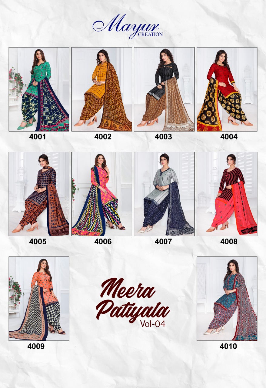 Mayur Creation Meera Patiyala Vol 4 Regular Wear Cotton Dress Materials At Lowest Rate