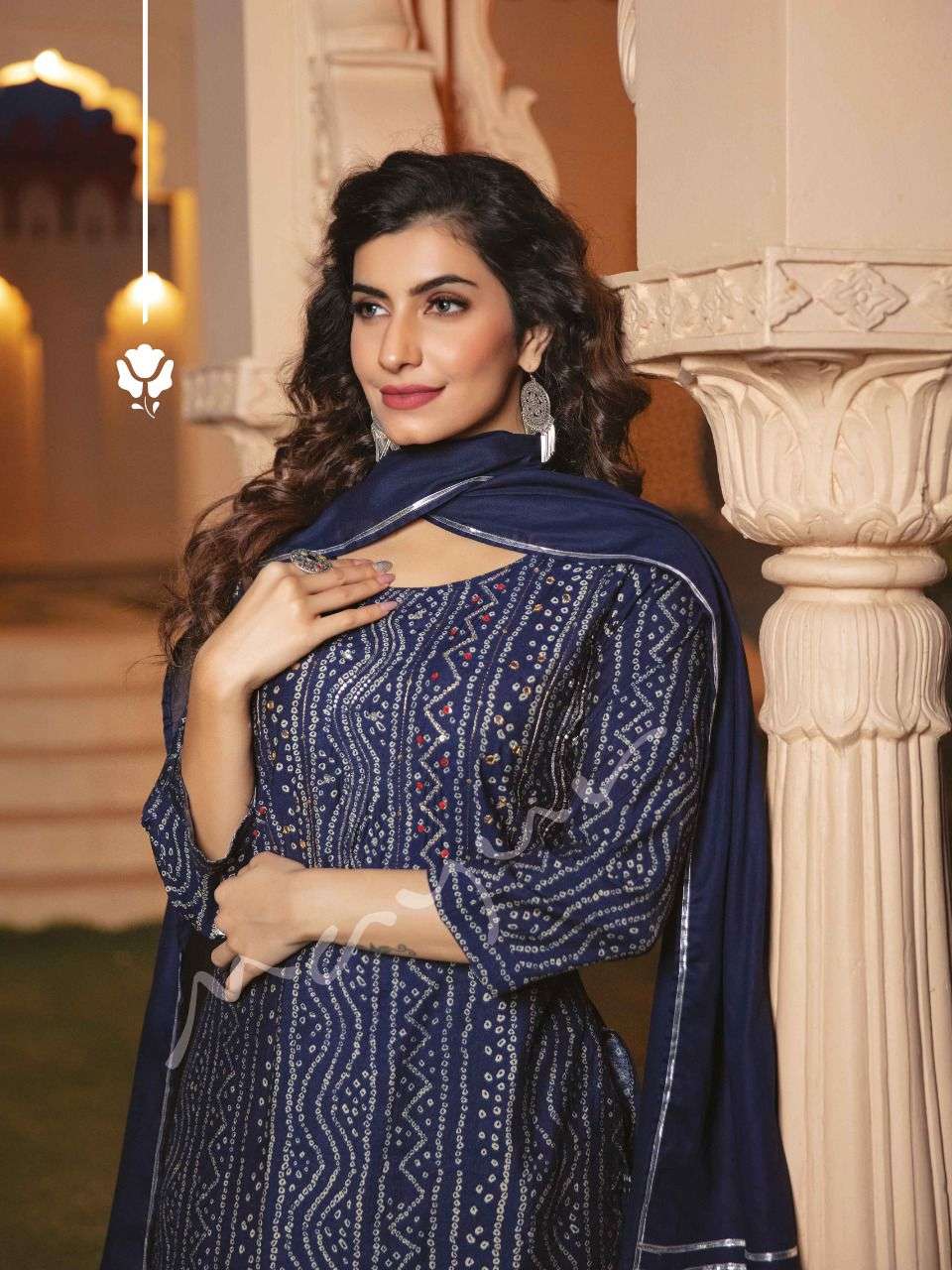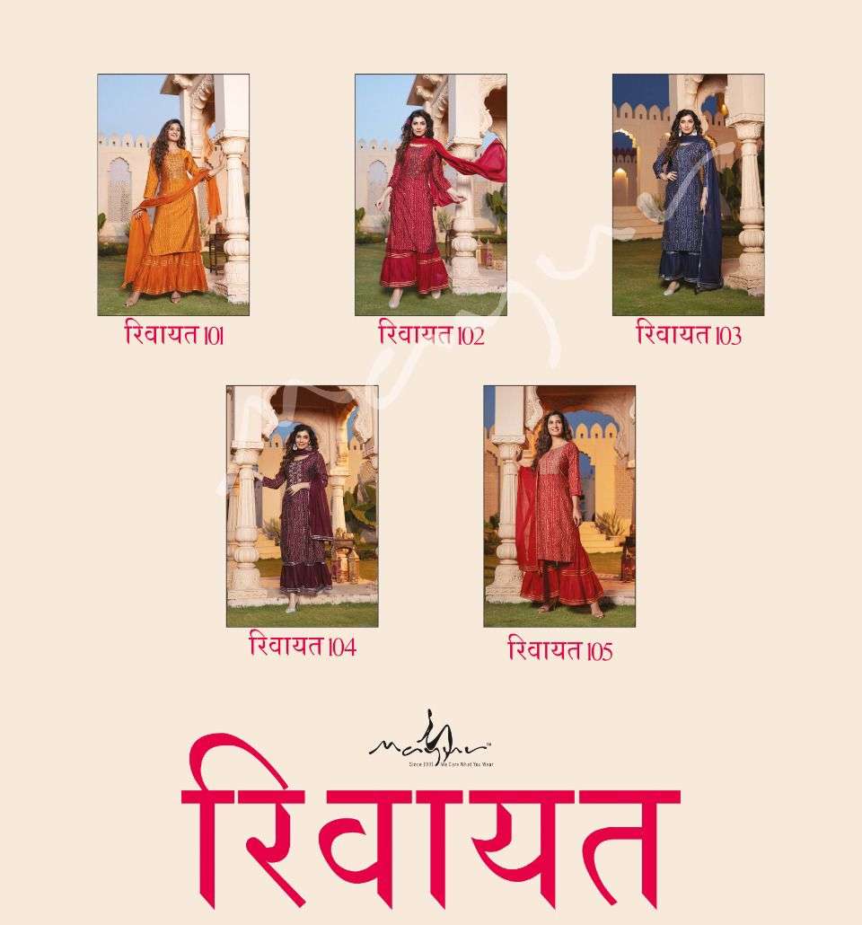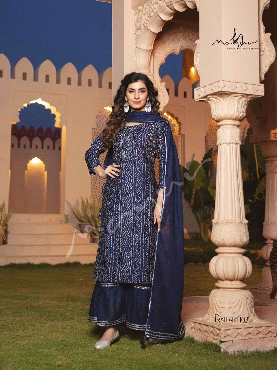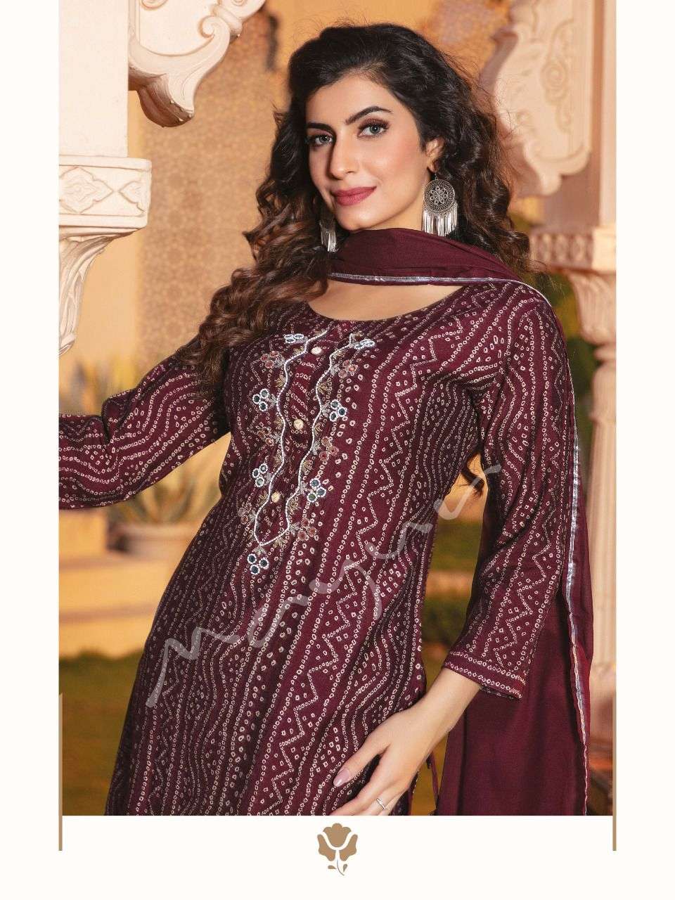 mayur present riwayat fancy bandhej kurta sharara dupatta readymade collection