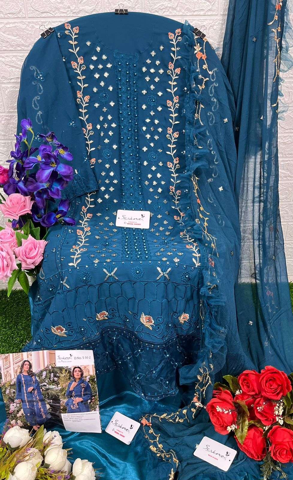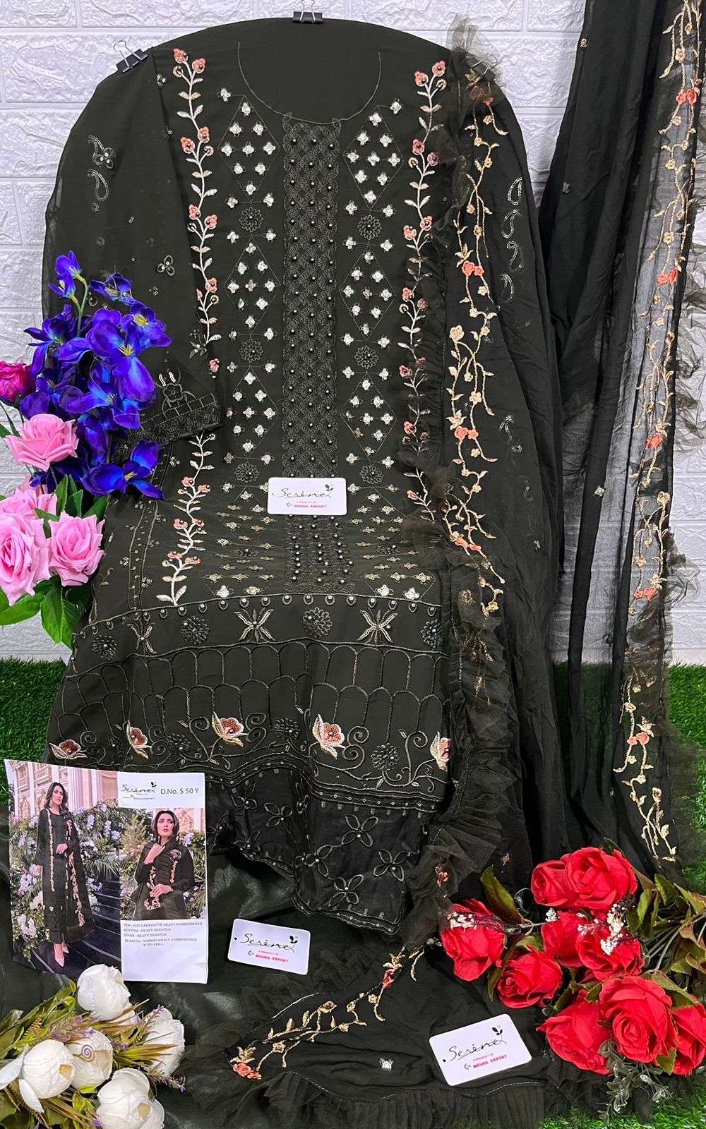 —SERINE PRESENTING NEW DESIGN—😍😍 S-50 W to Z TOP - FOX GEORGETTE HEAVY EMBROIDERED WITH PEARLS INNER BOTTOM - SANTOON DUPATTA - NAZNEEN EMBROIDERED WITH FRILL LACE 4 PCS IN SET PRICE - 950₹ |
