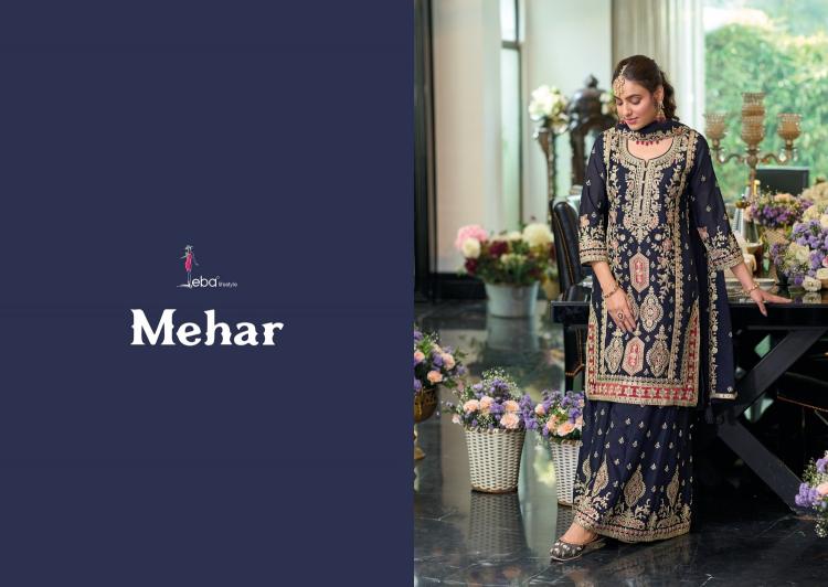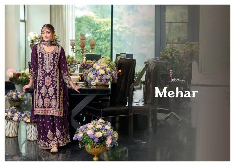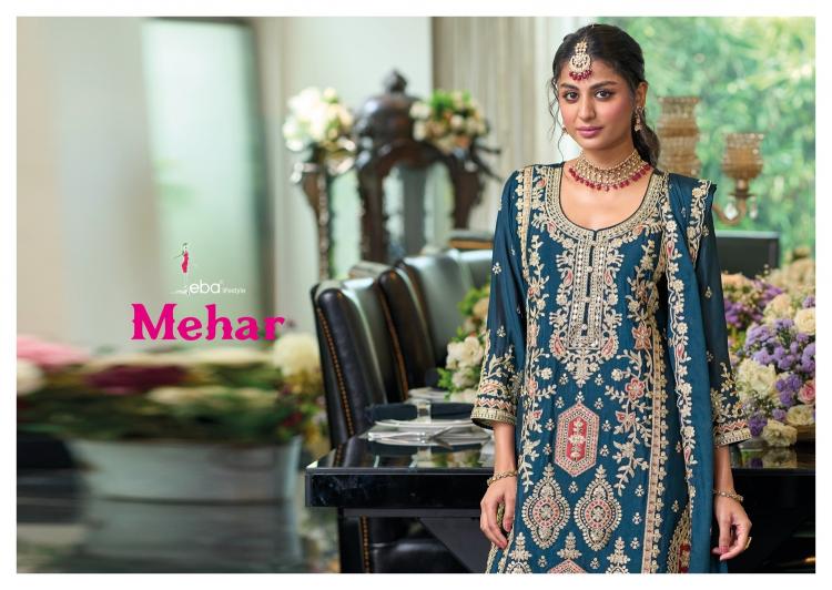 mehar by eba lifestyle heavy chinon pakistani readymade suits with plazzo