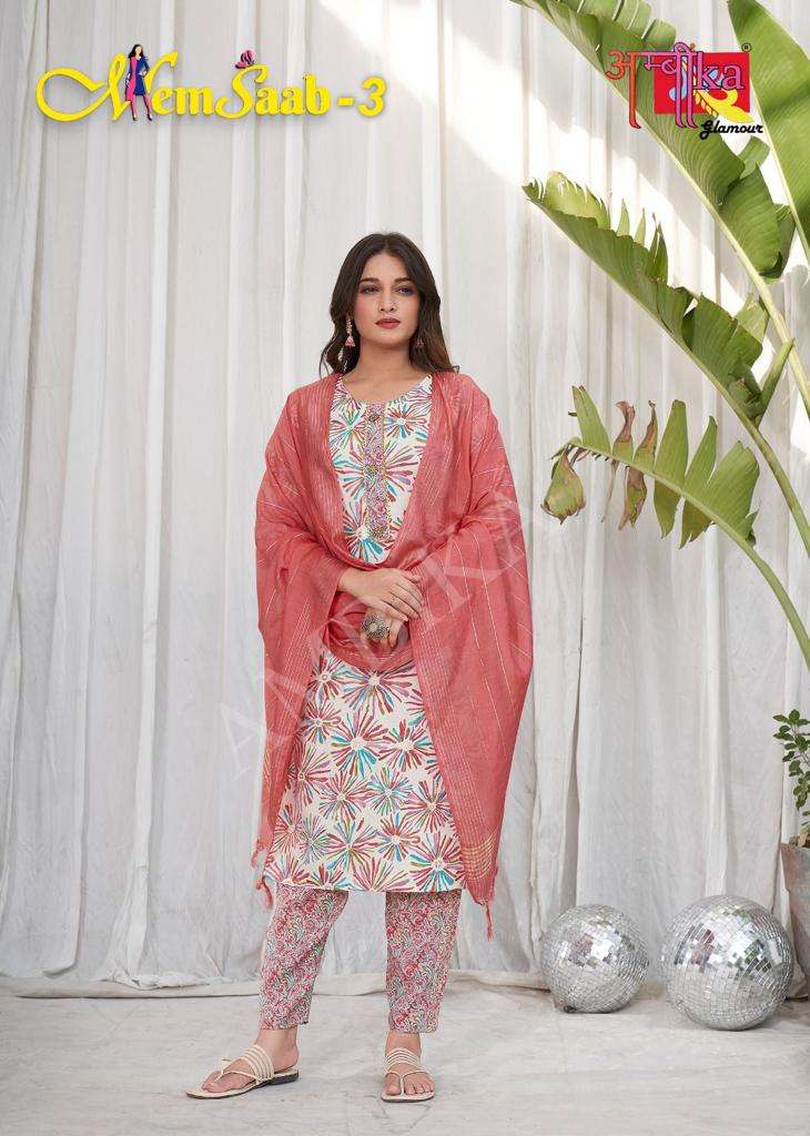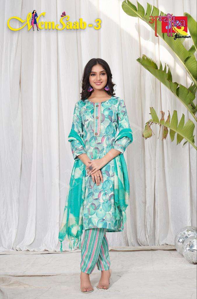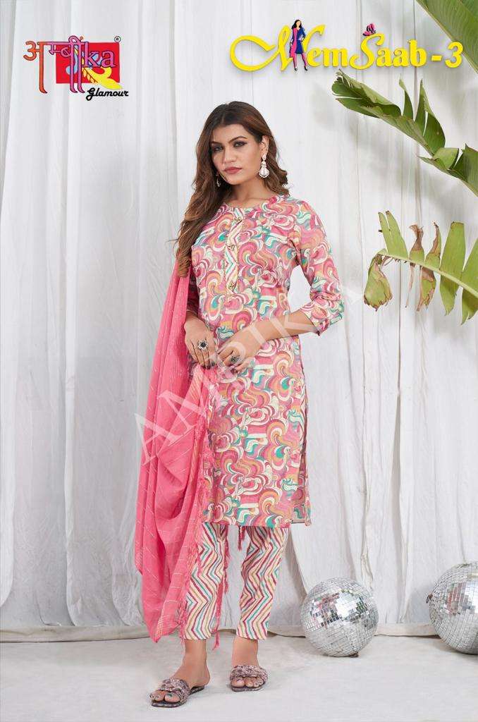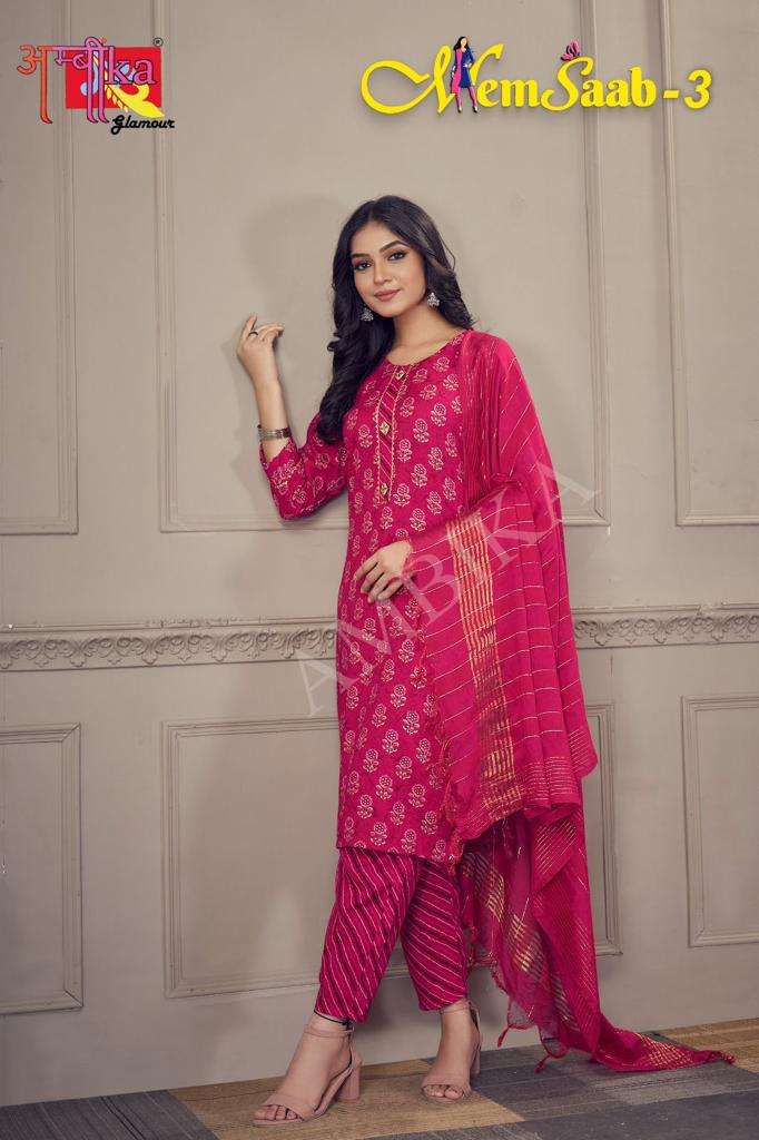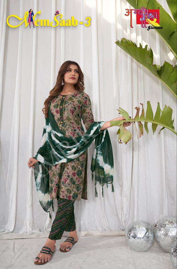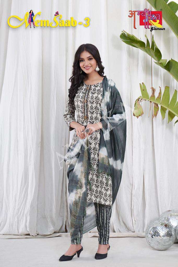 memsaab vol 3 by ambika kurtis designer readymade amazing salwar kameez combo set