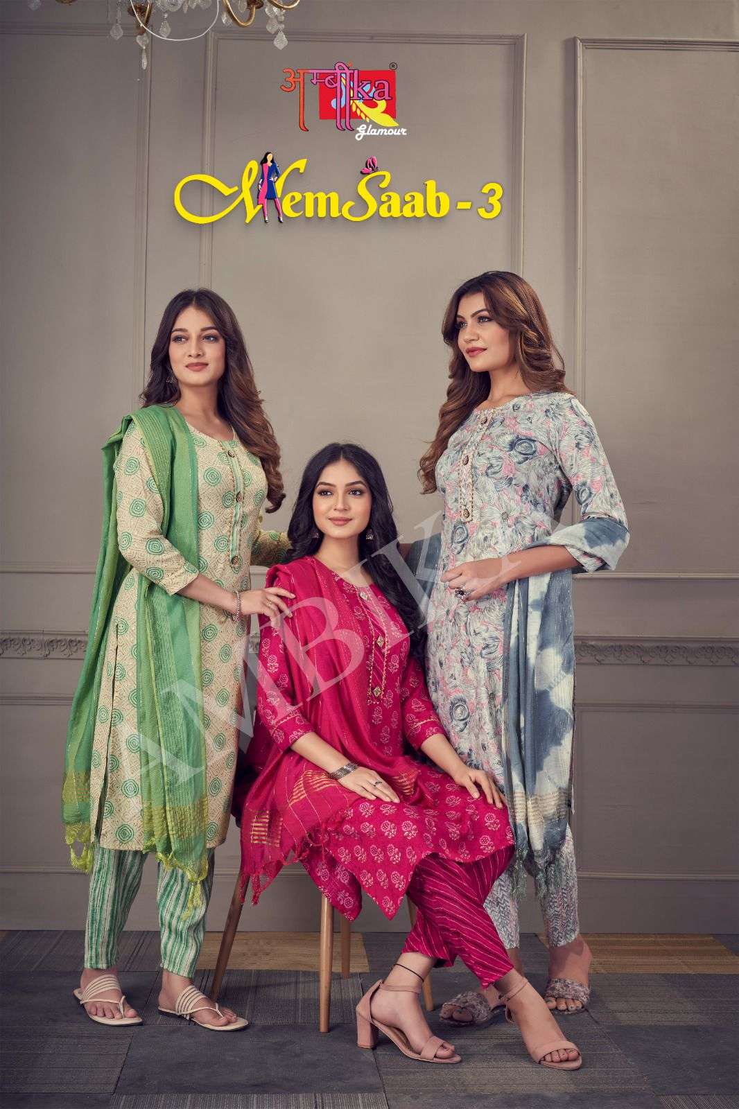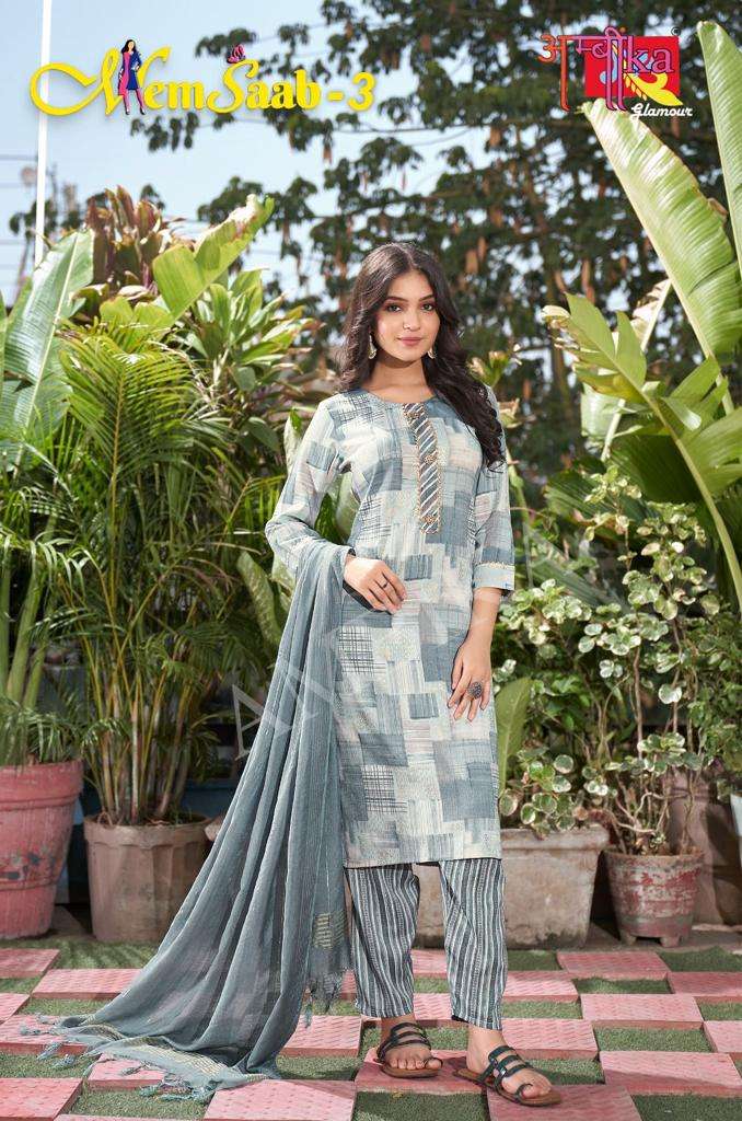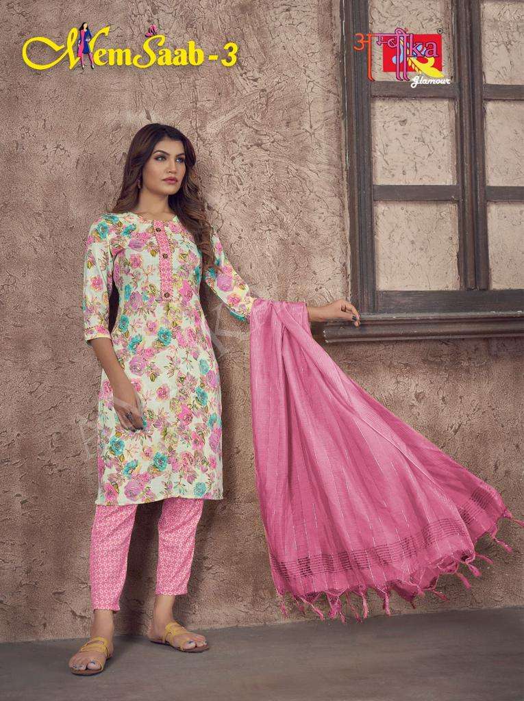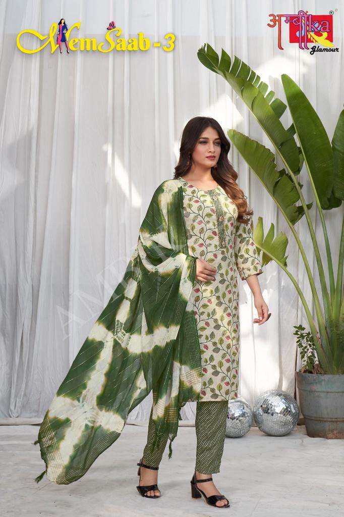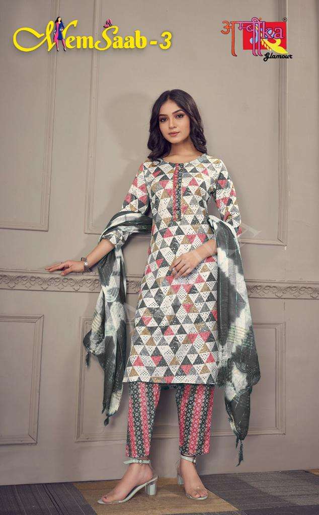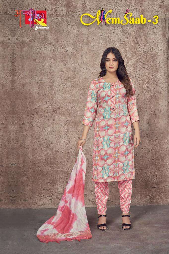 memsaab vol 3 by ambika kurtis designer readymade amazing salwar kameez combo set