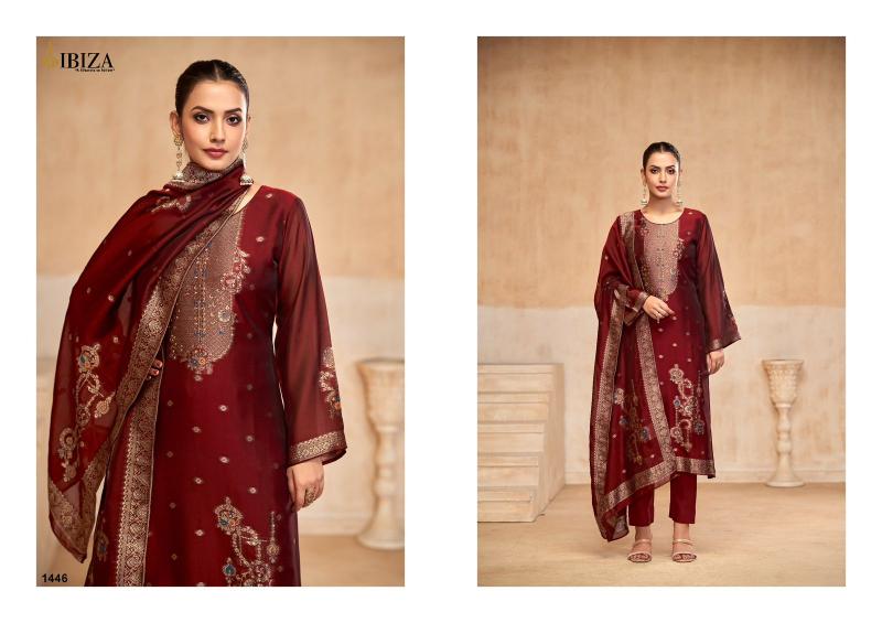 🙏🙏🙏IBIZA🙏🙏🙏 NEW SERIES ✌🏻MIAN✌🏻 👊Fabric Details👊 👗Top:-PURE BANGLORY SILK JACQUARD WITH HANDWORK 👖Bottom:-PURE SANTOON 🔻Designs:-4 PCS Rate:-1895/- per pcs GST EXTRA Set to set |