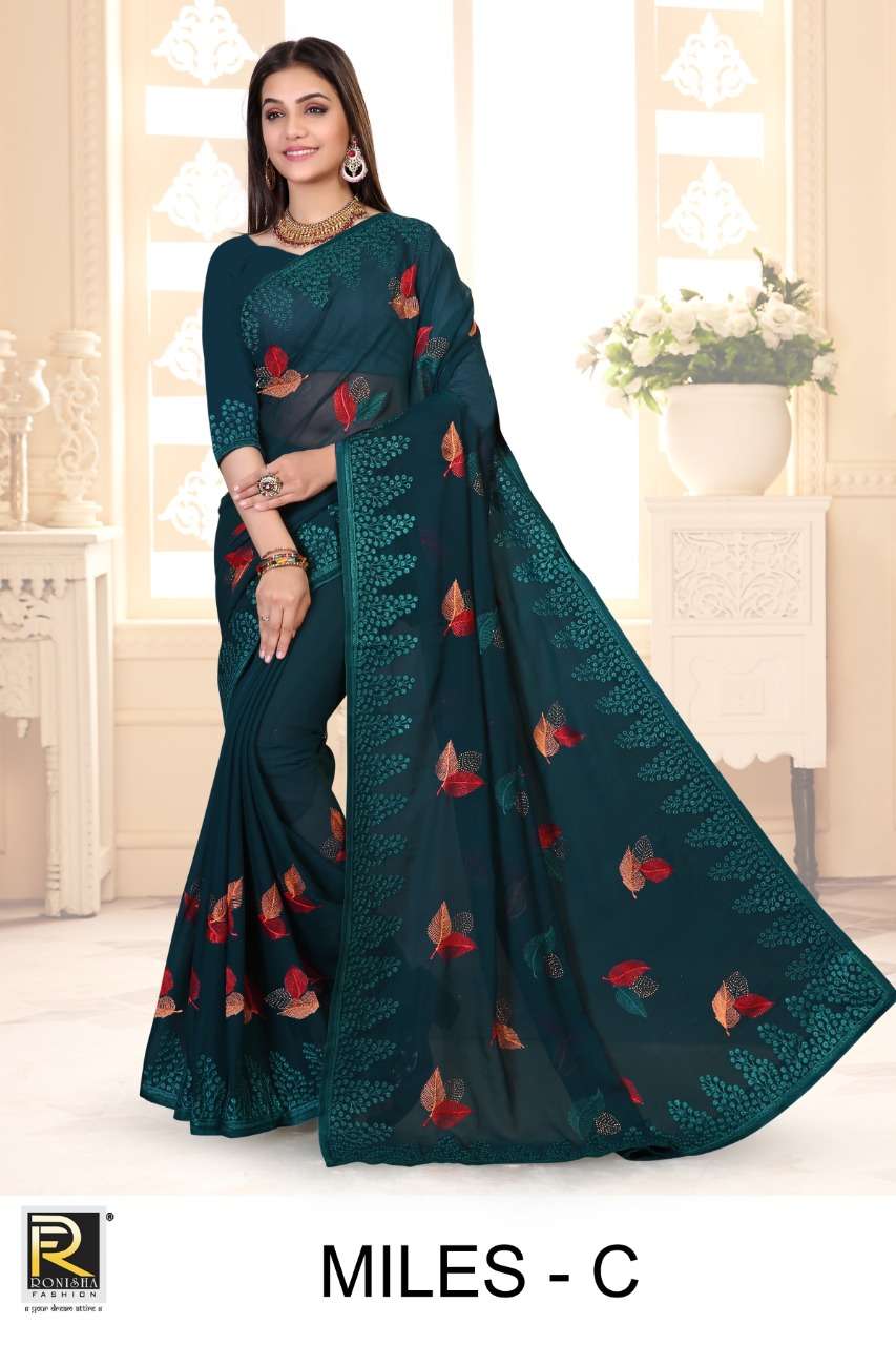Miles by Ranjna sarees fancy thread worked siroski diamond exclusive collection