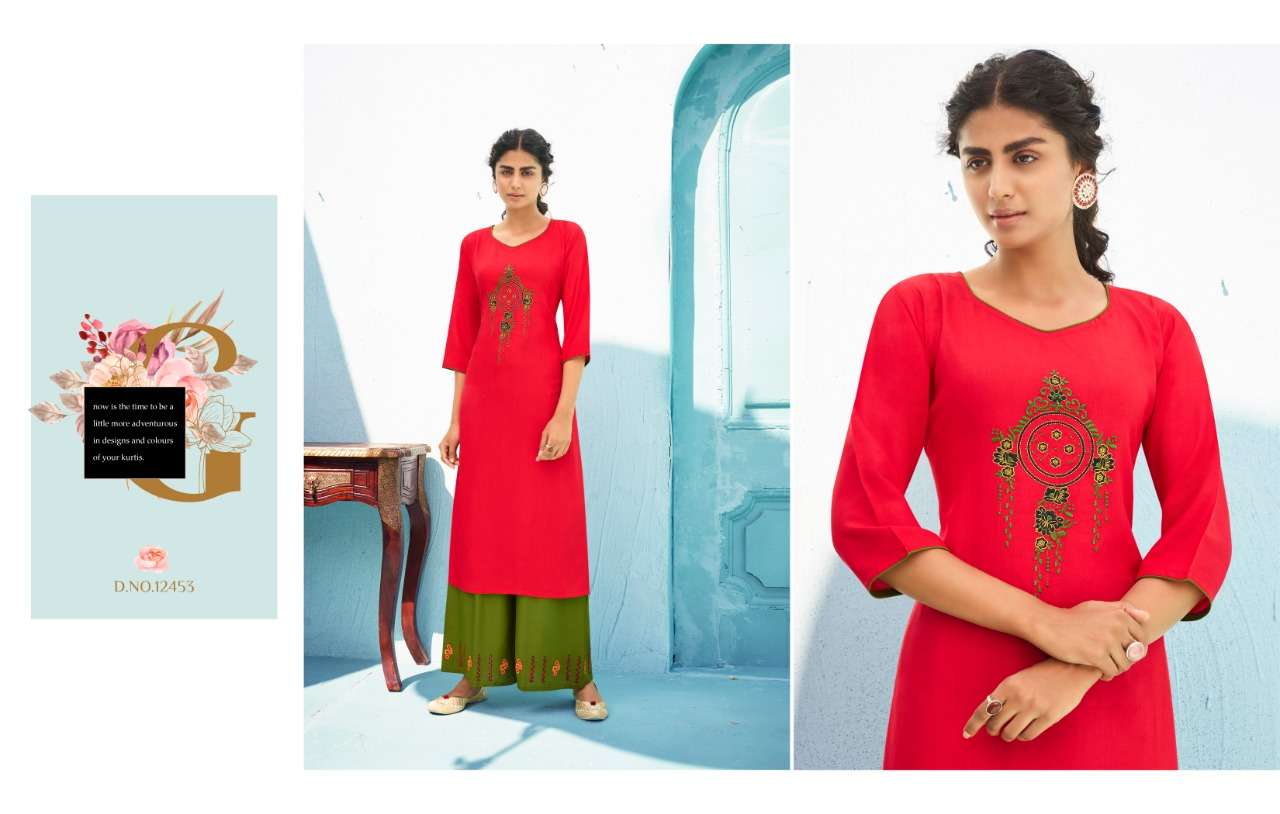 milka by kalaroop rayon embroidery long top with plazzo cheap rate collection