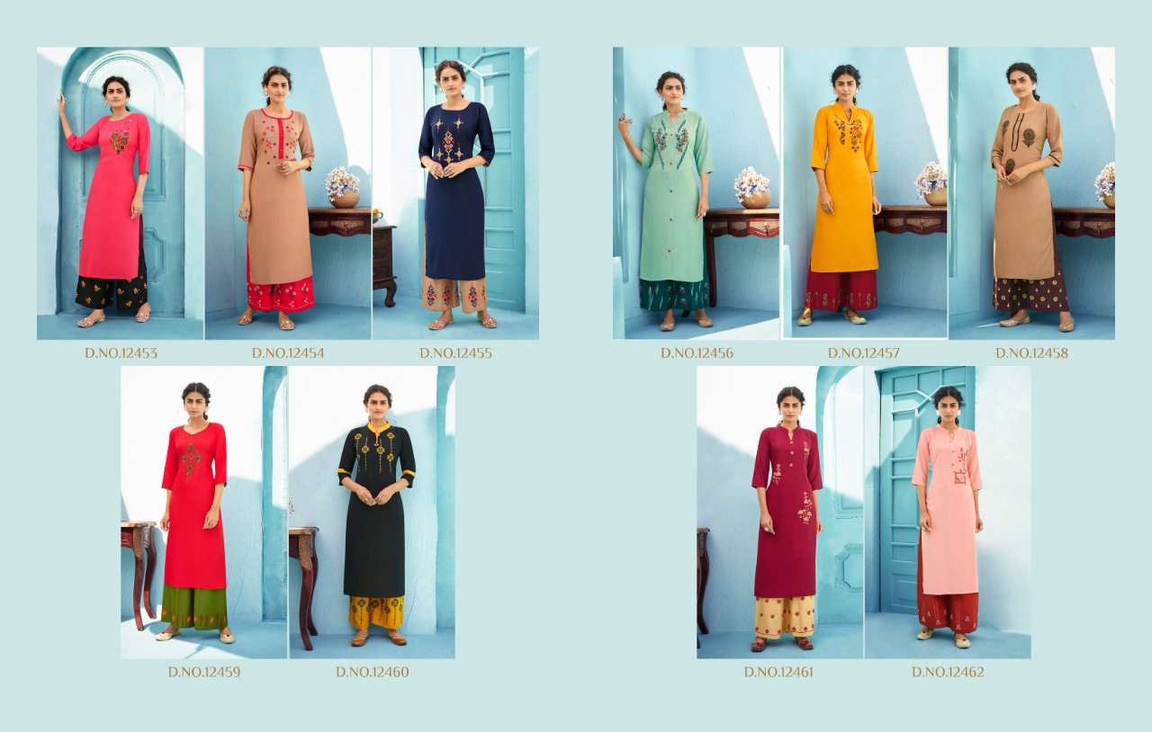 📌 KALAROOP by Kajree has launched Catalog Name : MILKA 🔸 Fabric Details 🔸 ▪Top:- Heavy Reyon With Fancy Embroidery Work ▪Plazzo:- (14Kg) Pure Reyon With Embroidery Work Plazzo ▪Total Design:- 10 ▪Size:- M-38, L-40, XL-42, XXL-44,