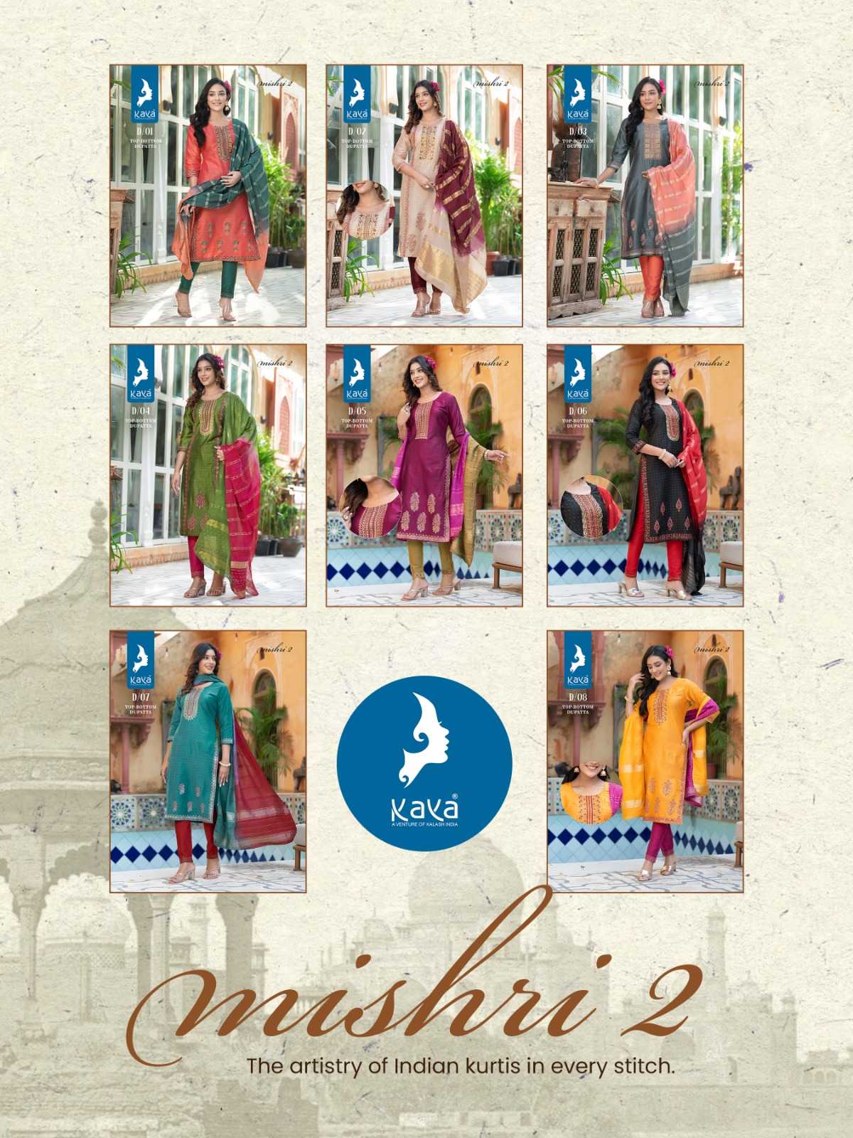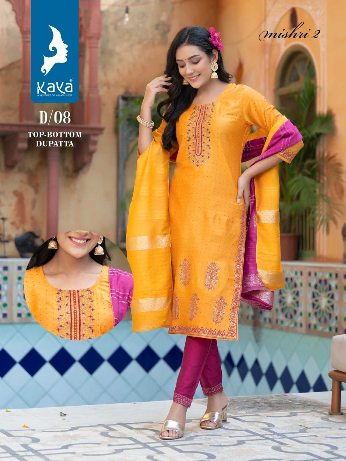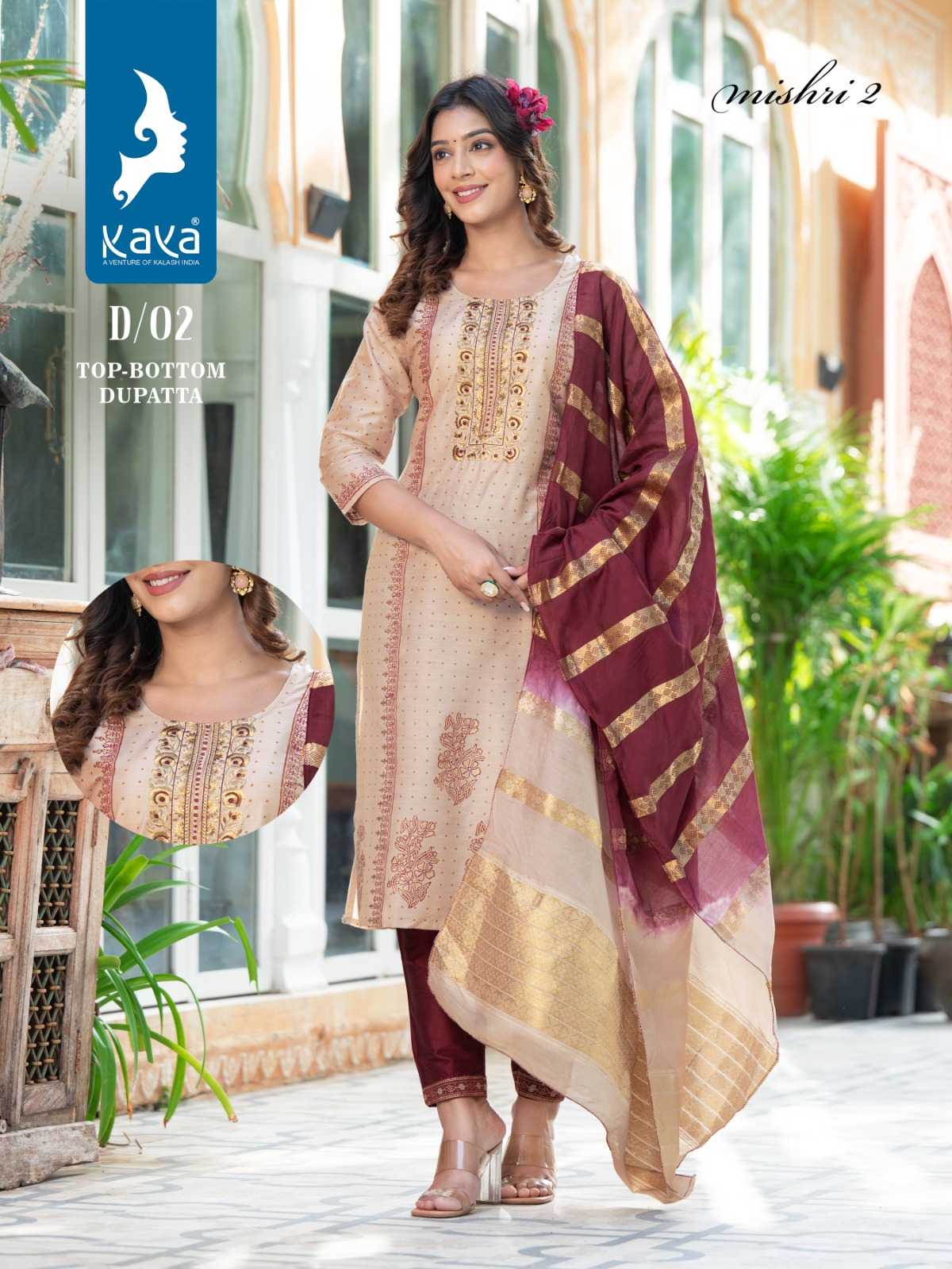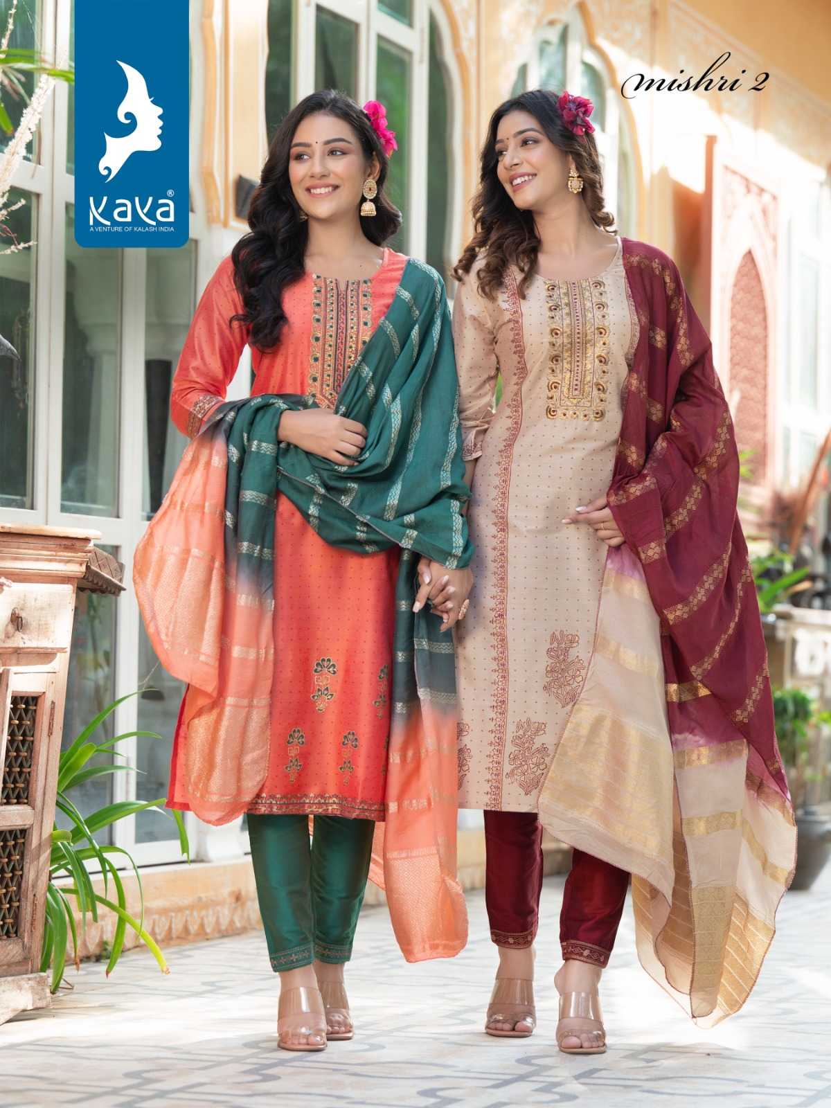 mishri vol 2 by kaya fancy straight kurti with pant and chanderi jacquard dupatta catalog